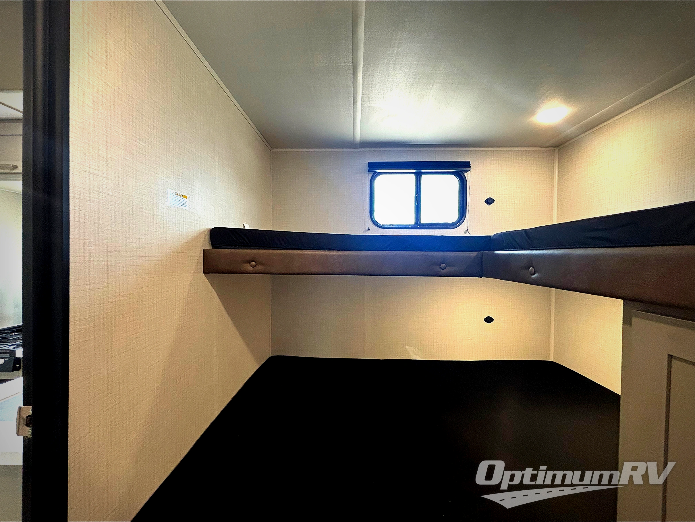 If you enjoy camping with extra friends and family, this travel trailer will be perfect for you! There is a rear bunkhouse with triple bunks, a dresser, plus a closet, making this room perfect for guests. Up front you'll find the private bedroom with a queen bed, dual nightstands and dual closets for your things, and the full bath is close by for convenience. The chef of your group will have a cooktop to prepare meals, ample counter space, plus a pantry for dry goods and snacks. Your crew can play a game at the booth dinette or relax on the sofa while dinner is being made, or they can relax outdoors under the 16' power awning!