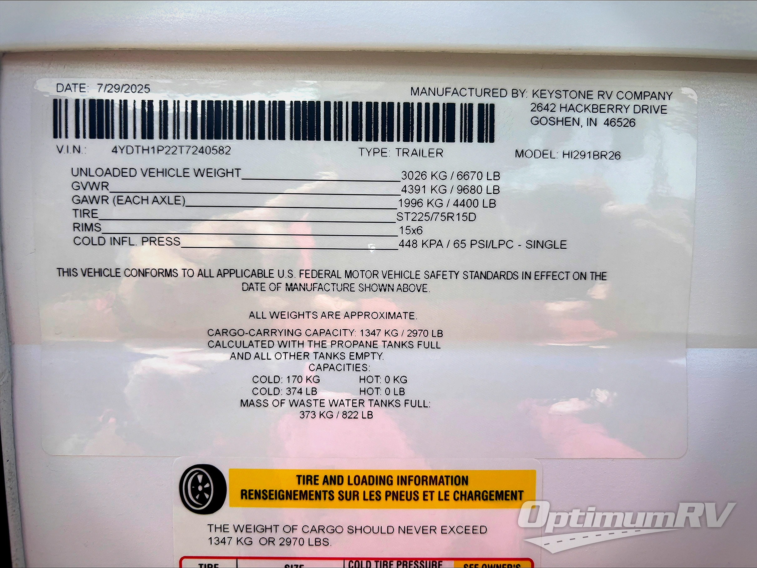 Keystone Hideout Sport travel trailer 291BR highlights: