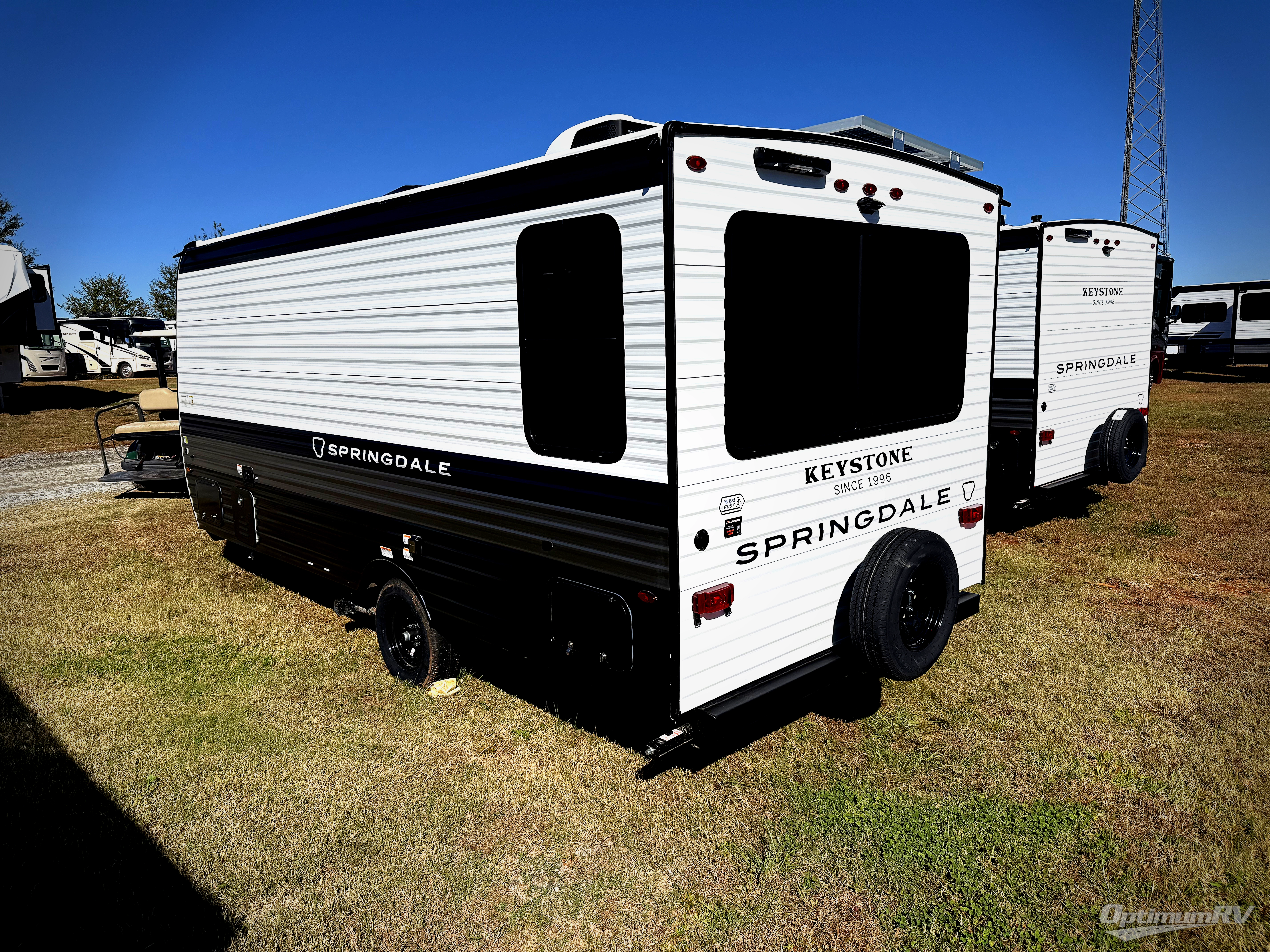 With any Springdale Mini travel trailer by Keystone, you will enjoy lightweight towing thanks to their single-axle! The AlphaPly TPO roof membrane is ultra durable, and the power awning will provide protection from the sun as you relax in your camp chairs outside. Each model includes blackout night shades, LED lighting, plus many more interior comforts. There is also a roof A/C and 20K BTU furnace to keep you comfortable, plus a tankless water heater for endless hot showers!