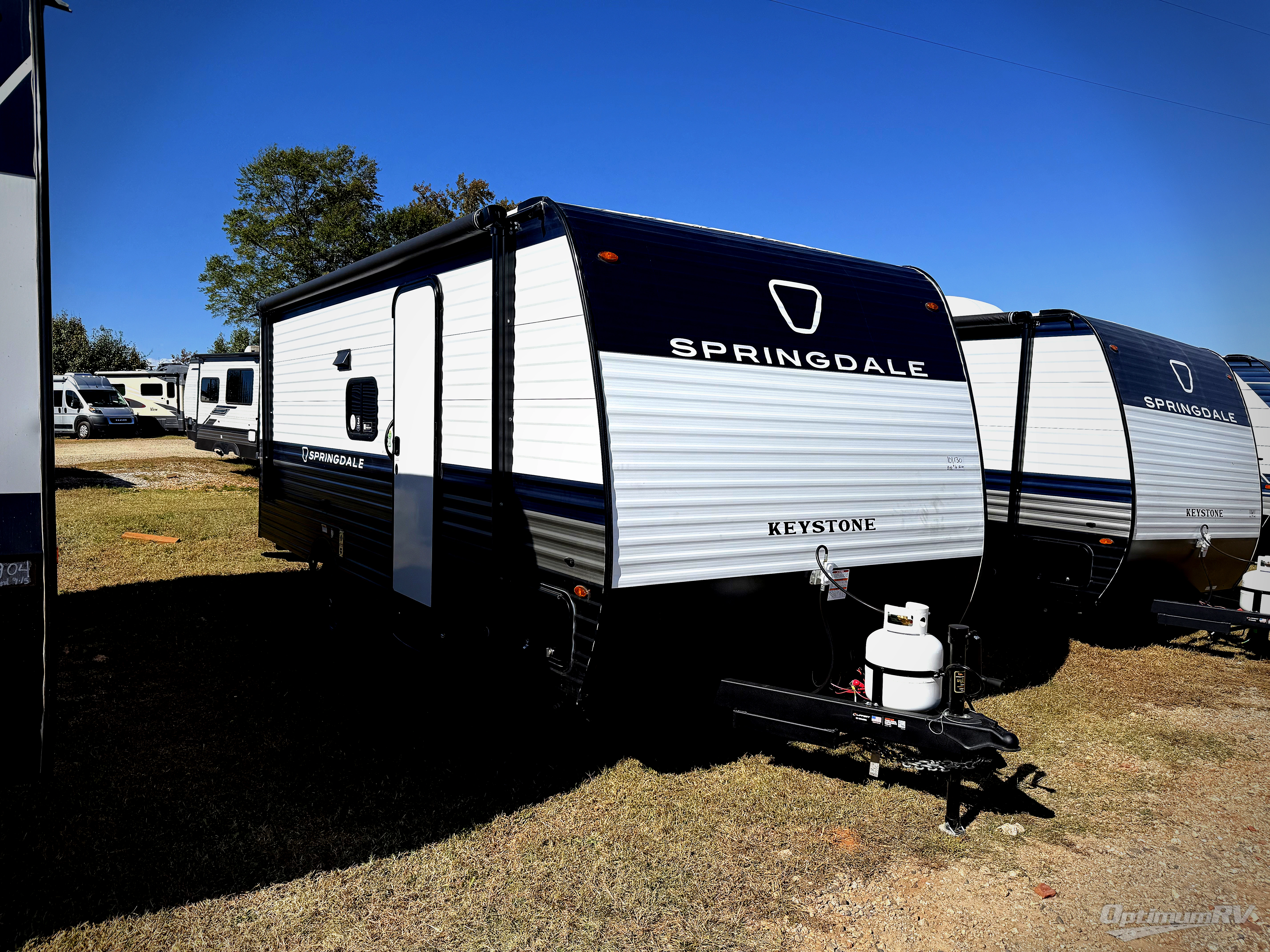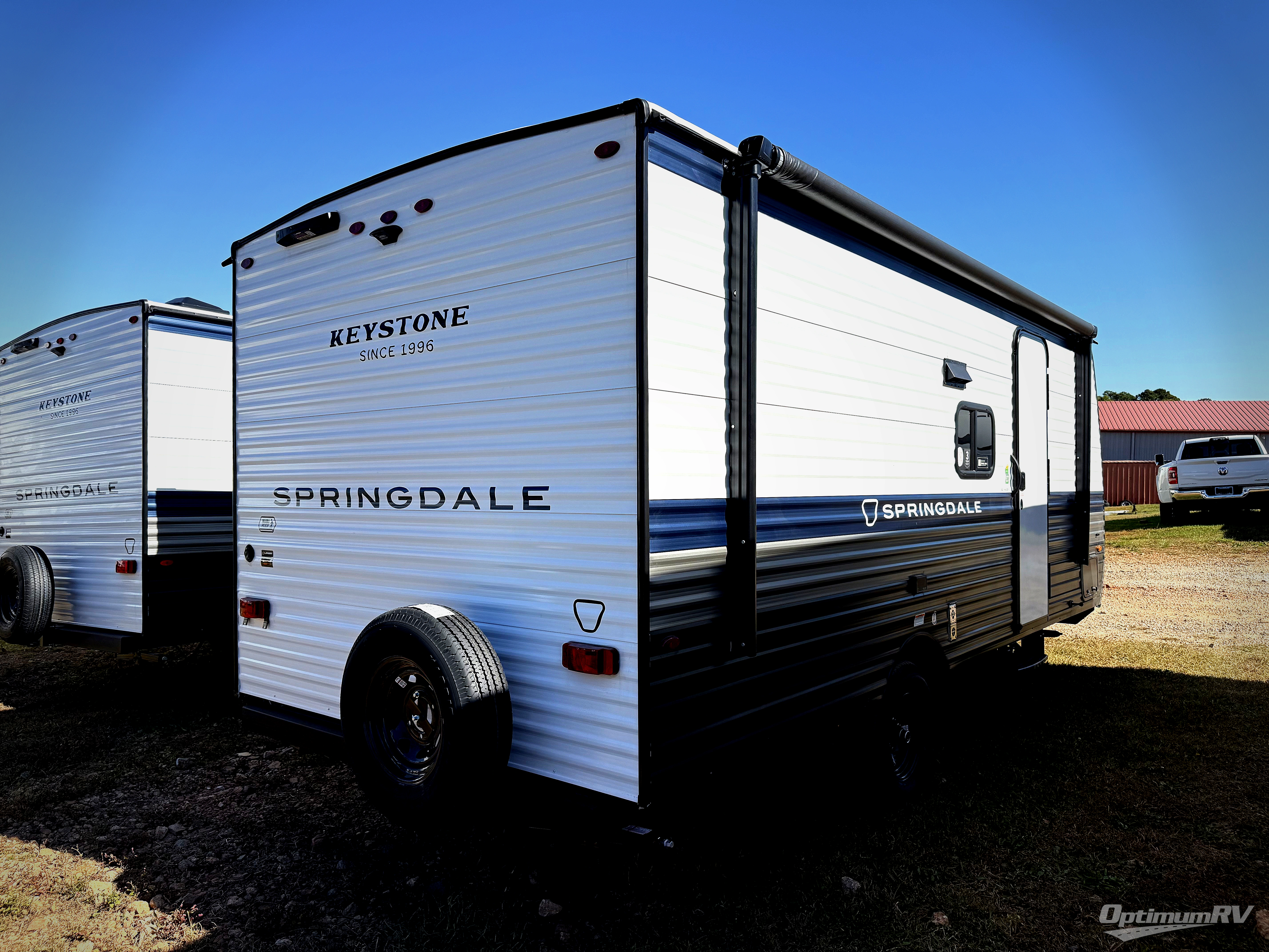With any Springdale Mini travel trailer by Keystone, you will enjoy lightweight towing thanks to their single-axle! The AlphaPly TPO roof membrane is ultra durable, and the power awning will provide protection from the sun as you relax in your camp chairs outside. Each model includes blackout night shades, LED lighting, plus many more interior comforts. There is also a roof A/C and 20K BTU furnace to keep you comfortable, plus a tankless water heater for endless hot showers!