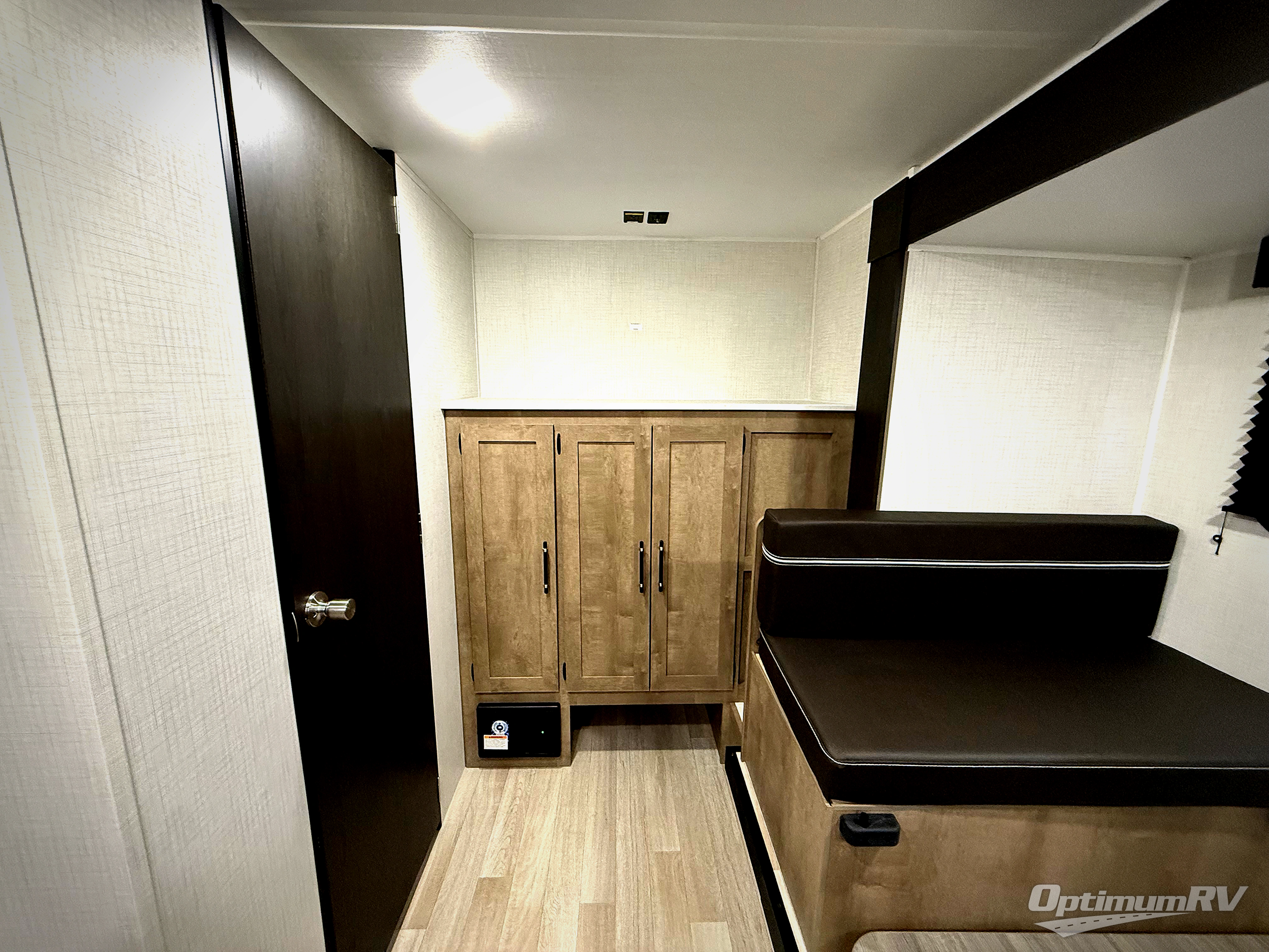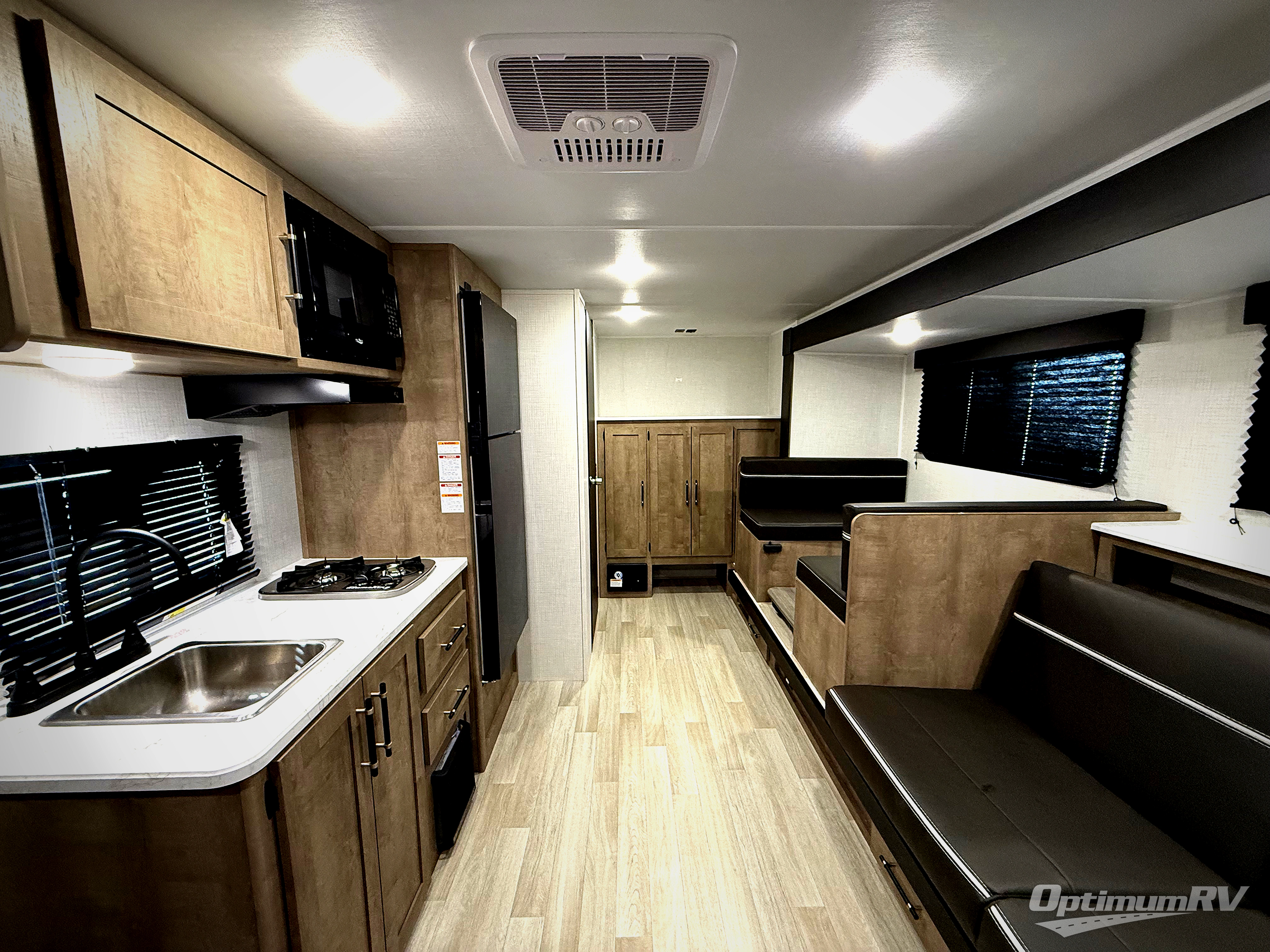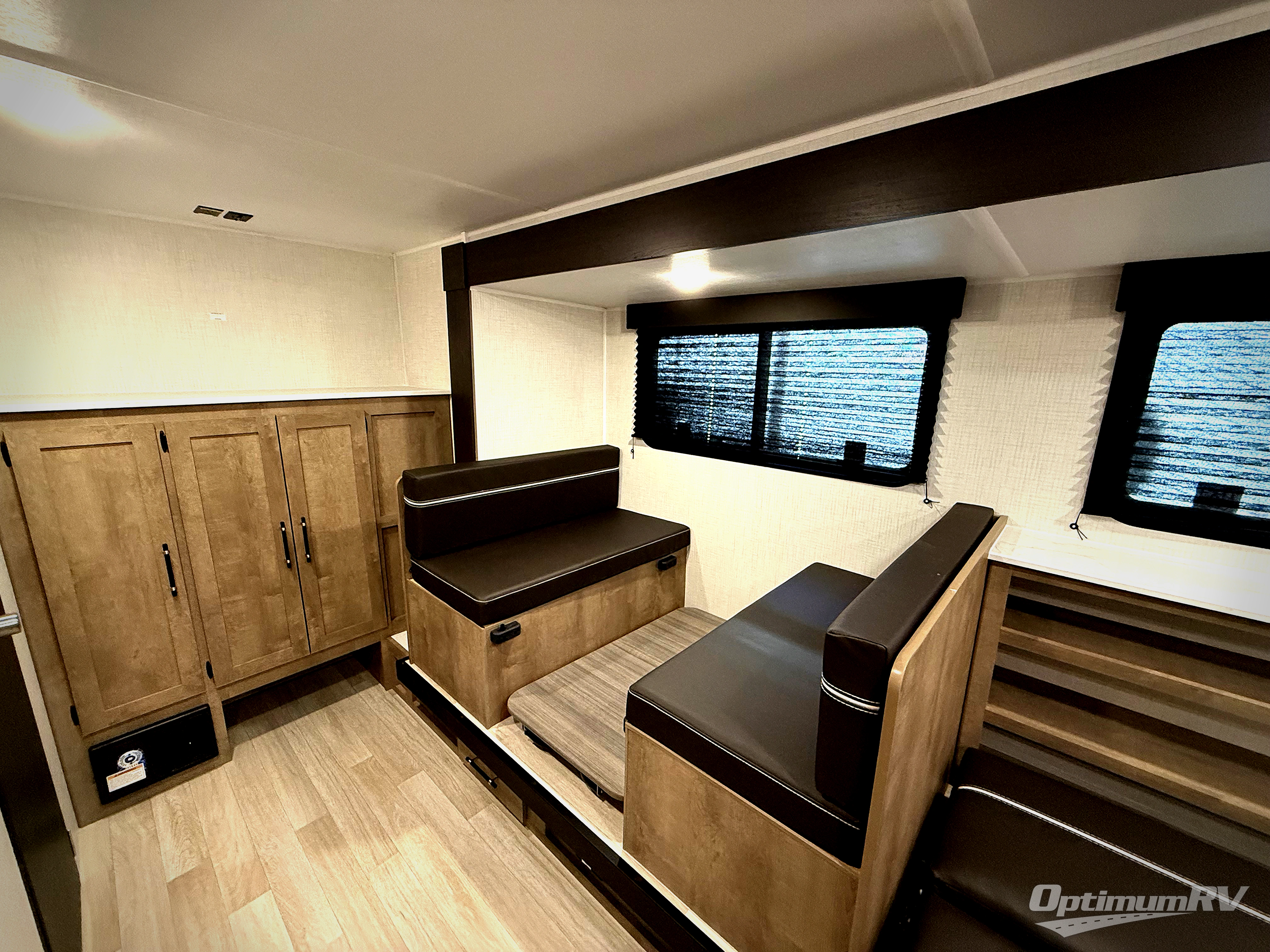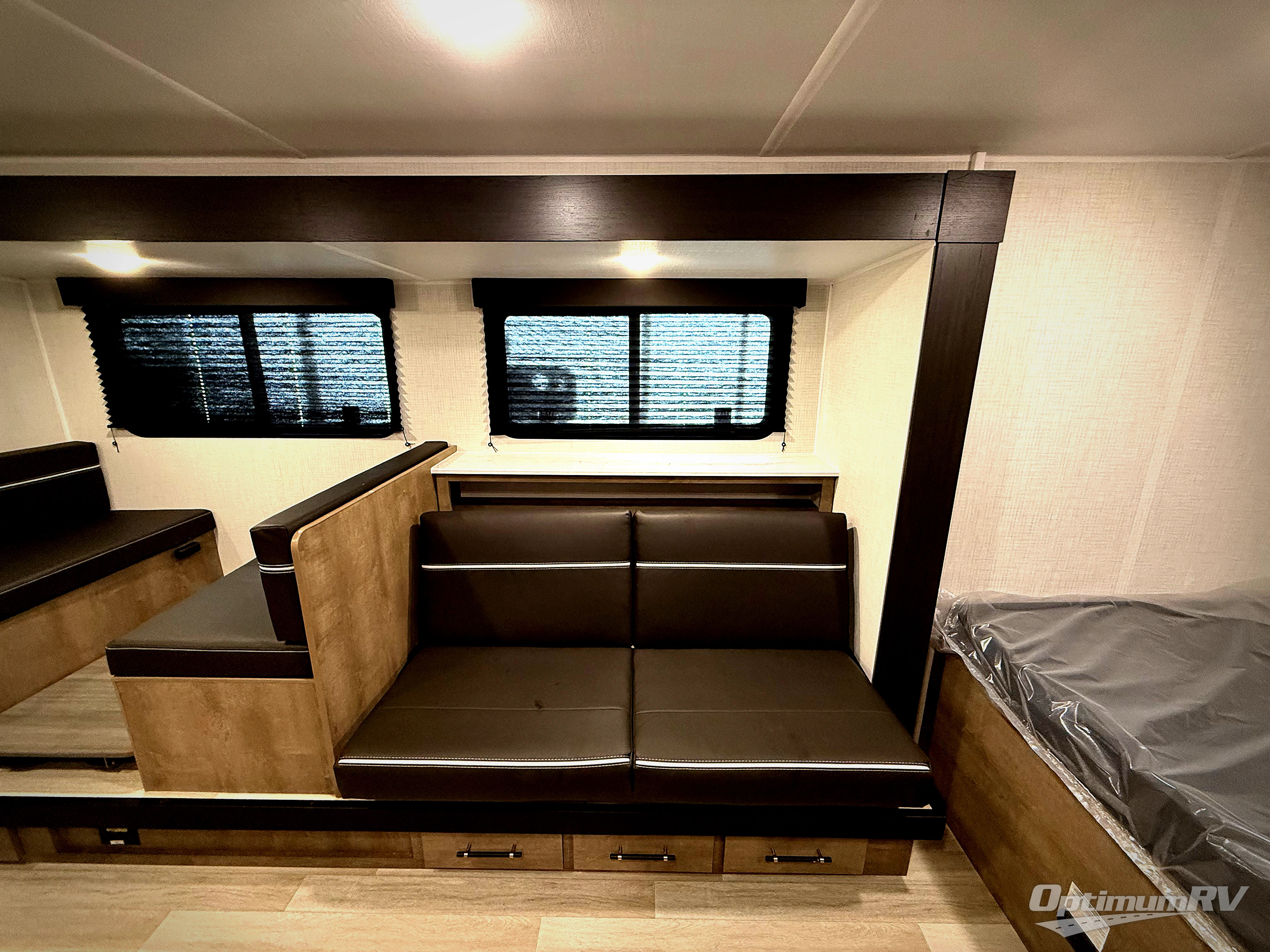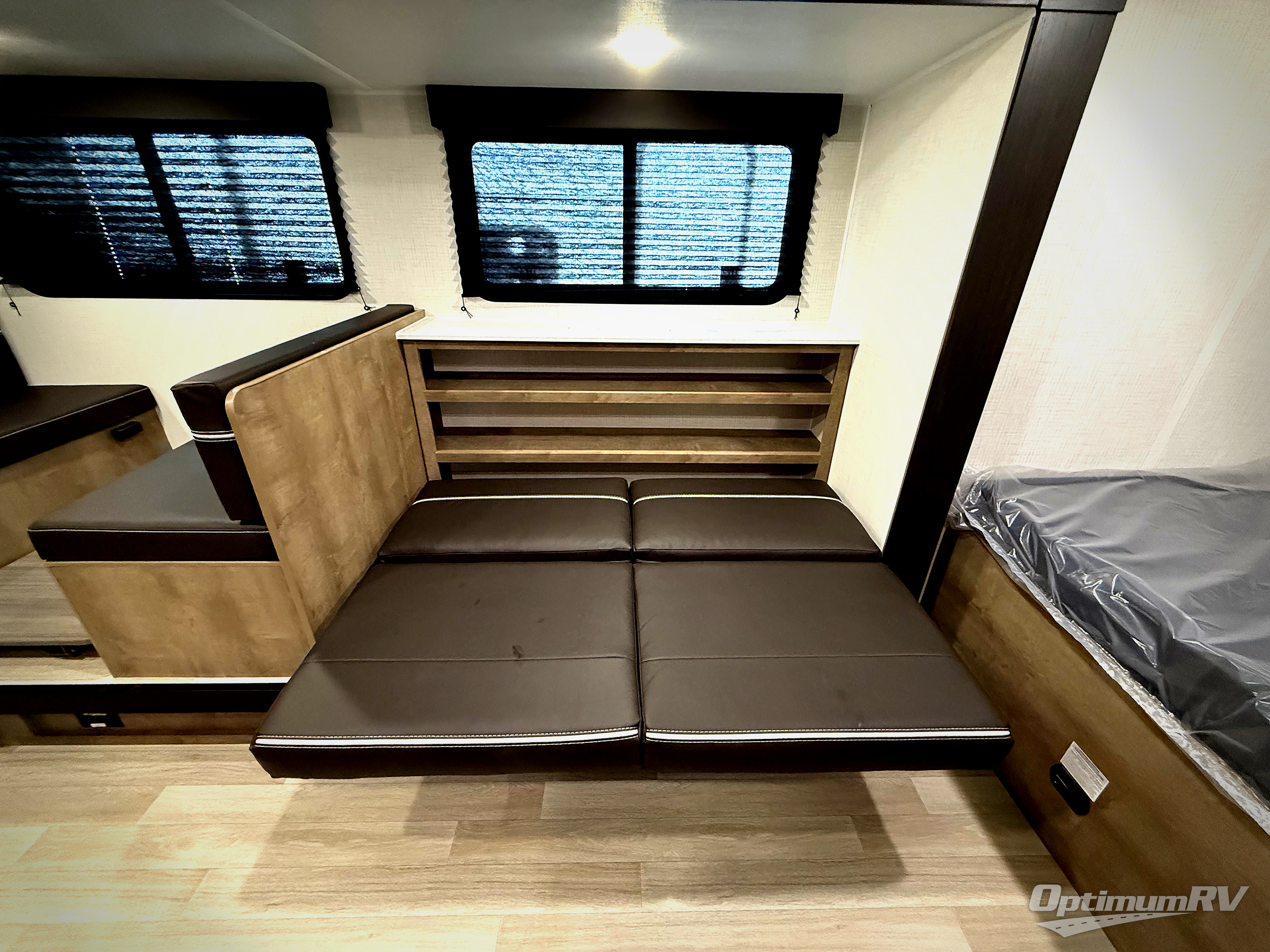 When you want to explore the outdoors and relax indoors, this trailer will provide the comforts, conveniences and many of the wants you will need to do both! The interior is spacious with the large slide out which includes a booth dinette and sofa, both with storage drawers. And the furniture doubles as sleeping space when you have overnight guests. There is a pantry and a closet next to the full bathroom which is handy, and the galley kitchen offers a 7.7 cu. ft. 12V refrigerator to store the cold items. You will also sleep soundly each night on the front queen bed. The exterior offers a 15' power awning plus a pass-thru compartment for your outdoor camping chairs, tables, charcoal and more.