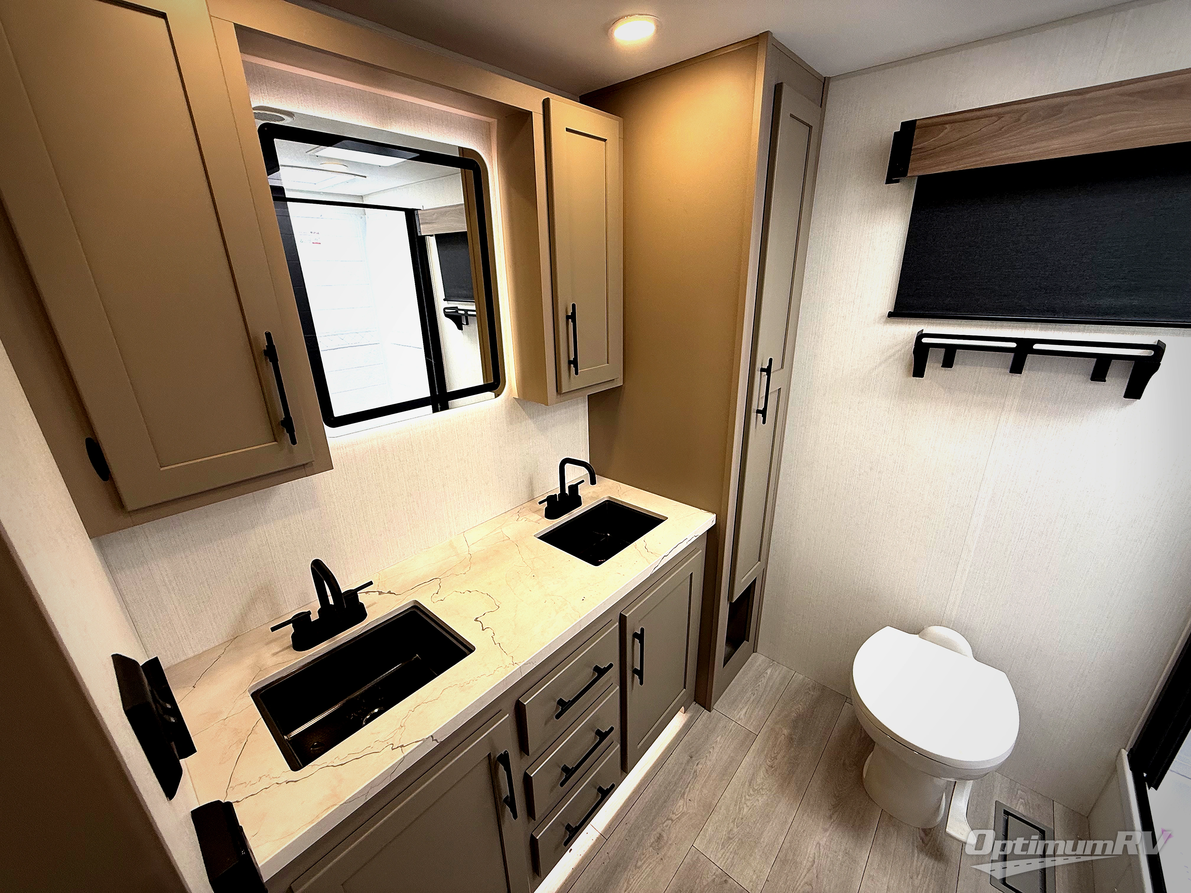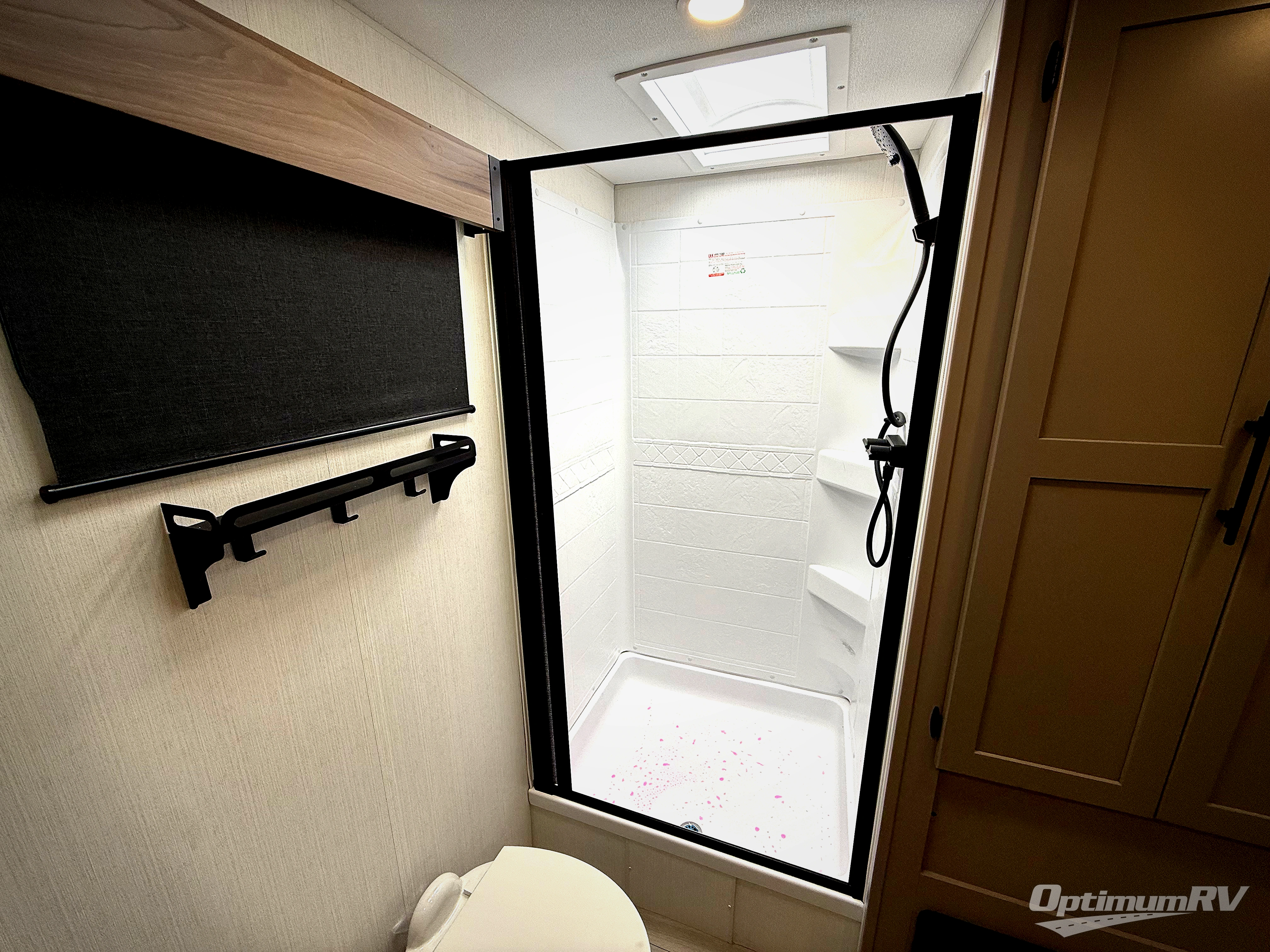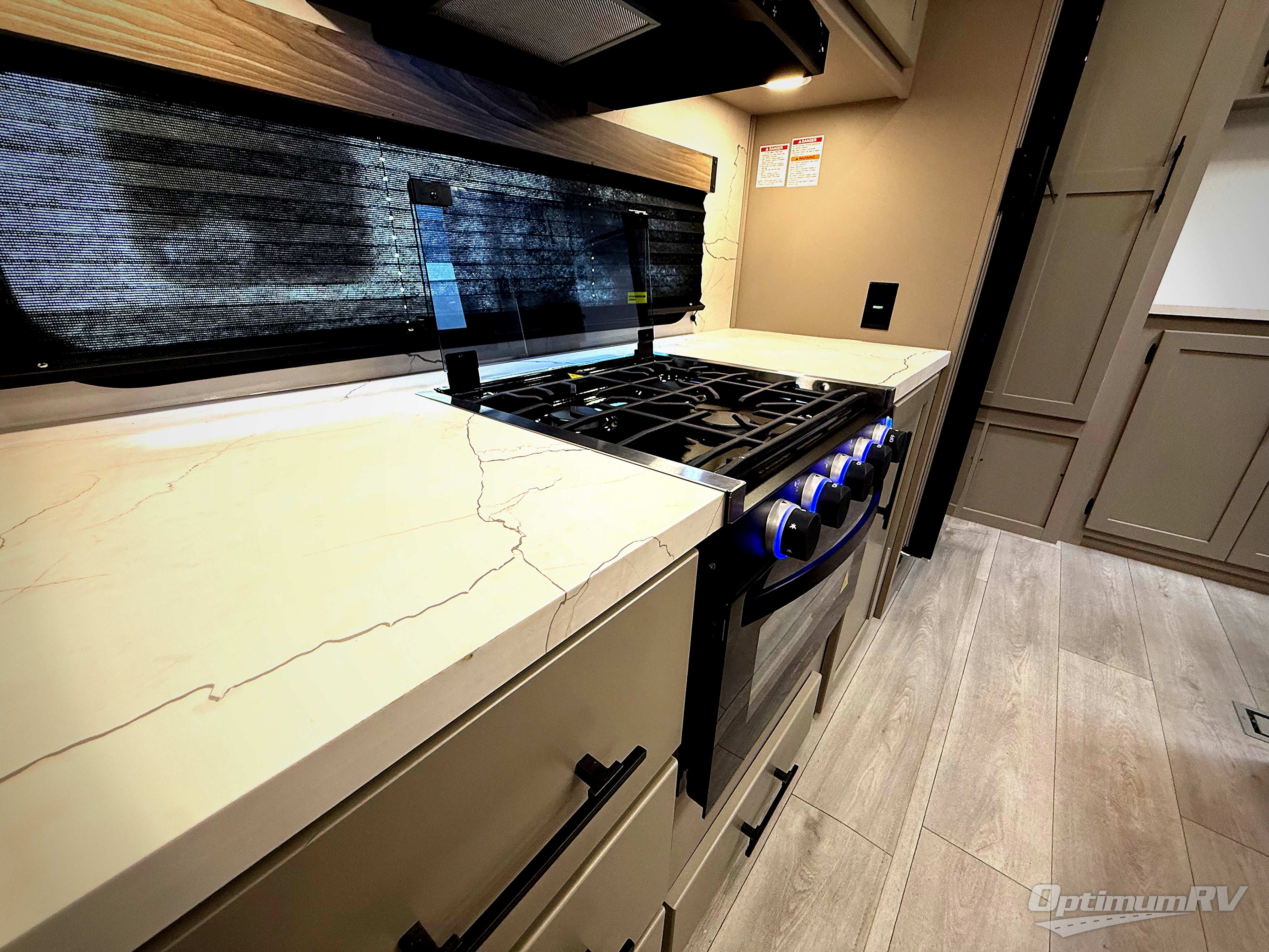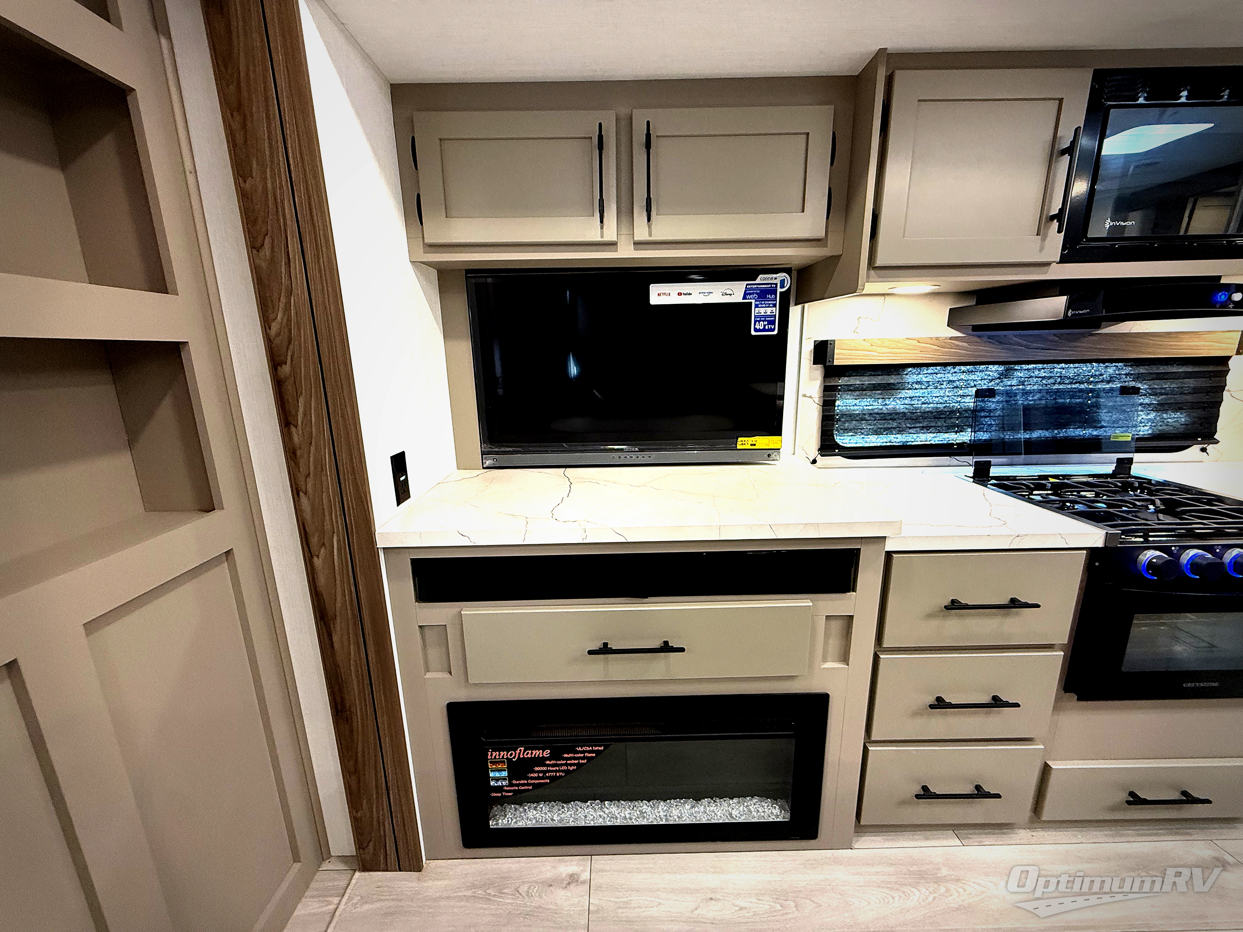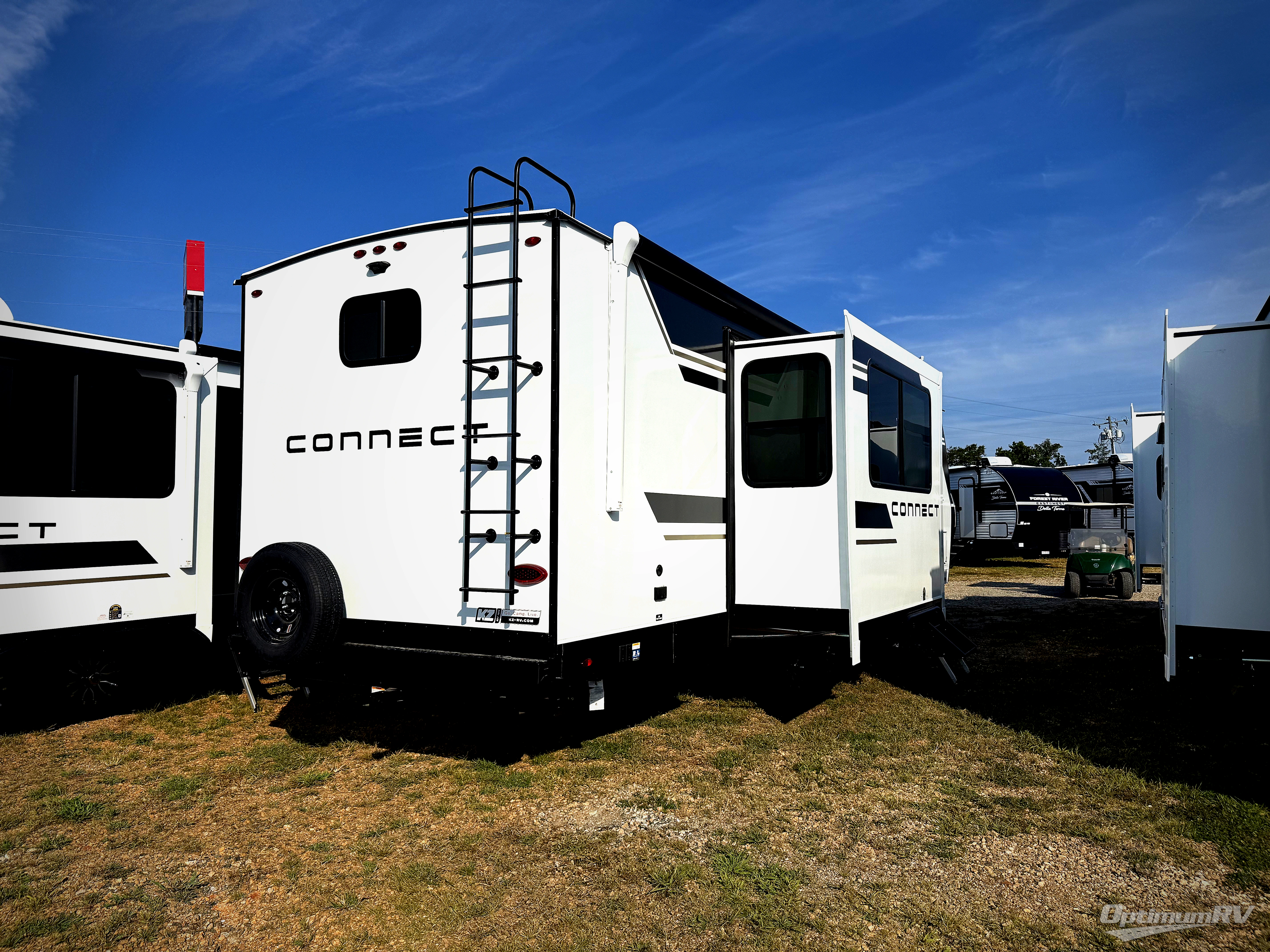 The perfect couple's trailer is found in this Connect! After you wake up each morning on the king bed slide, you can use the walk-in closet to get ready for the day. There is also a dresser here and a TV mount if you want the option to watch movies in bed. A three burner range and microwave oven in the full kitchen will let you make breakfast before heading out for the day, and the theater seating will provide a place to relax once you get back. The entertainment center with a fireplace will make this room feel more like home, and the kitchen island includes ample counter space with its flip-up top. The full rear bath includes dual bath sinks so you both can get ready at the same time, and the wardrobe with washer and dryer prep gives you the option to add these appliances.