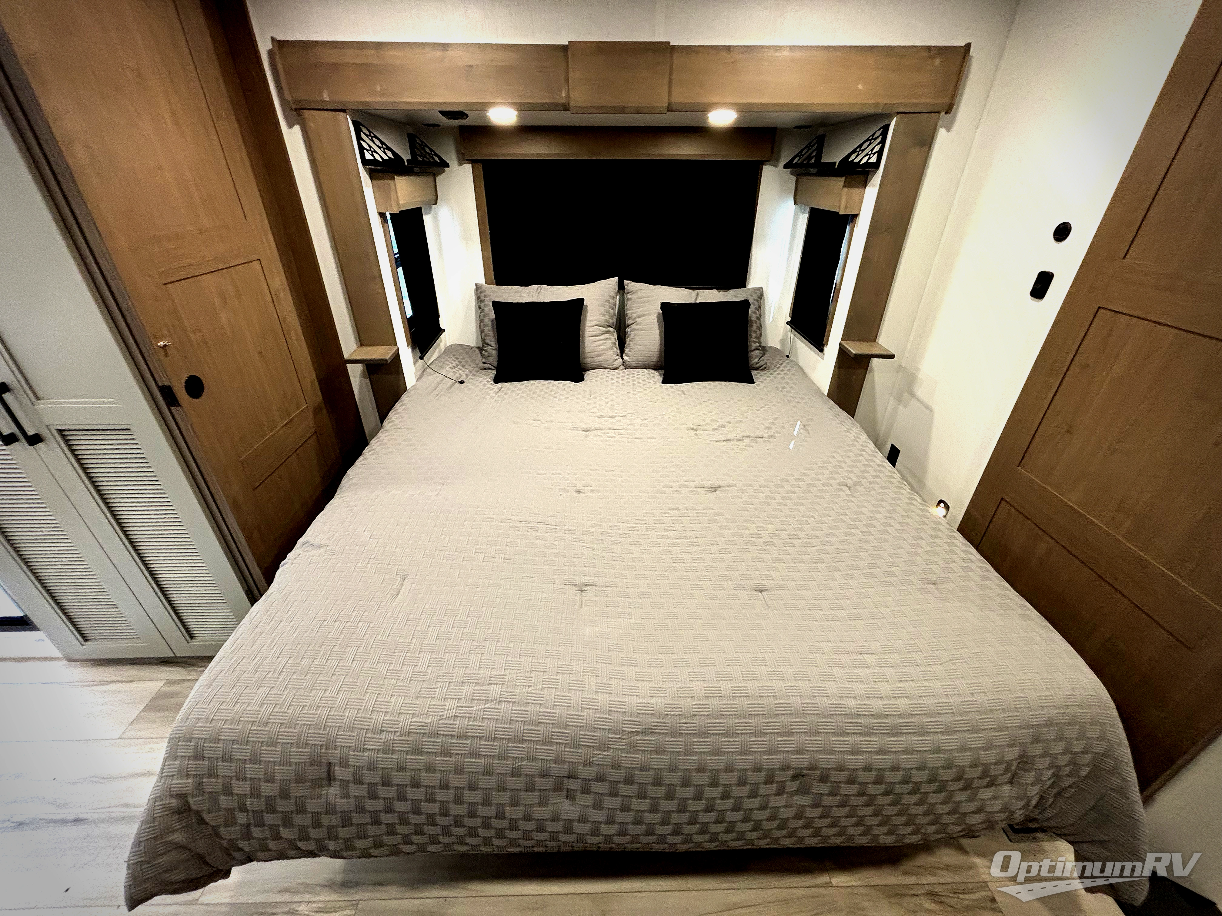 With any KZ Durango Gold full-time luxury fifth wheel, you will enjoy the new Blancher Maple and Morel Fog cabinetry, stainless steel appliances such as a 30" convection microwave and 24" oven with a four burner range, plus a stainless dishwasher. Other top features include an electric tilt bed with Serta Comfort foam king mattress, three 15K A/C units, plus theater seating with powered recline, heat and massage features. You will also appreciate a handy central vacuum system with attachments that stores out of sight. Each Durango Gold is constructed with six-sided aluminum framing, and has a heated, insulated and an enclosed underbelly. It is also constructed with Tufflex roofing material which is flexible, puncture resistant, and reflective. The now standard "Off The Grid" solar package includes two 200W solar panels, a 30A MPPT solar charge controller, and a 2,000W True Sine Wave inverter for off-grid capabilities. If you're wanting to go completely off-grid, you might want to choose the optional Boondocker Solar System with even more features that won't require you to be close to electric hookups!
