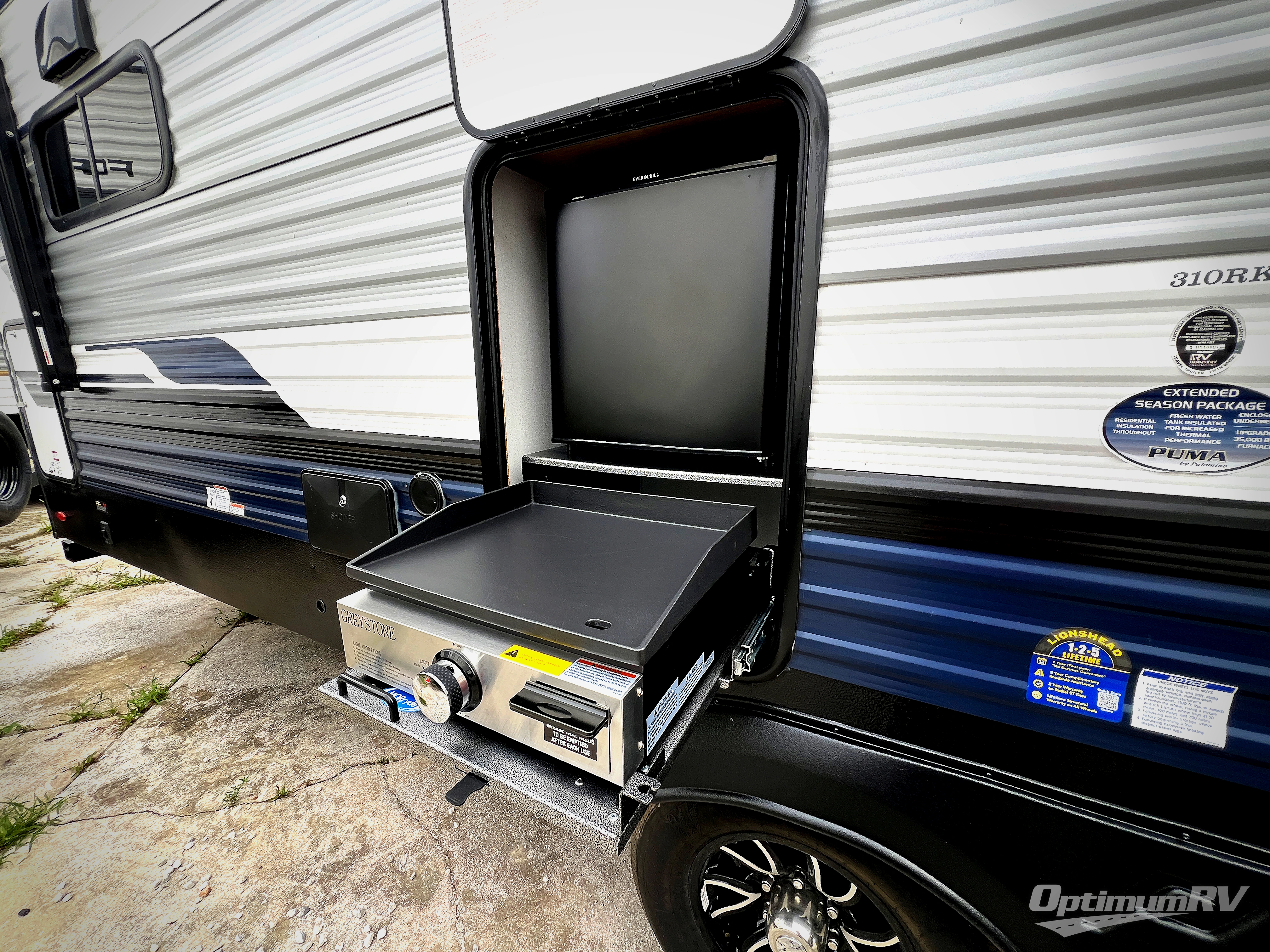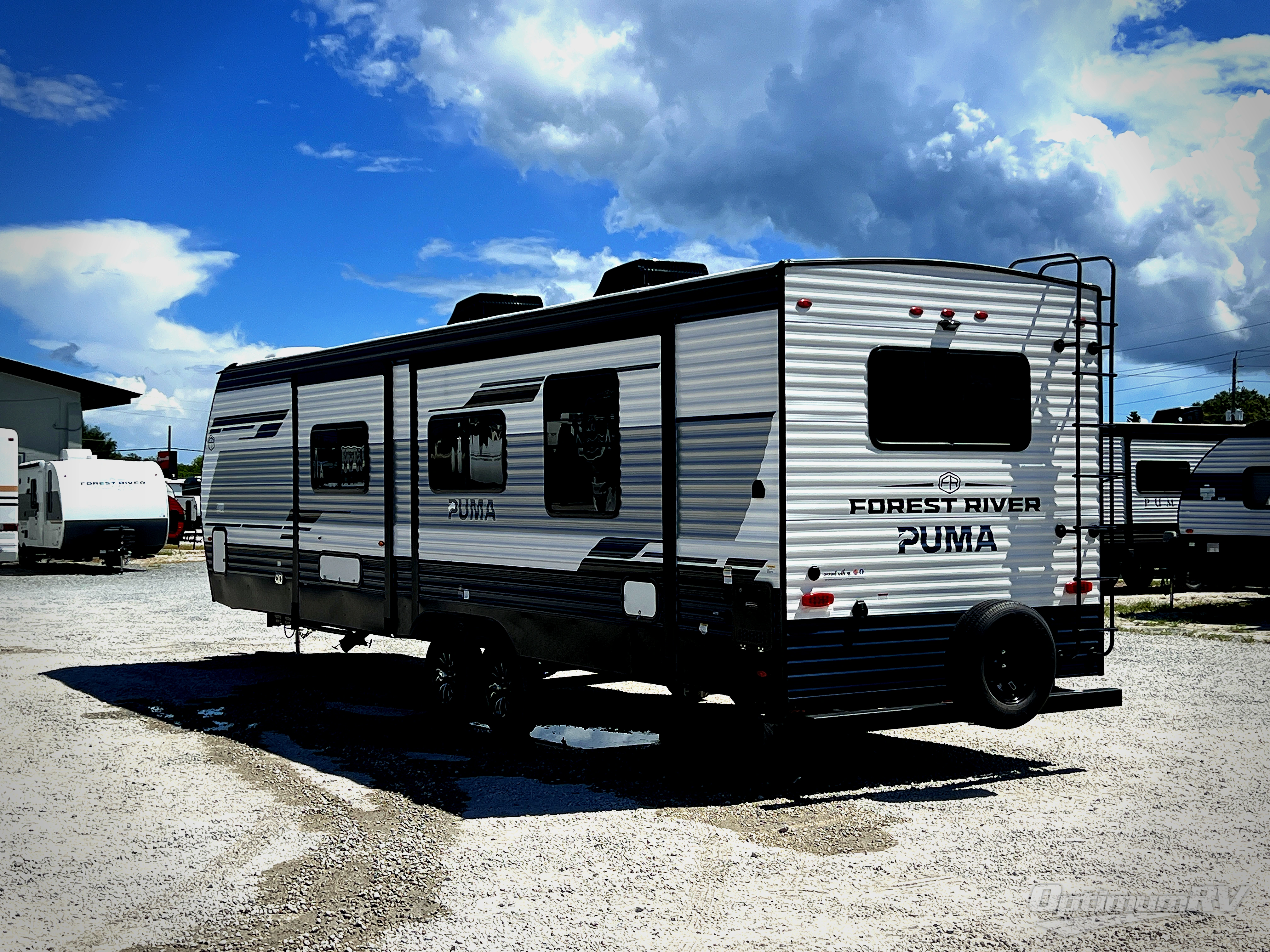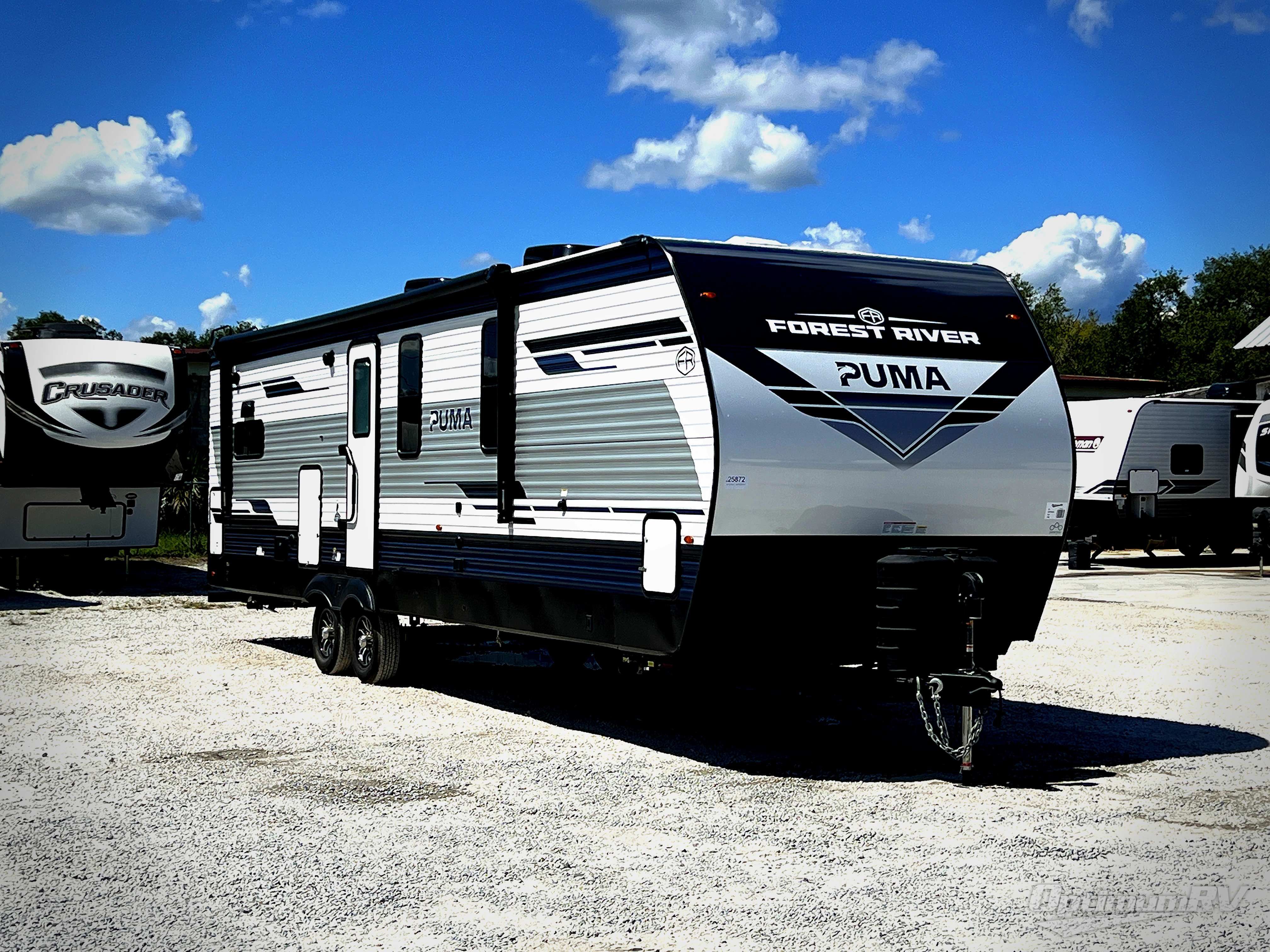 If you're looking for family-fun adventures then you need one of these Palomino Puma fifth wheels or travel trailers! They are built rugged, easy to tow, and jam packed with features. The Darco wrapped underbelly will protect your units vitals and the AlphaPly roofing membrane covers it. They also have new aluminum wheels and a powder coated steel I-beam frame. Inside, the Congoleum linoleum will be easy to keep clean, and the night roller shades will provide privacy when it's time to turn in. You'll also enjoy an electric awning with an LED light strip plus an AM/FM/Bluetooth stereo and two outside speakers to keep the party going!