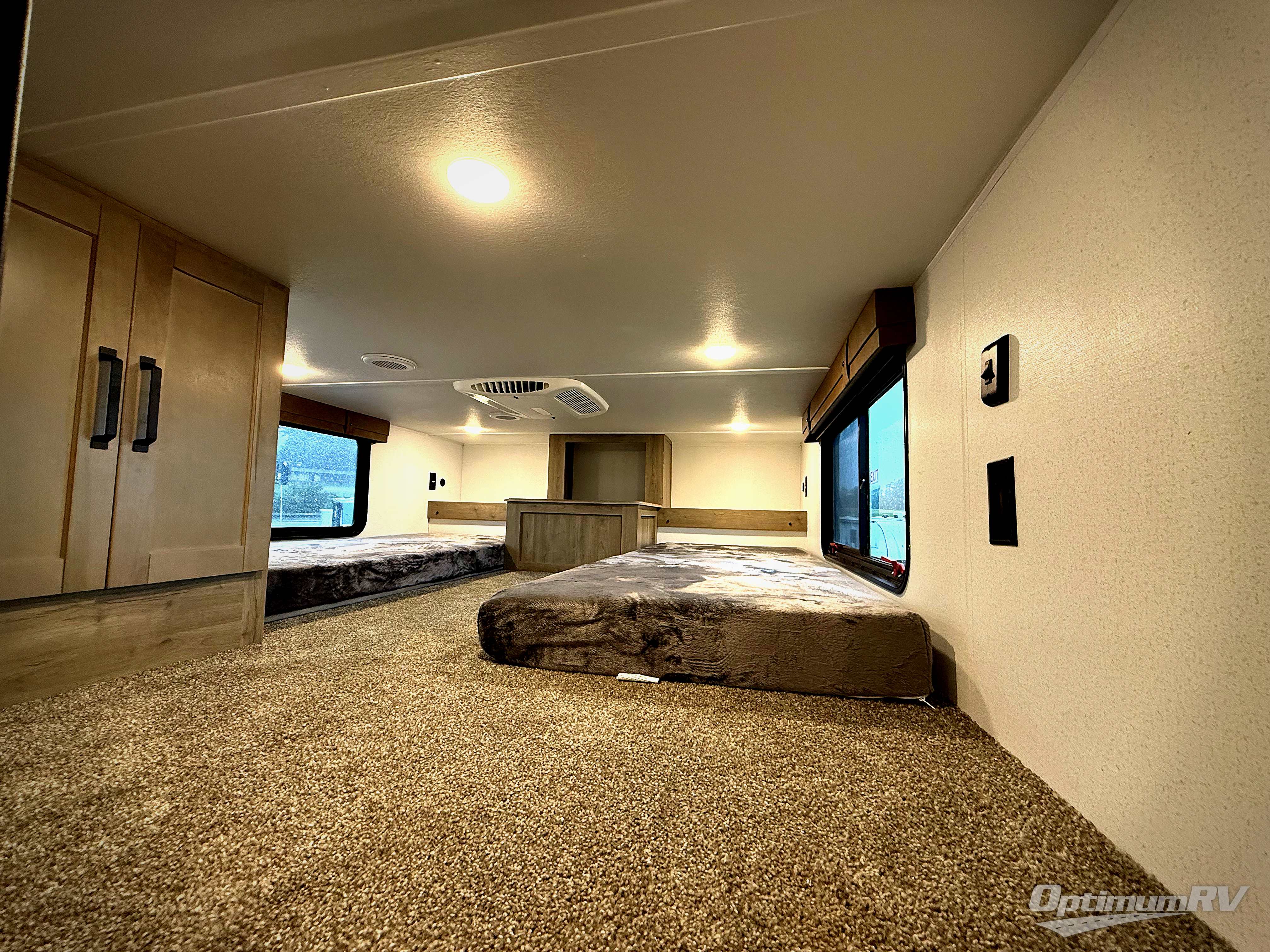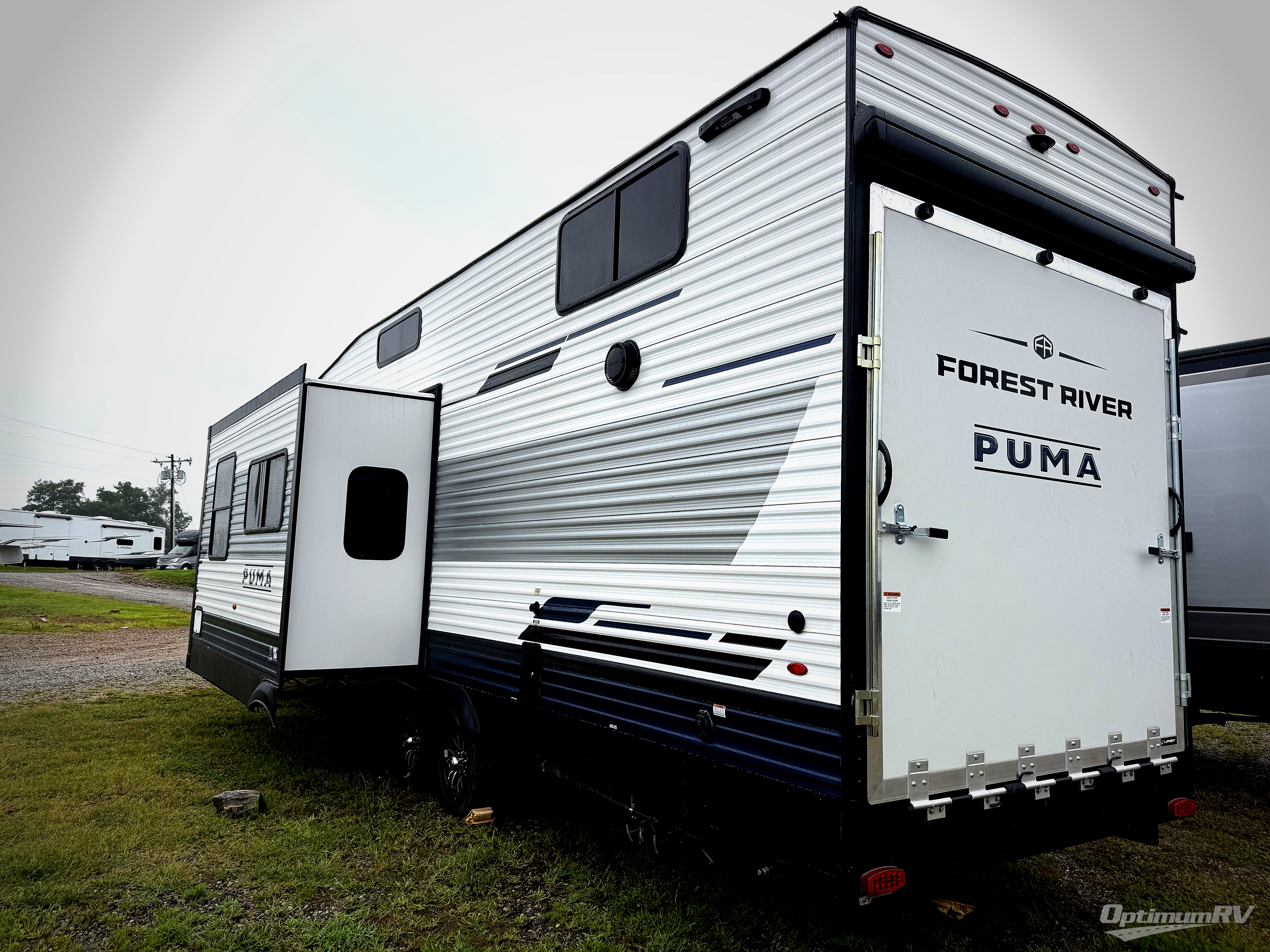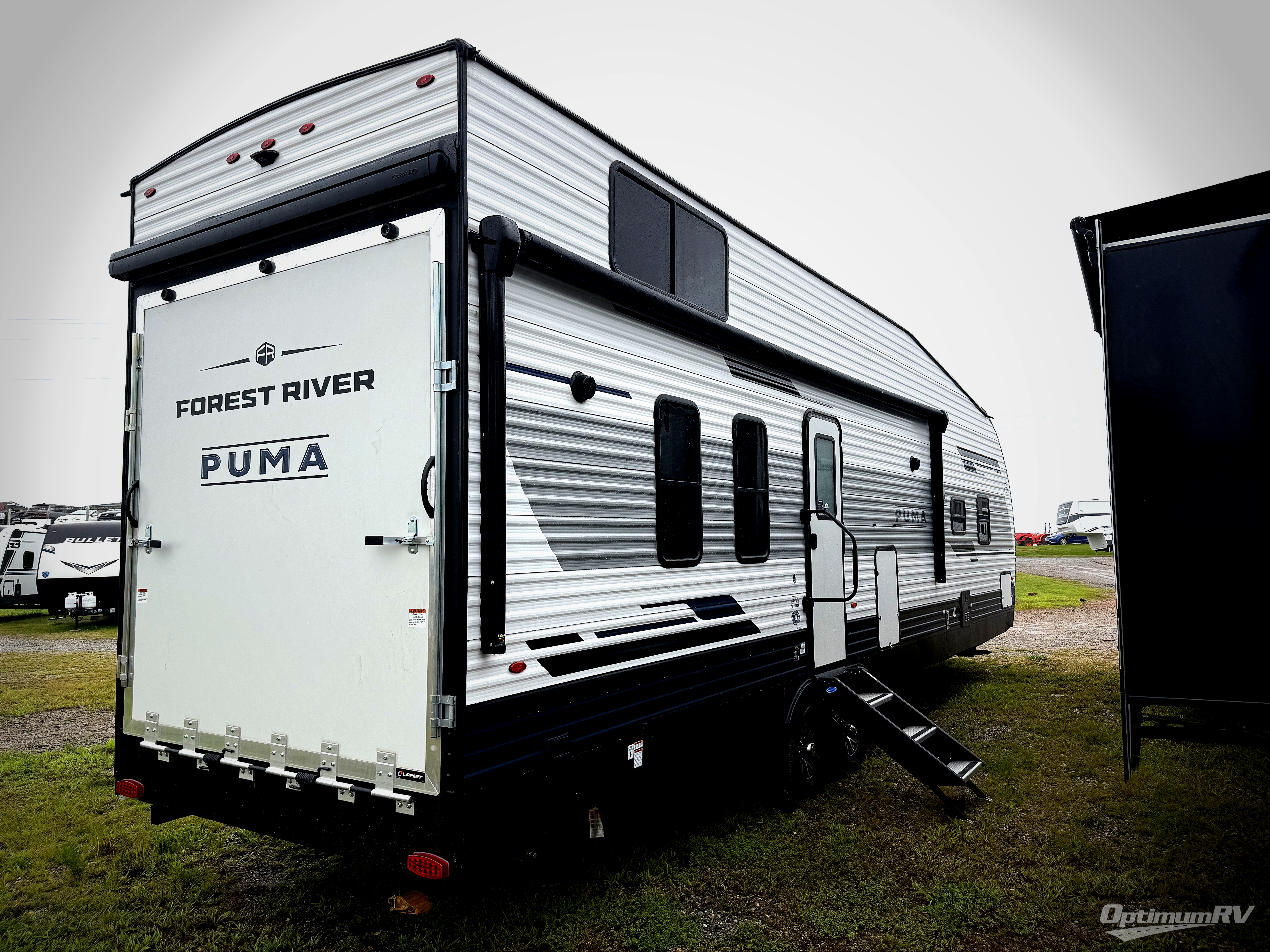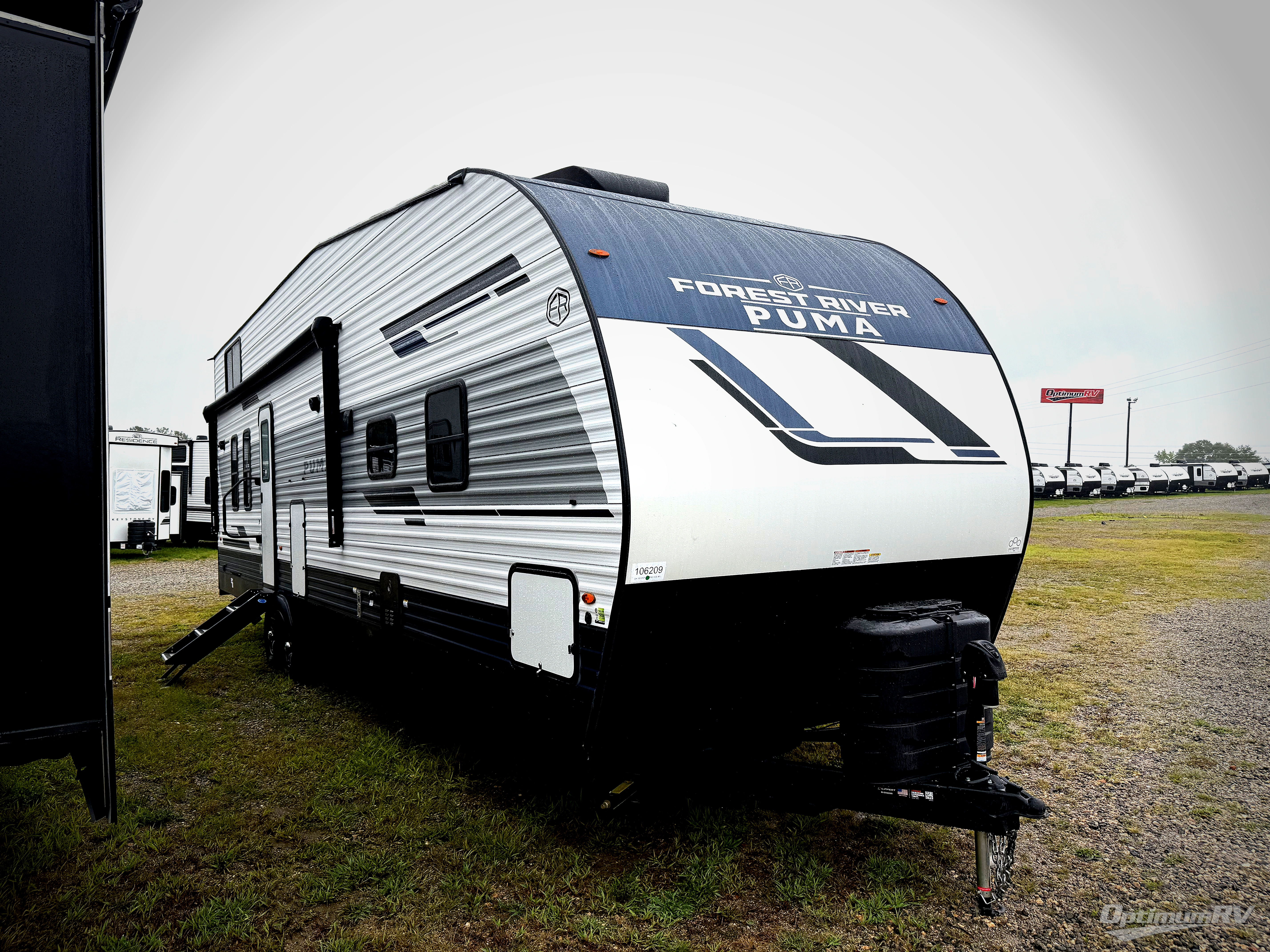 The ultimate travel trailer is found in this Puma! There is ample space to move about thanks to the large slide out and dual entry doors, plus there is a rear patio where you can entertain guests and relax in your camp chairs! The full bath includes a large linen closet to keep bath necessities stocked, and above this room is where you'll find the loft with two bunk mats. The loft looks out on the main living area and kitchen, where you can relax on the sofa, play a game at the booth dinette, and make dinner in the full kitchen. And a front private bedroom provides you with your own space at night!
