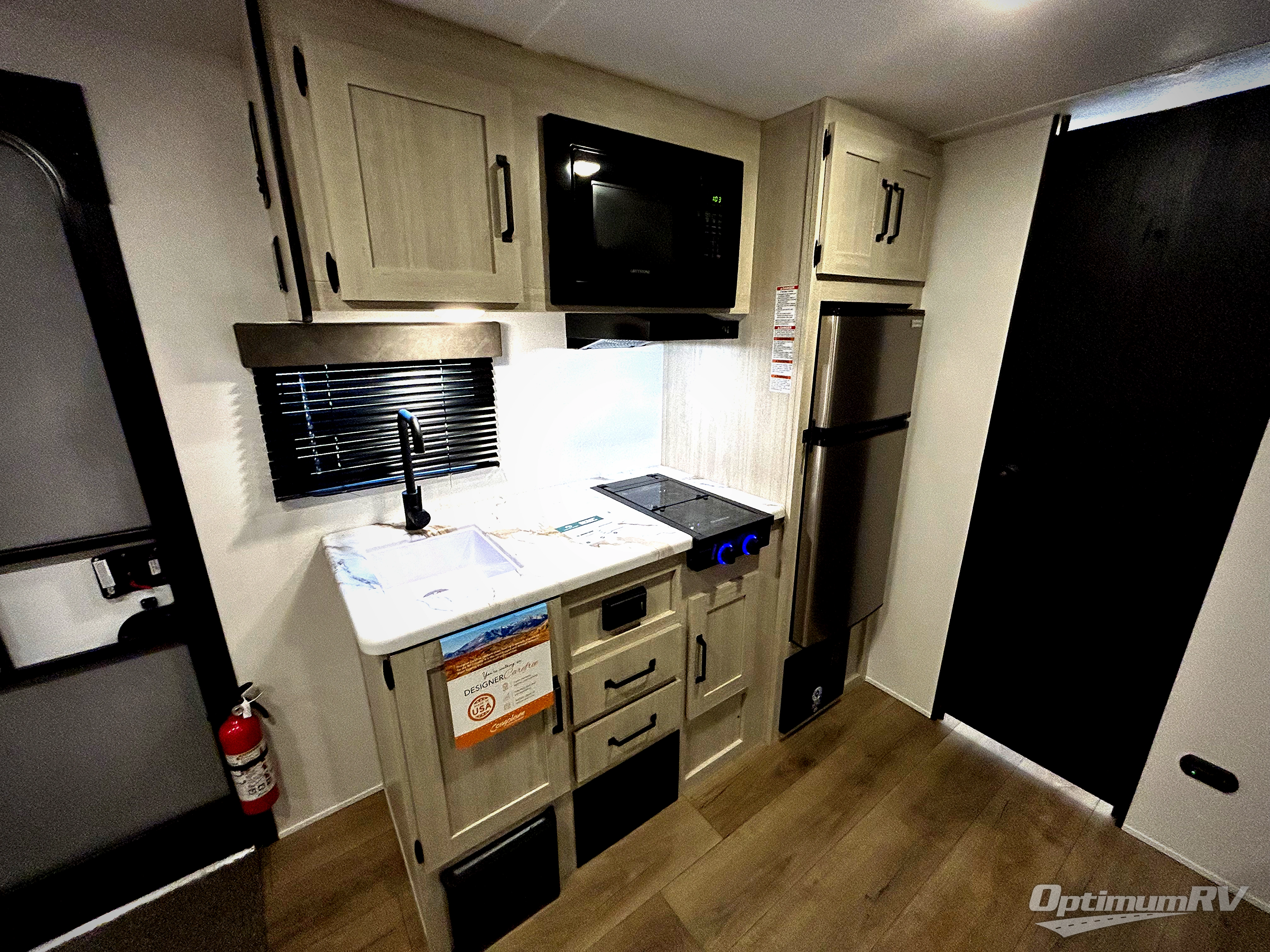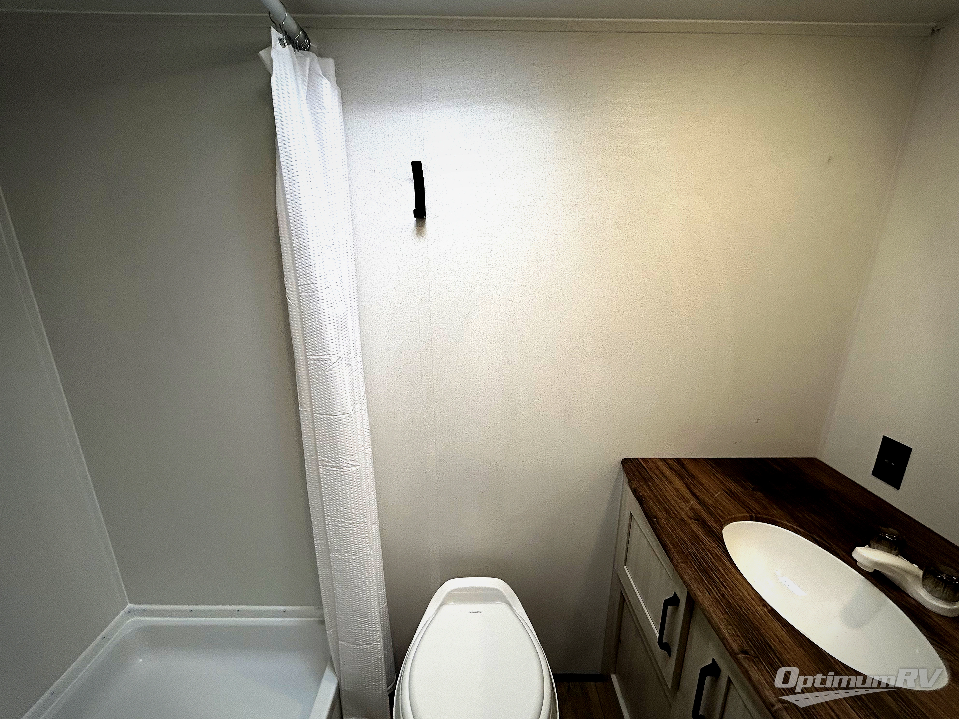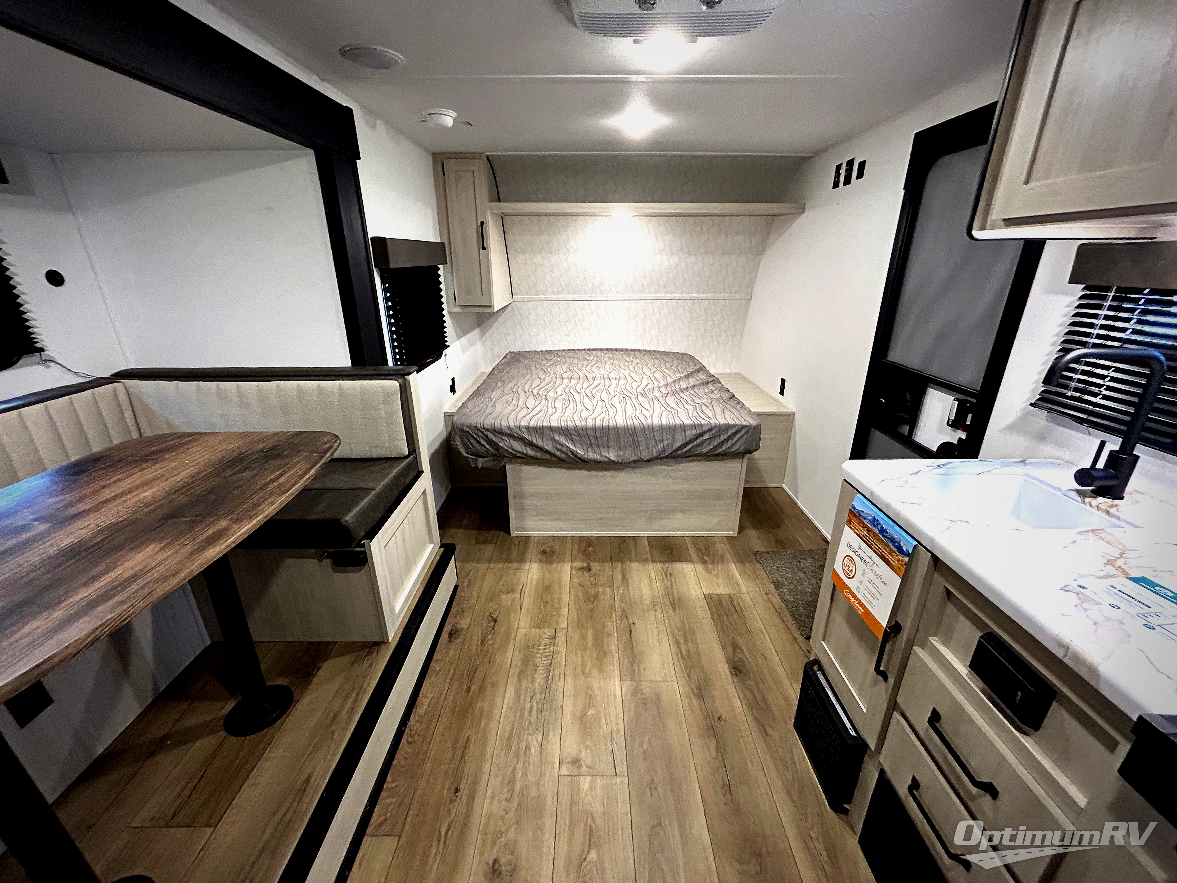 This travel trailer includes everything you need for camping trips at the lake. You'll sleep great each night on the front RV queen bed, or you can choose the optional Murphy bed with a sofa if you need more seating space during the day. The chef of your group can make meals on the two burner cooktop or in the microwave oven, then you can dine around the U-shaped dinette slide. A full rear bath includes a 36" x 30" shower, a toilet, vanity, plus a medicine cabinet to keep your things organized.