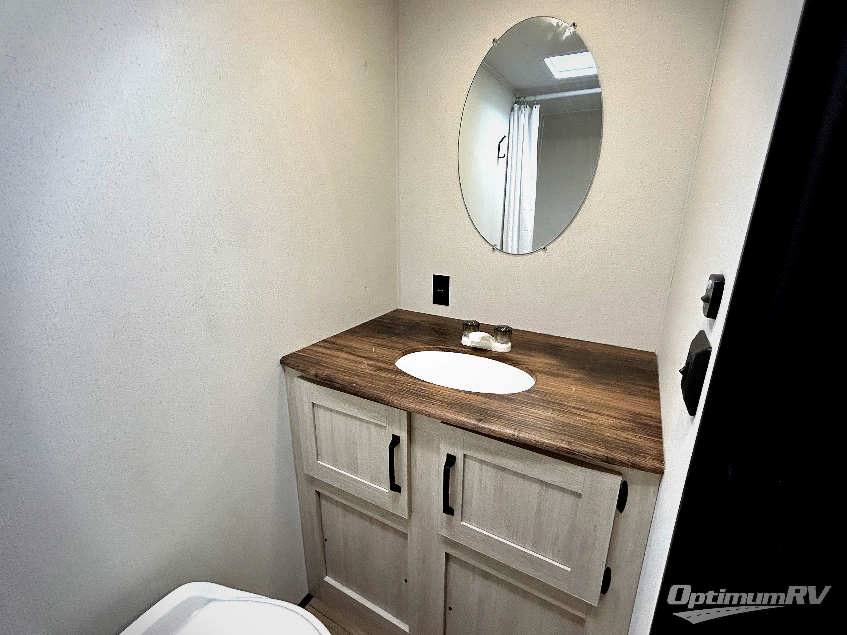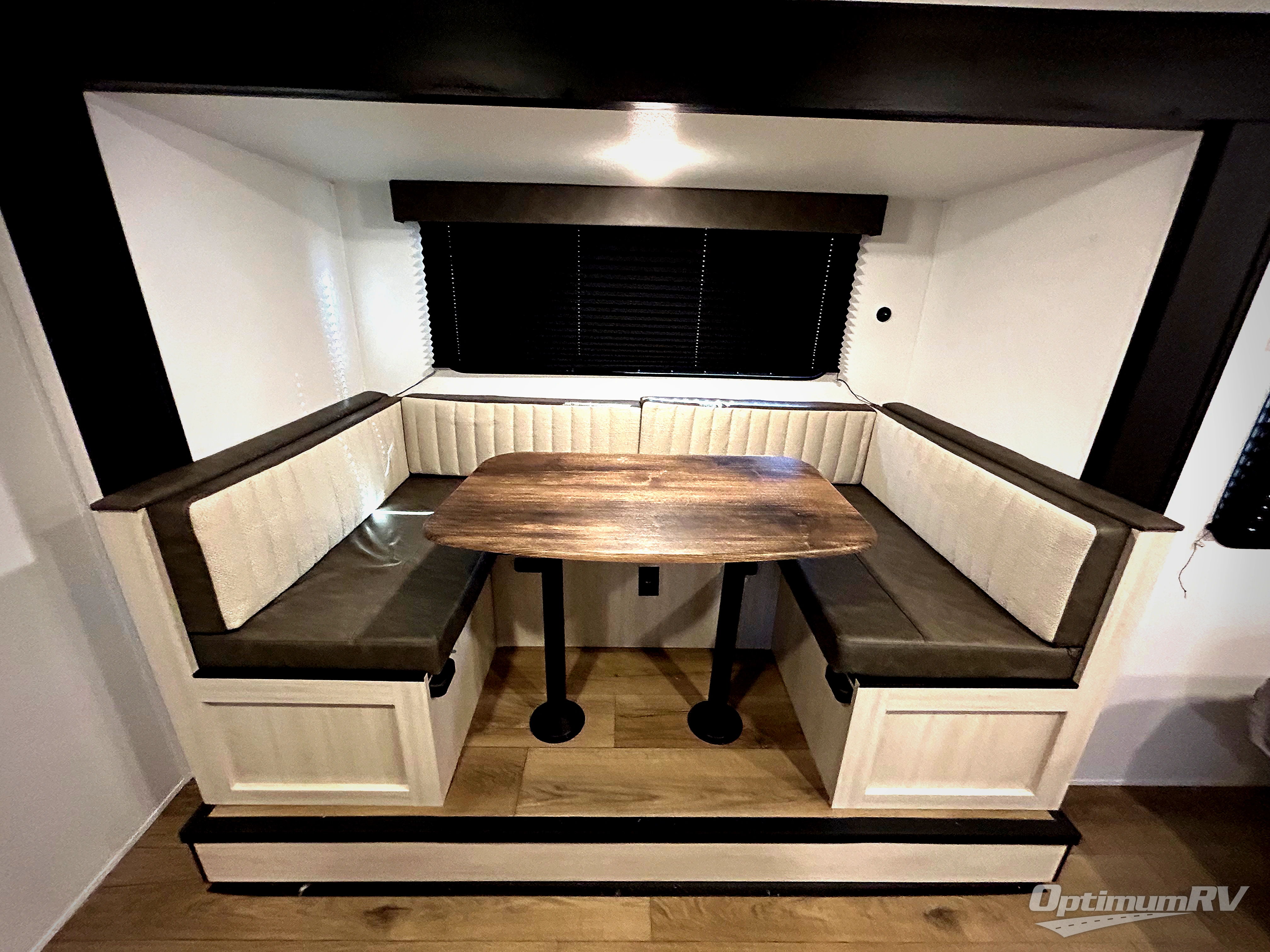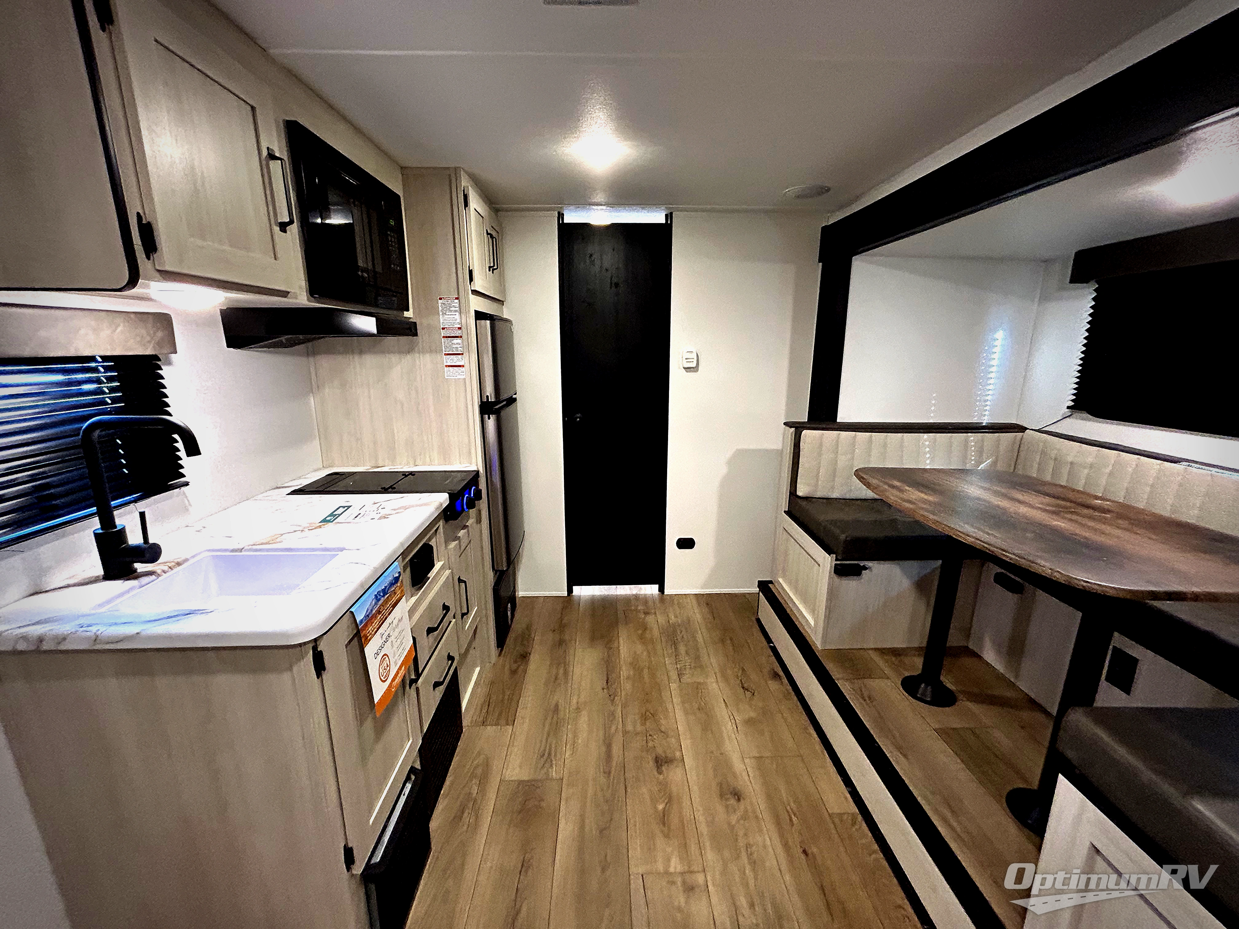 This travel trailer includes everything you need for camping trips at the lake. You'll sleep great each night on the front RV queen bed, or you can choose the optional Murphy bed with a sofa if you need more seating space during the day. The chef of your group can make meals on the two burner cooktop or in the microwave oven, then you can dine around the U-shaped dinette slide. A full rear bath includes a 36" x 30" shower, a toilet, vanity, plus a medicine cabinet to keep your things organized.