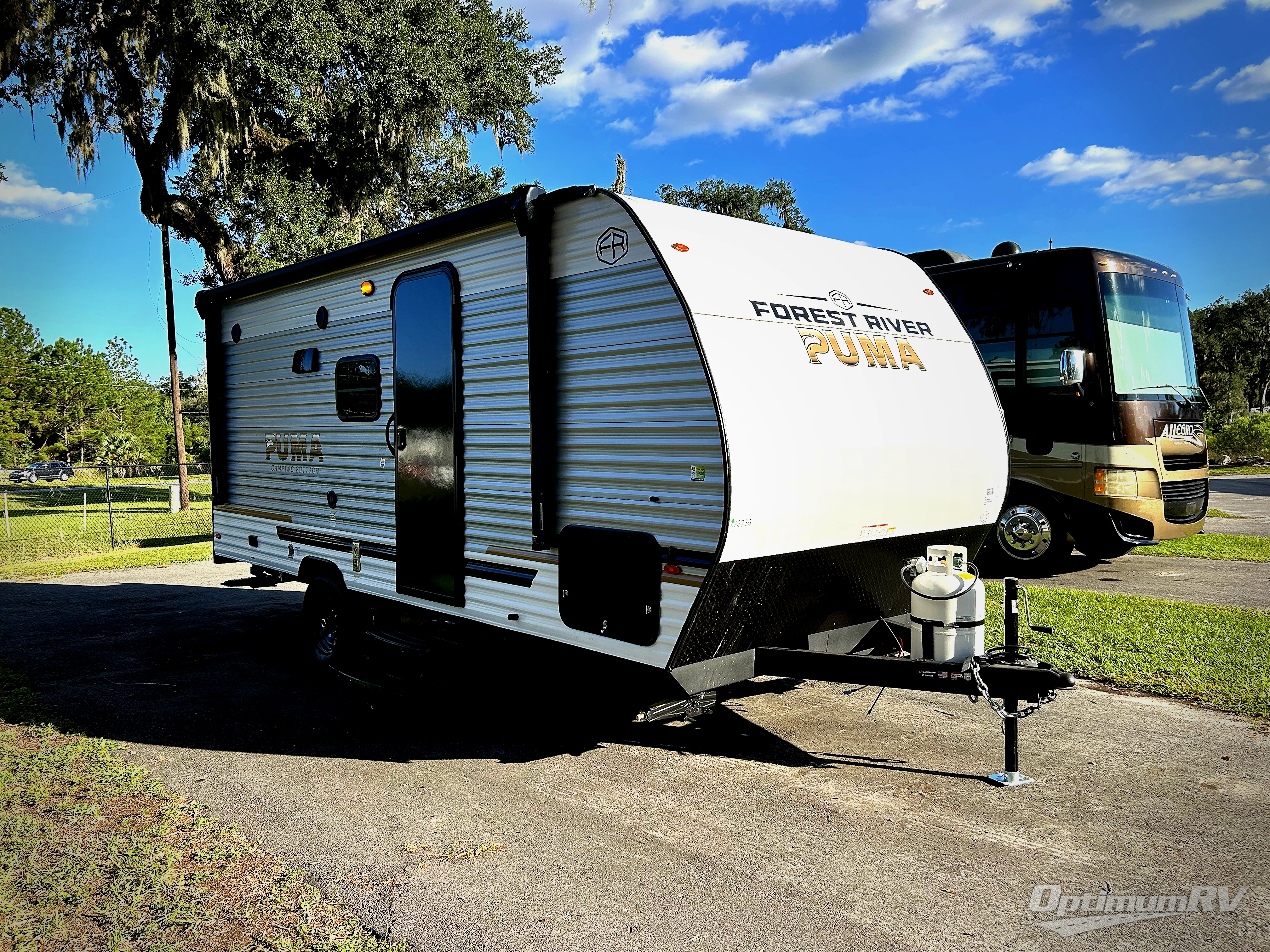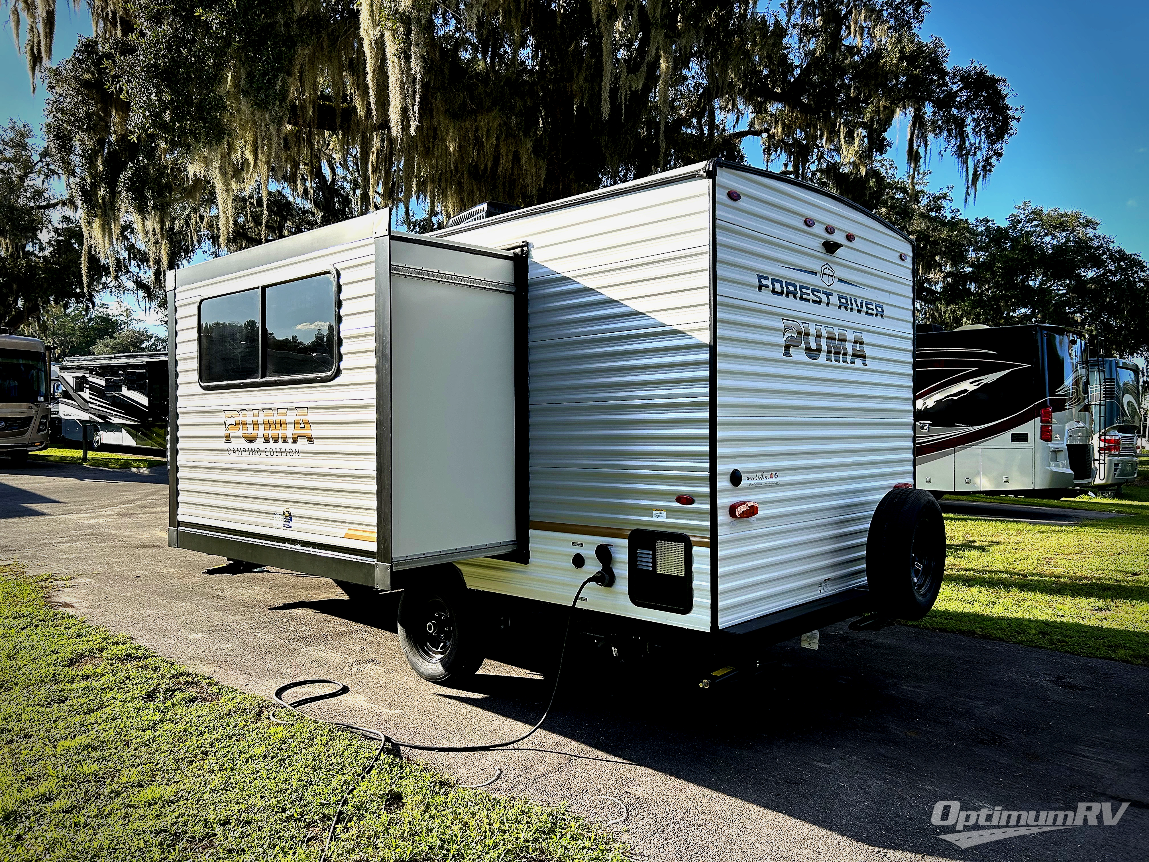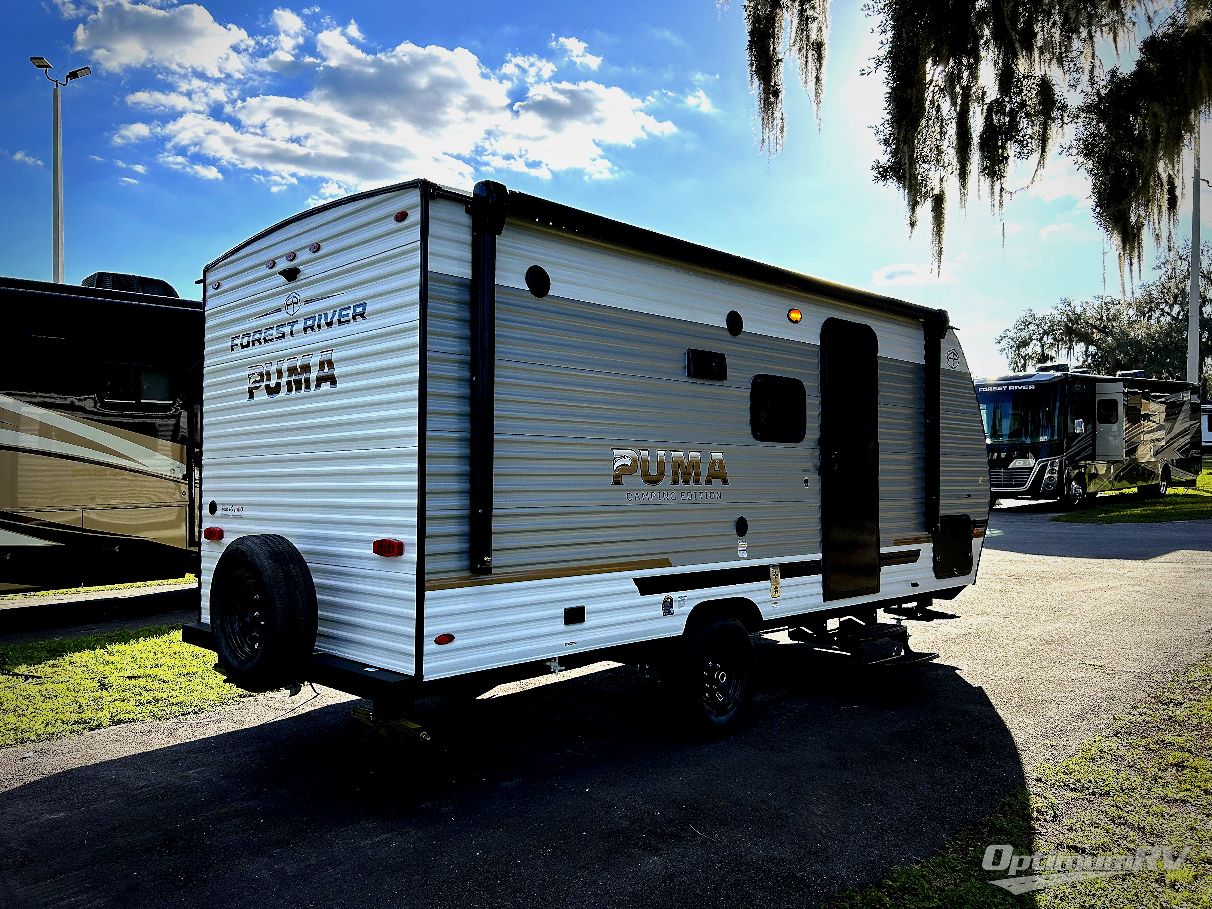 The Puma Camping Edition by Palomino offer an affordable travel trailer for rookie campers or seasoned RVers! They are built with 5/8" tongue and groove plywood flooring and a front diamond plate for added protection. There are also exterior clamp style door latches, back up camera prep, and 20 lb. LP bottles. Head inside to find Thermofoil countertops with a smooth drop edge, bedroom USB ports and outlets, and a GE appliance and kitchen package.