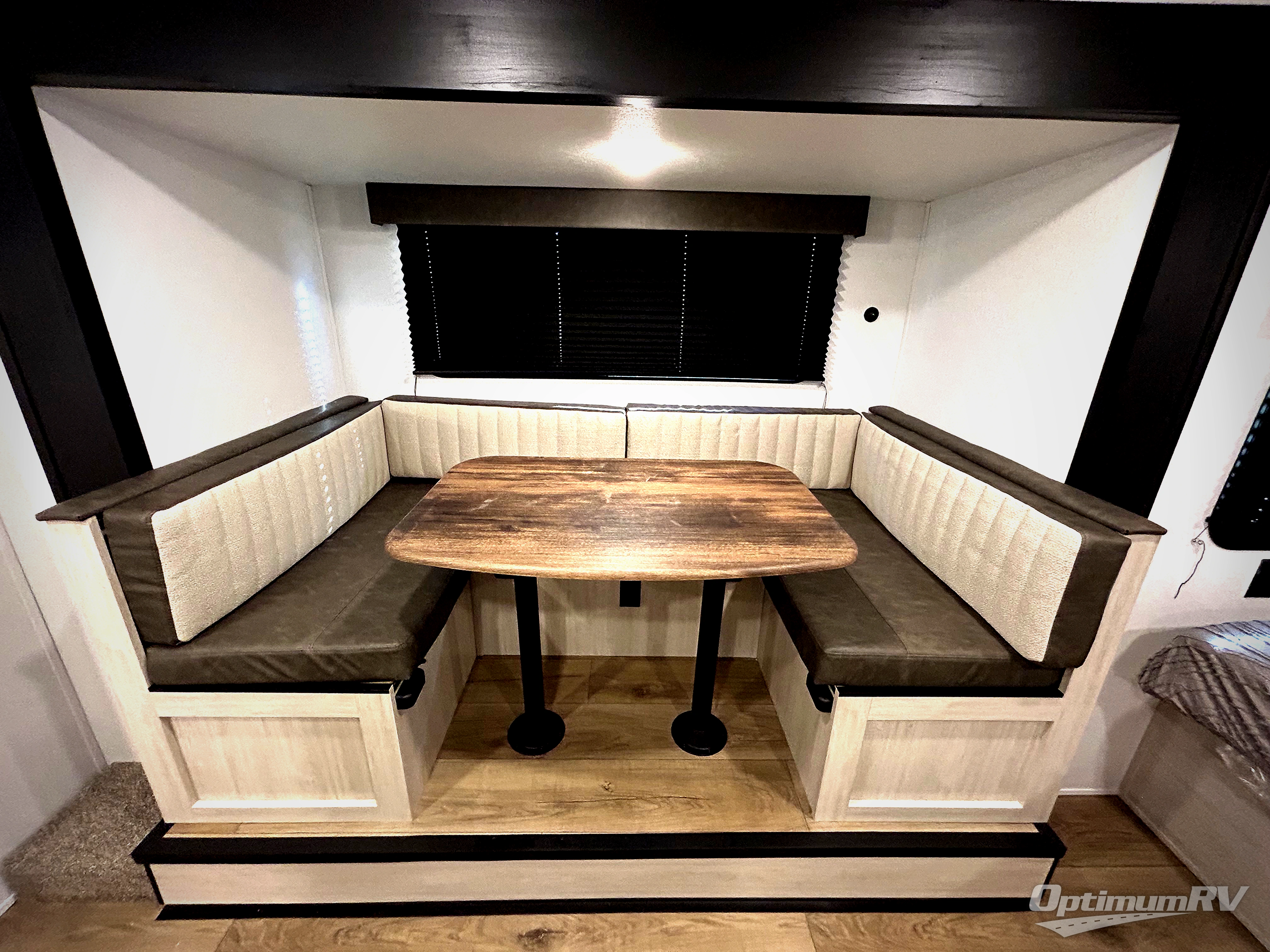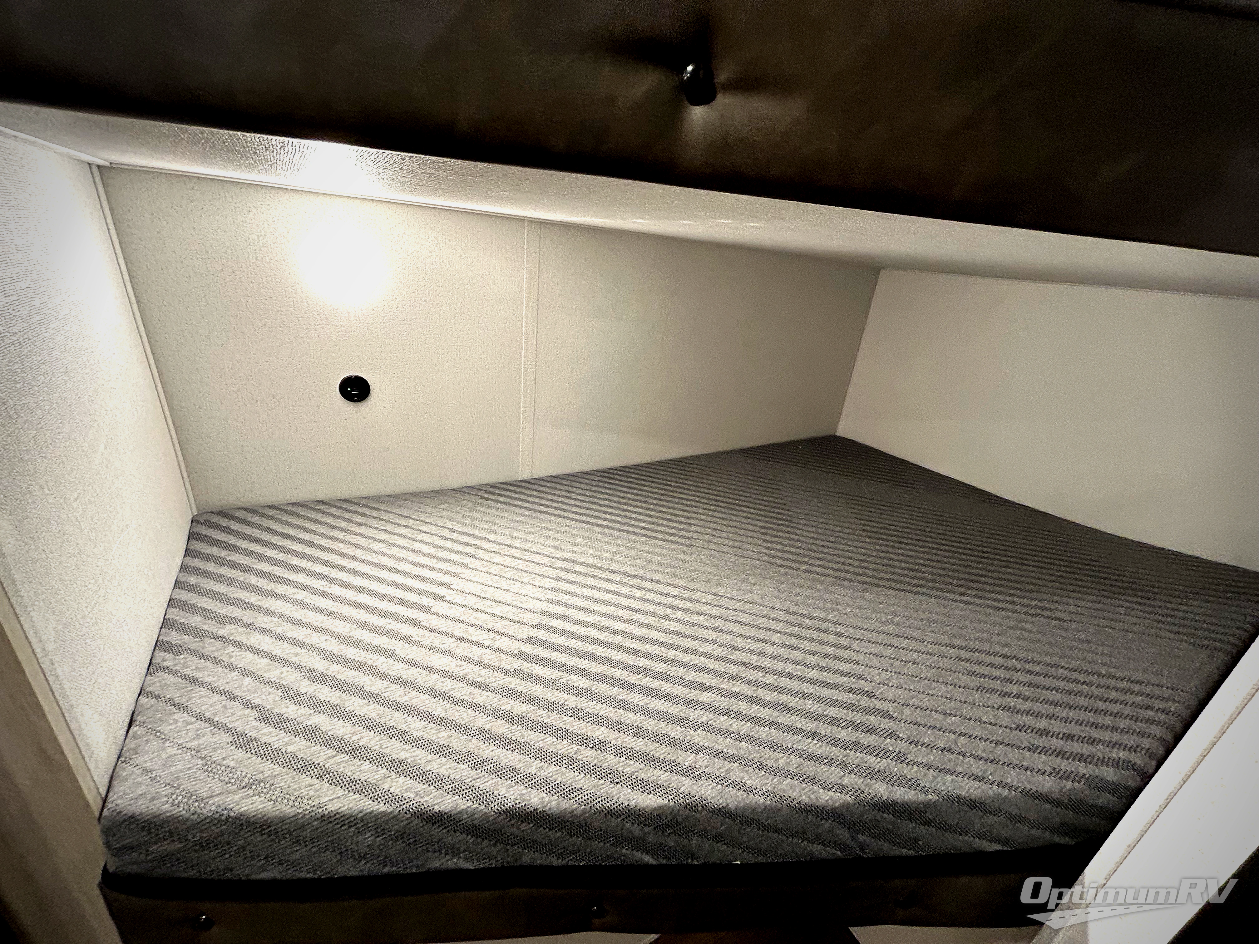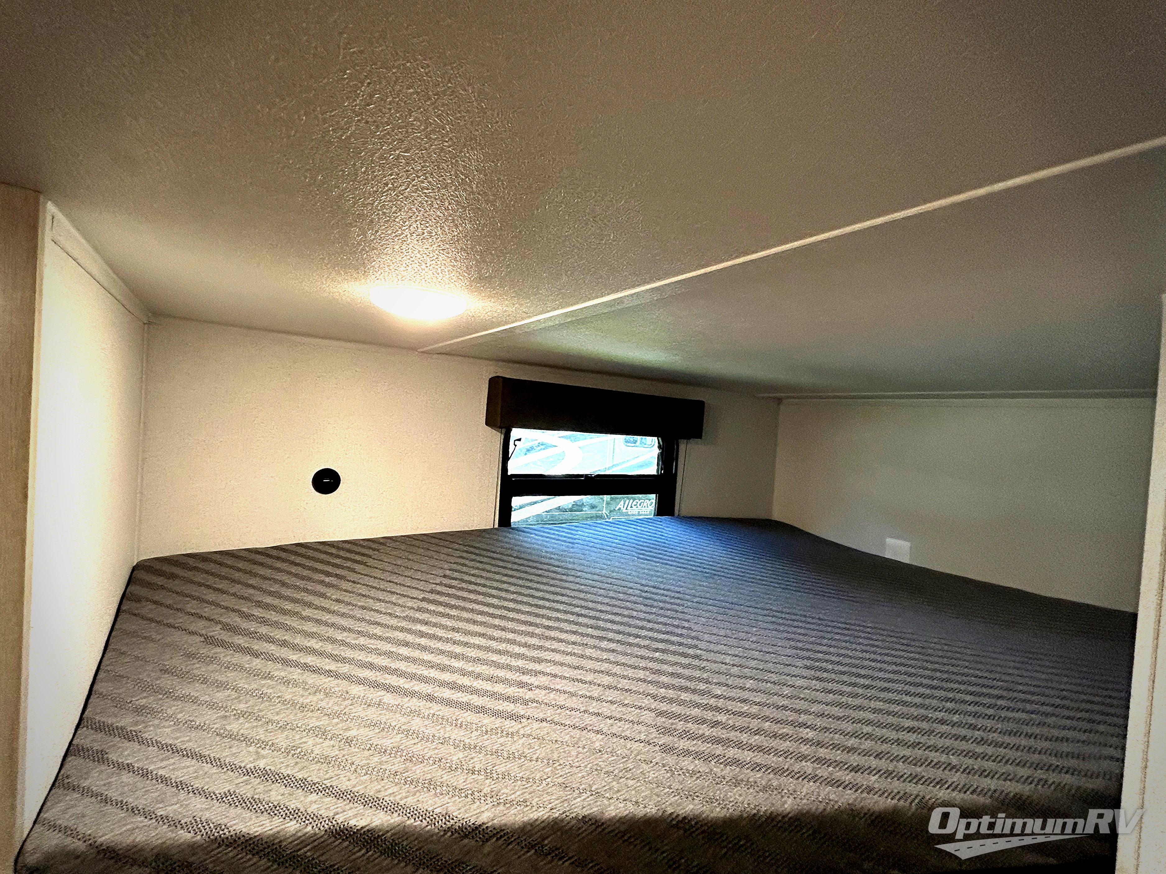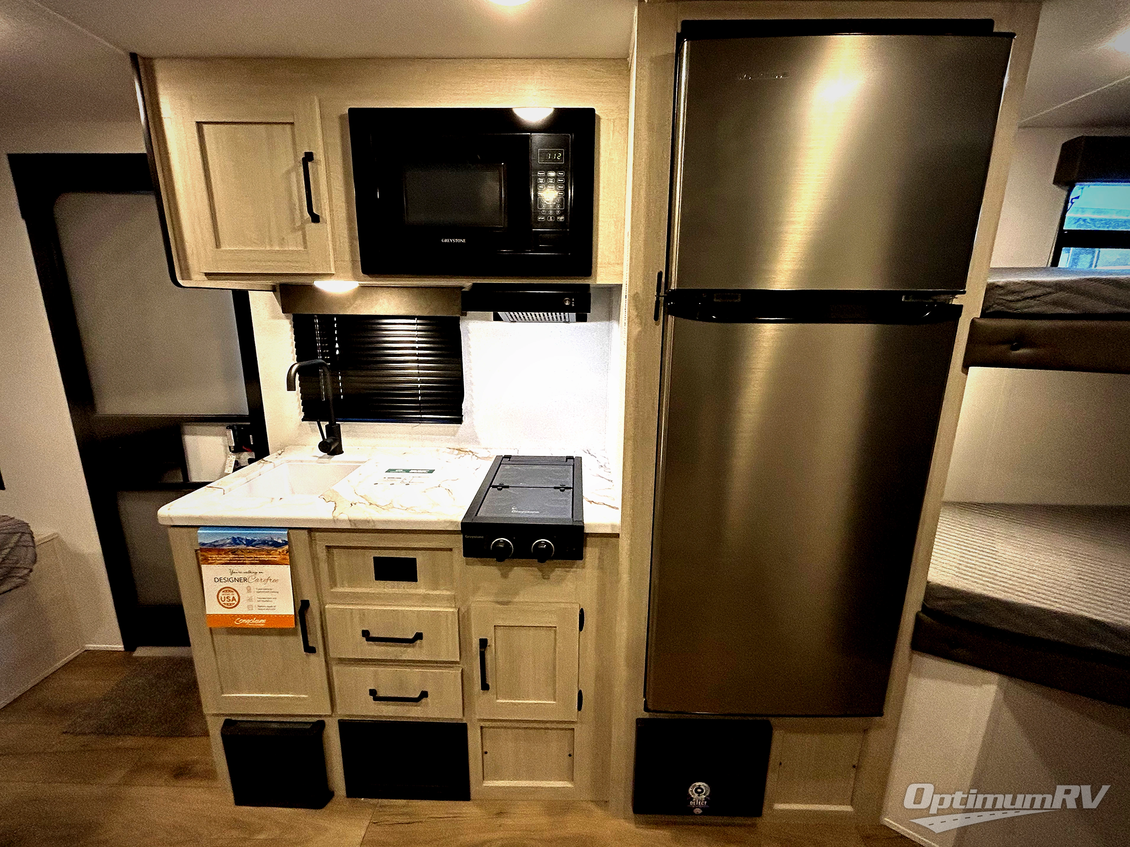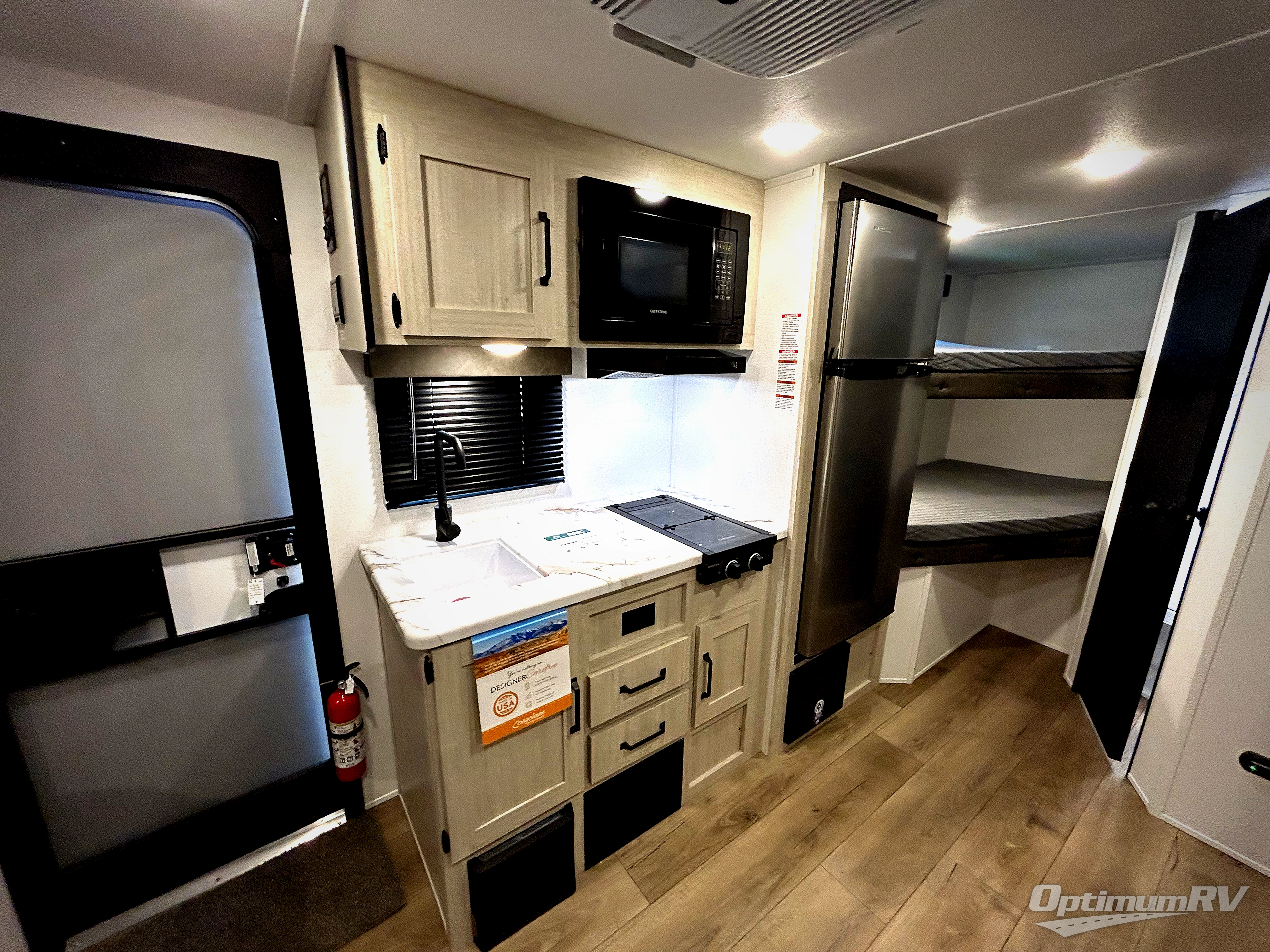 The whole gang will love camping in this travel trailer since there are double-size bunks for compact sleeping spaces and a slide out for more space to relax! The front RV queen bed is sure to provide a great night's rest, and you can choose the optional Murphy bed if you're needing more seating space during the day. Once you've made dinner on the two burner cooktop, you can dine around the U-shaped dinette. And an optional mini kitchen with a griddle is available if you'd rather cook outdoors! This unit includes ample storage space for your things, including exterior storage and storage under the bunks!