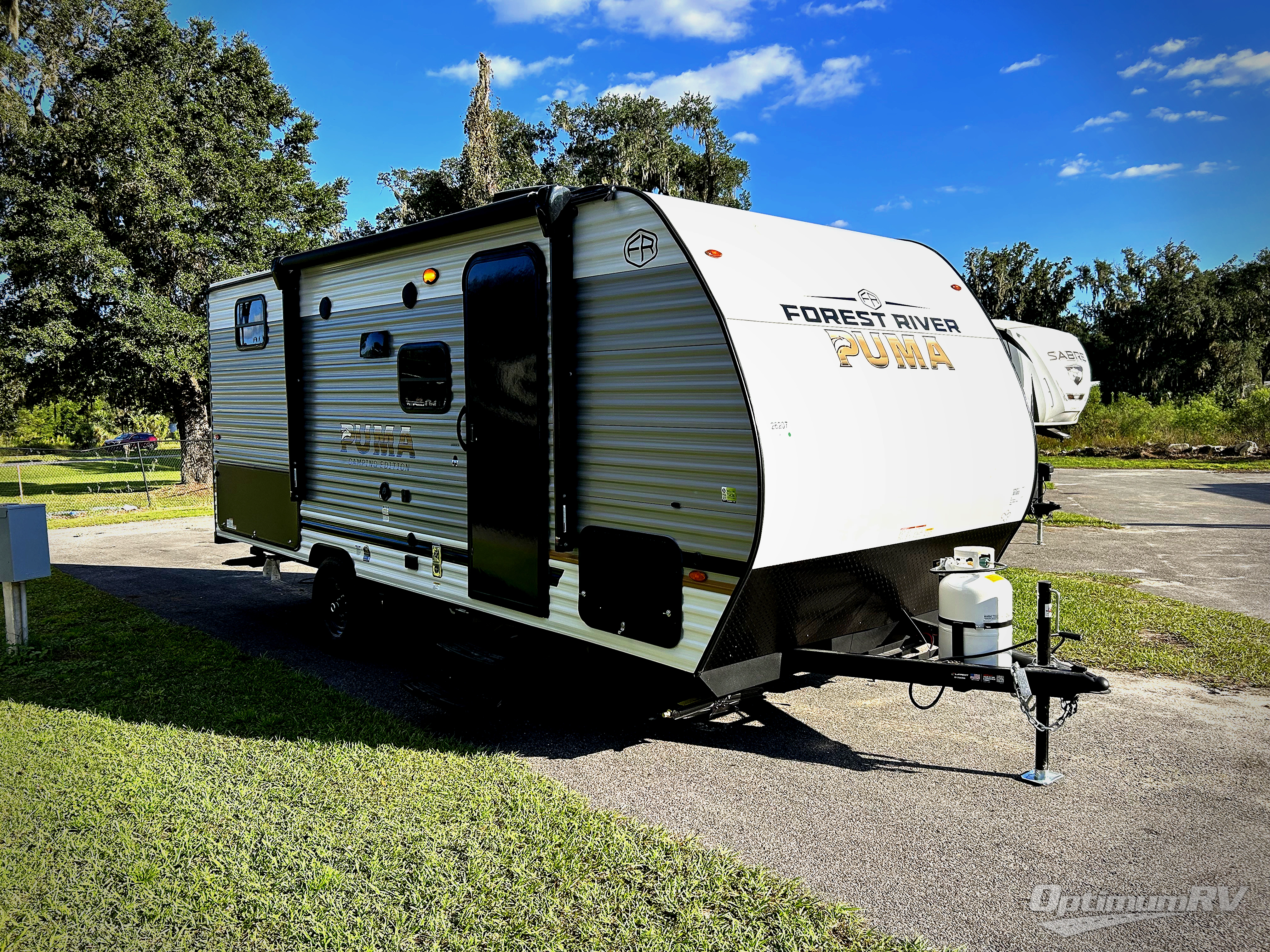 The Puma Camping Edition by Palomino offer an affordable travel trailer for rookie campers or seasoned RVers! They are built with 5/8" tongue and groove plywood flooring and a front diamond plate for added protection. There are also exterior clamp style door latches, back up camera prep, and 20 lb. LP bottles. Head inside to find Thermofoil countertops with a smooth drop edge, bedroom USB ports and outlets, and a GE appliance and kitchen package.
