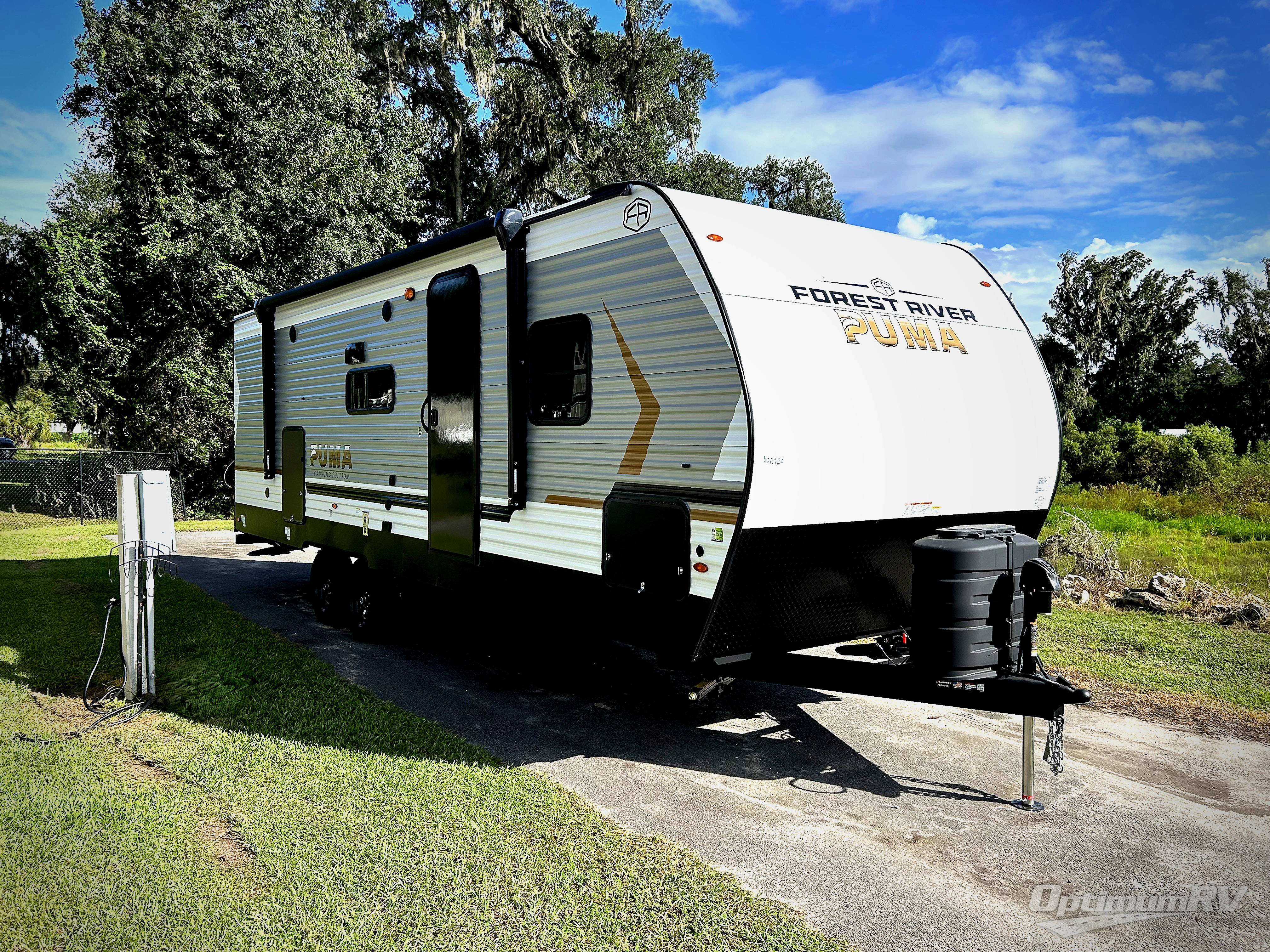 The Puma Camping Edition by Palomino offer an affordable travel trailer for rookie campers or seasoned RVers! They are built with 5/8" tongue and groove plywood flooring and a front diamond plate for added protection. There are also exterior clamp style door latches, back up camera prep, and 20 lb. LP bottles. Head inside to find Thermofoil countertops with a smooth drop edge, bedroom USB ports and outlets, and a GE appliance and kitchen package.