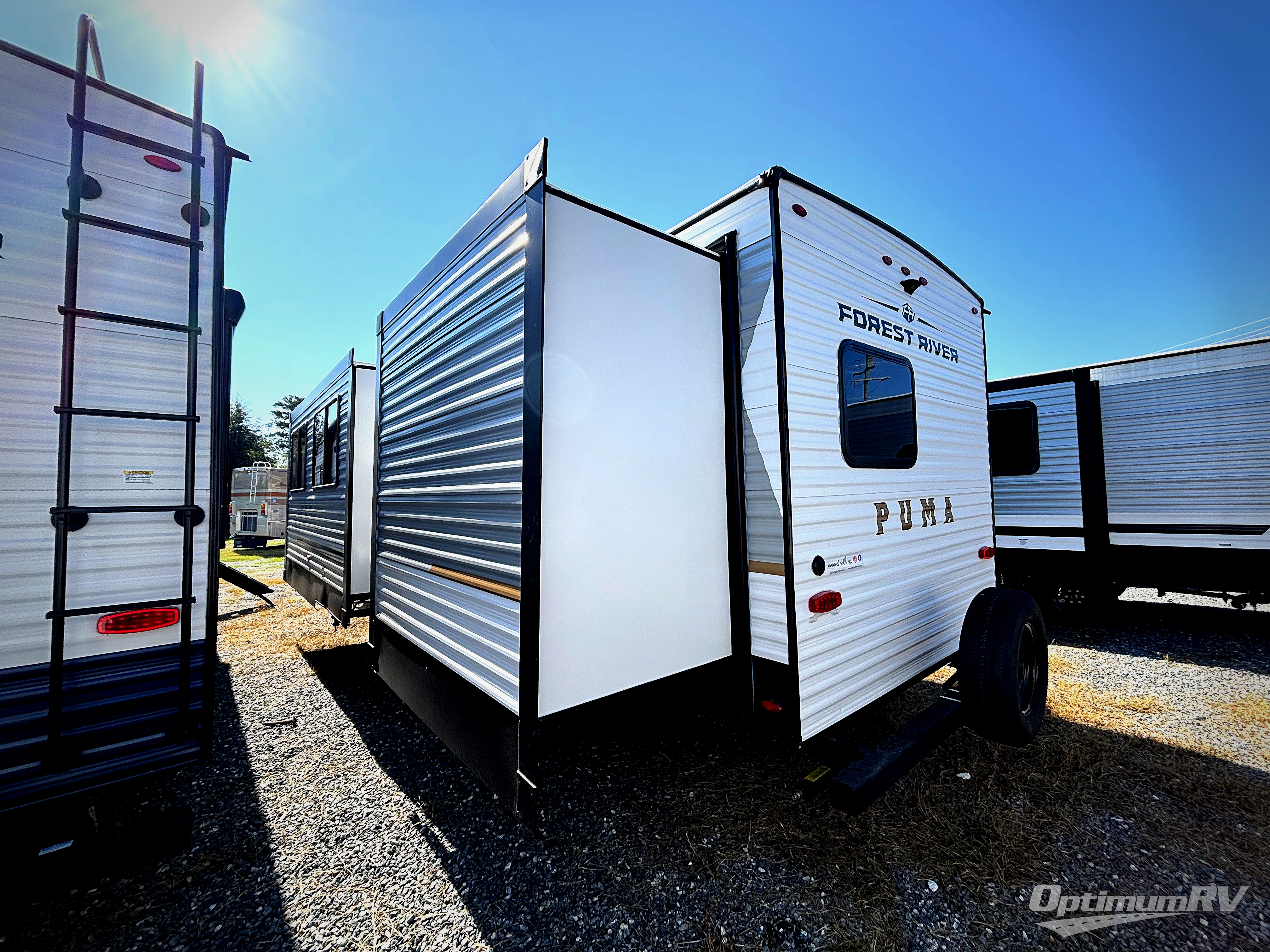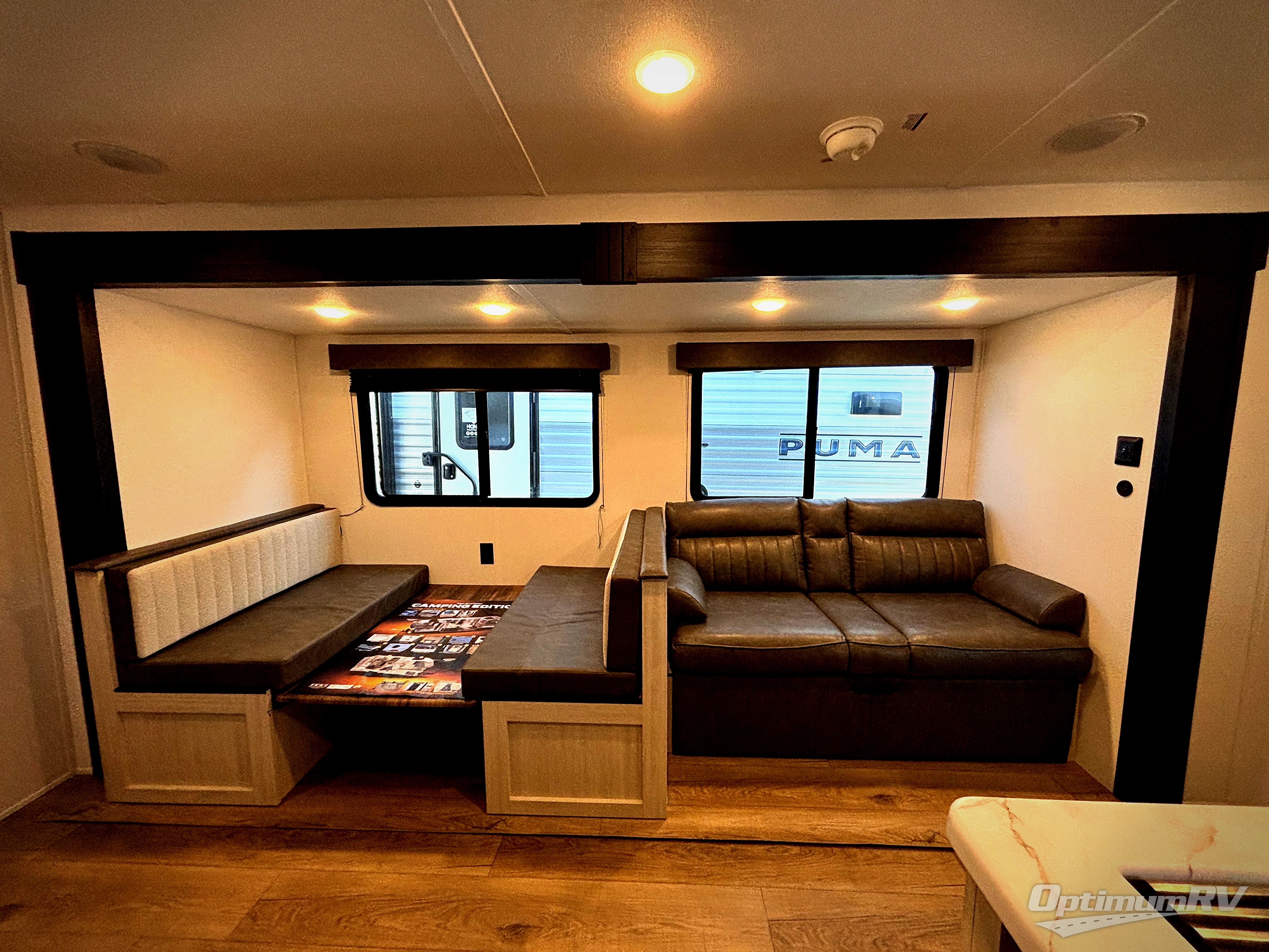 The Puma Camping Edition by Palomino offer an affordable travel trailer for rookie campers or seasoned RVers! They are built with 5/8" tongue and groove plywood flooring and a front diamond plate for added protection. There are also exterior clamp style door latches, back up camera prep, and 20 lb. LP bottles. Head inside to find Thermofoil countertops with a smooth drop edge, bedroom USB ports and outlets, and a GE appliance and kitchen package.
