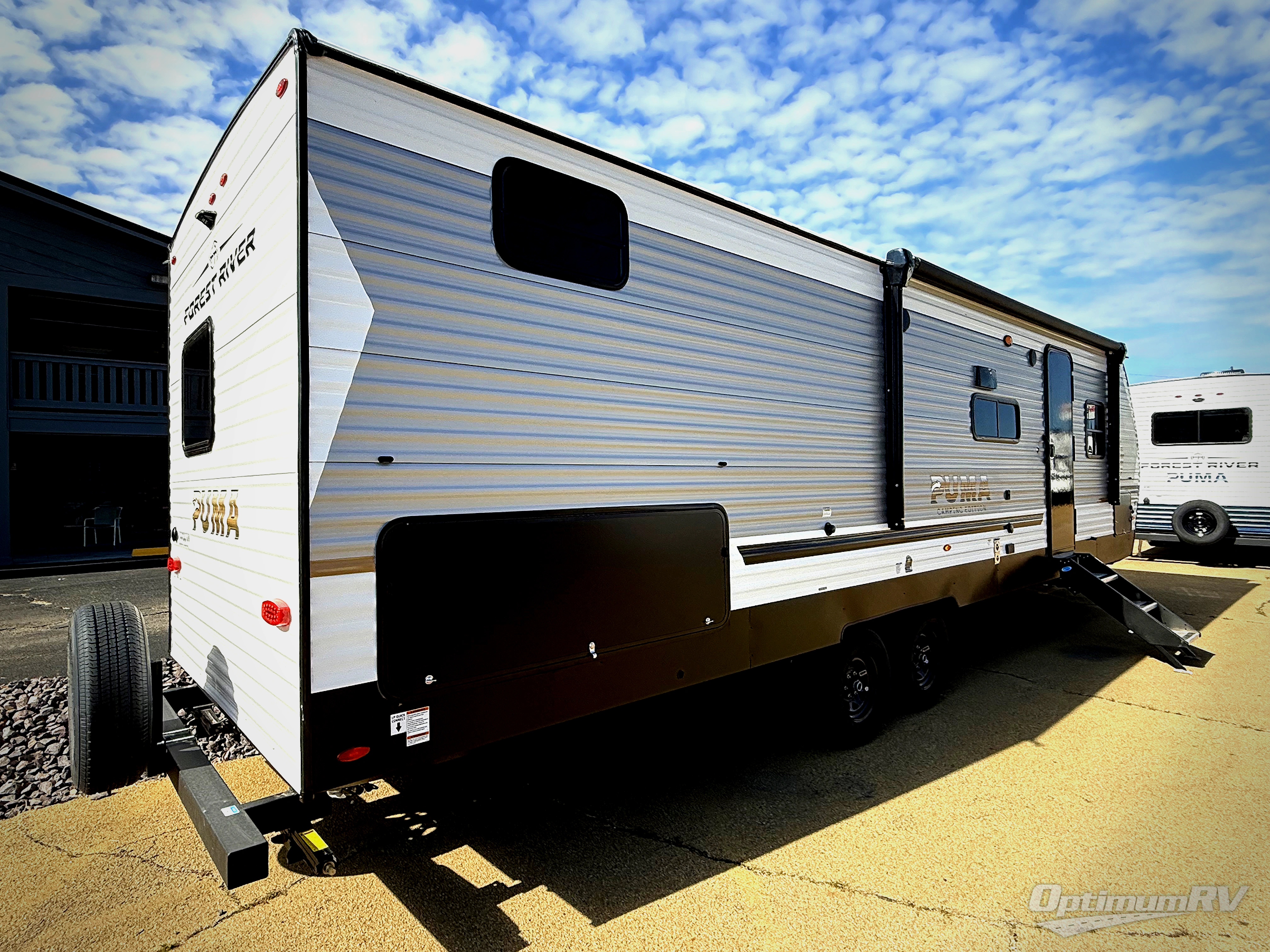 The Puma Camping Edition by Palomino offer an affordable travel trailer for rookie campers or seasoned RVers! They are built with 5/8" tongue and groove plywood flooring and a front diamond plate for added protection. There are also exterior clamp style door latches, back up camera prep, and 20 lb. LP bottles. Head inside to find Thermofoil countertops with a smooth drop edge, bedroom USB ports and outlets, and a GE appliance and kitchen package.