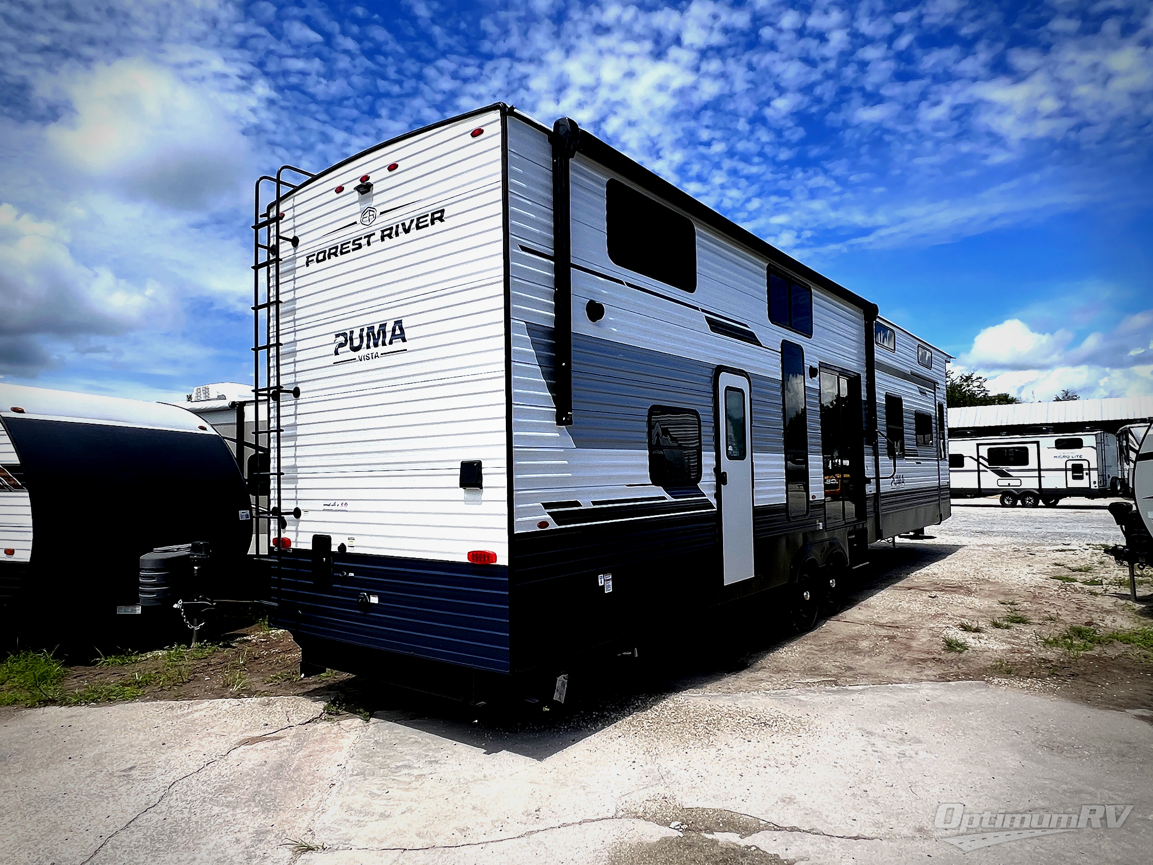 Each Puma Destination trailer by Palomino is designed to give you unforgettable getaways to the destination of your choice! The required Value Shopper Loft Package includes Congoleum designer linoleum, night roller shades, LED lighting, and a 24" stainless steel oven with a four burner stove so you can make meals just like you would at home. The tankless water heater is another feature you won't want to camp without, and there is WiFi prep, solar prep, plus optional washer and dryer prep for the option to further customize your trailer. An outside shower is included with the required Loft Package, along with two exterior speakers, solid surface countertops, four stabilizer jacks, and more!