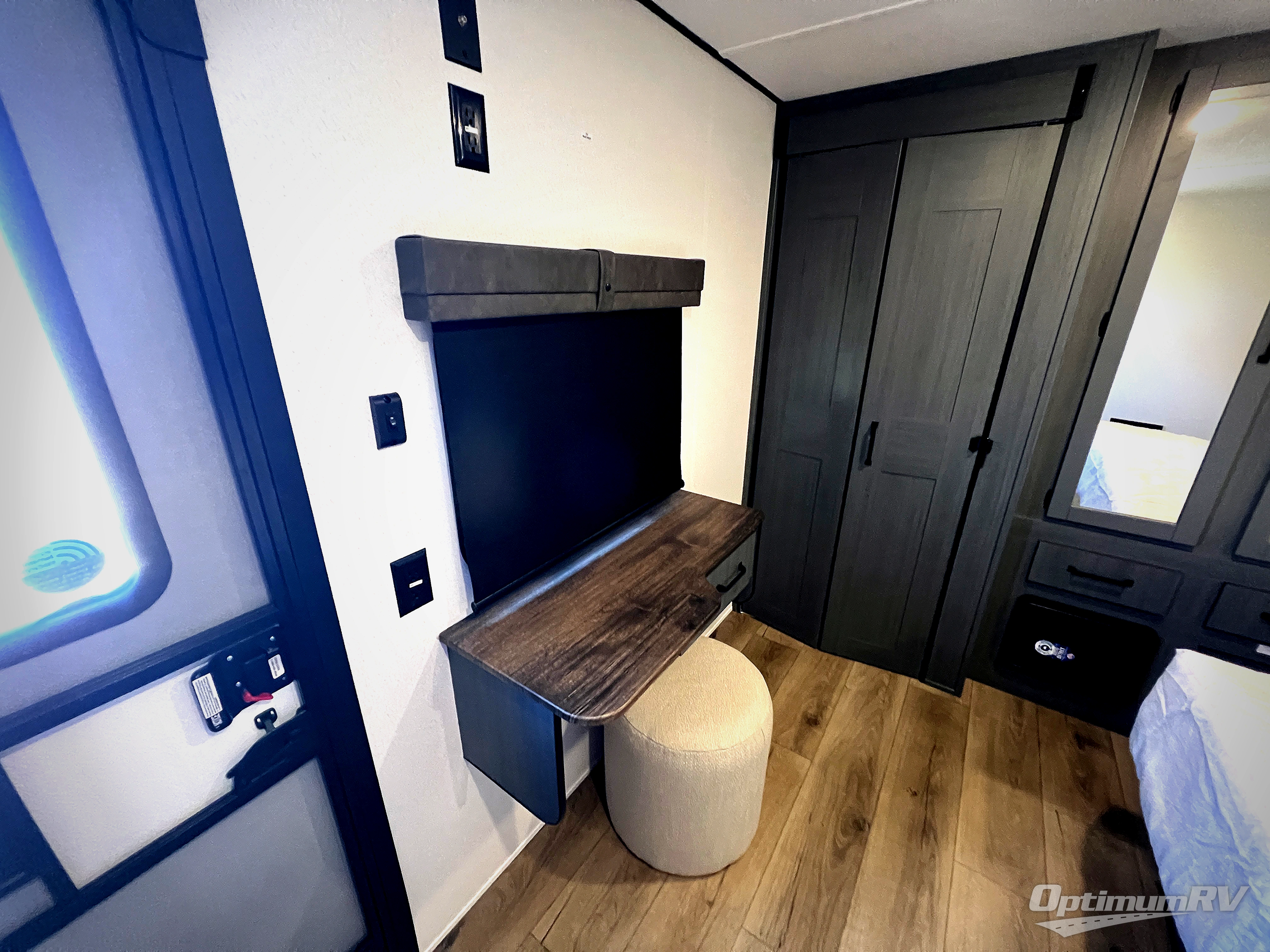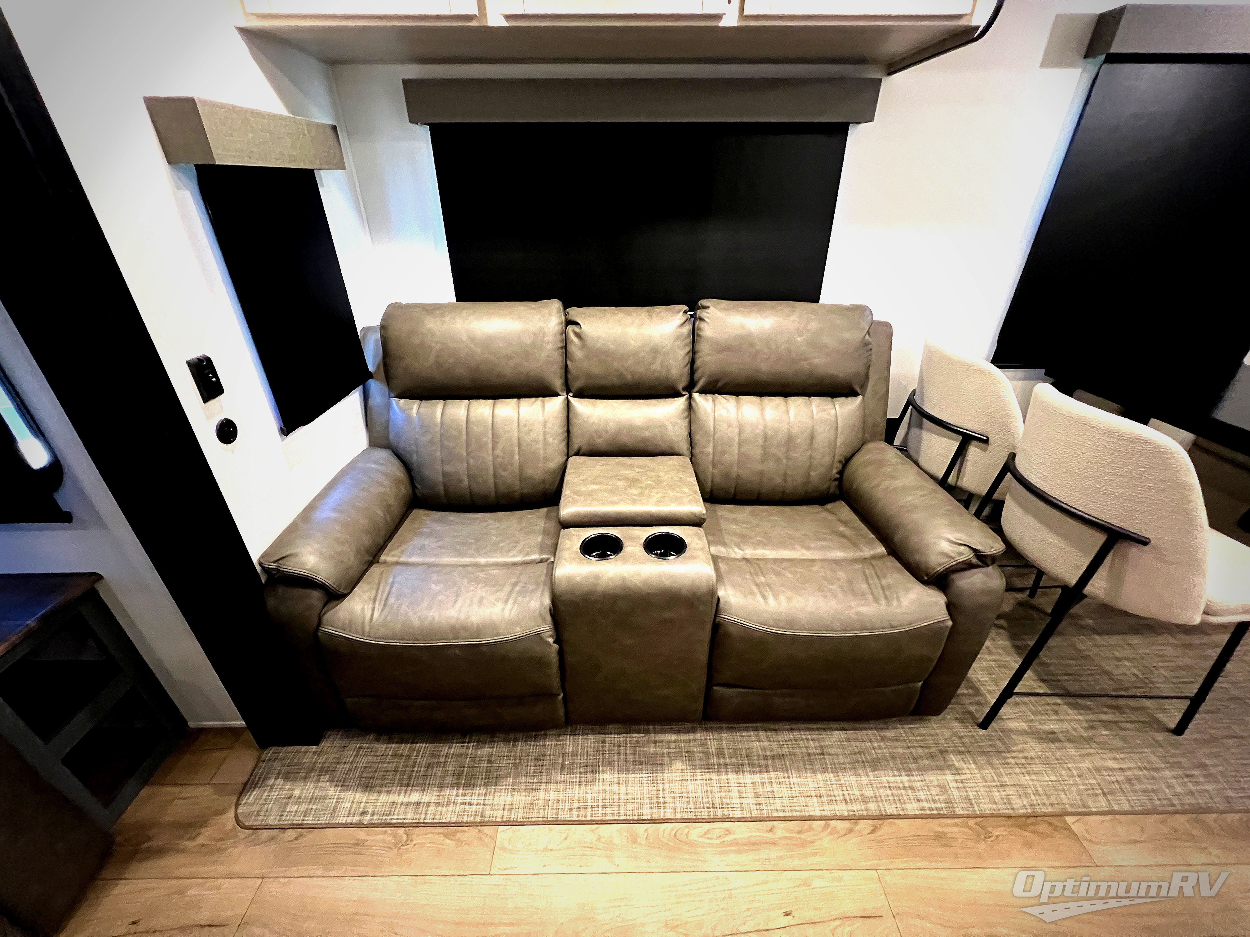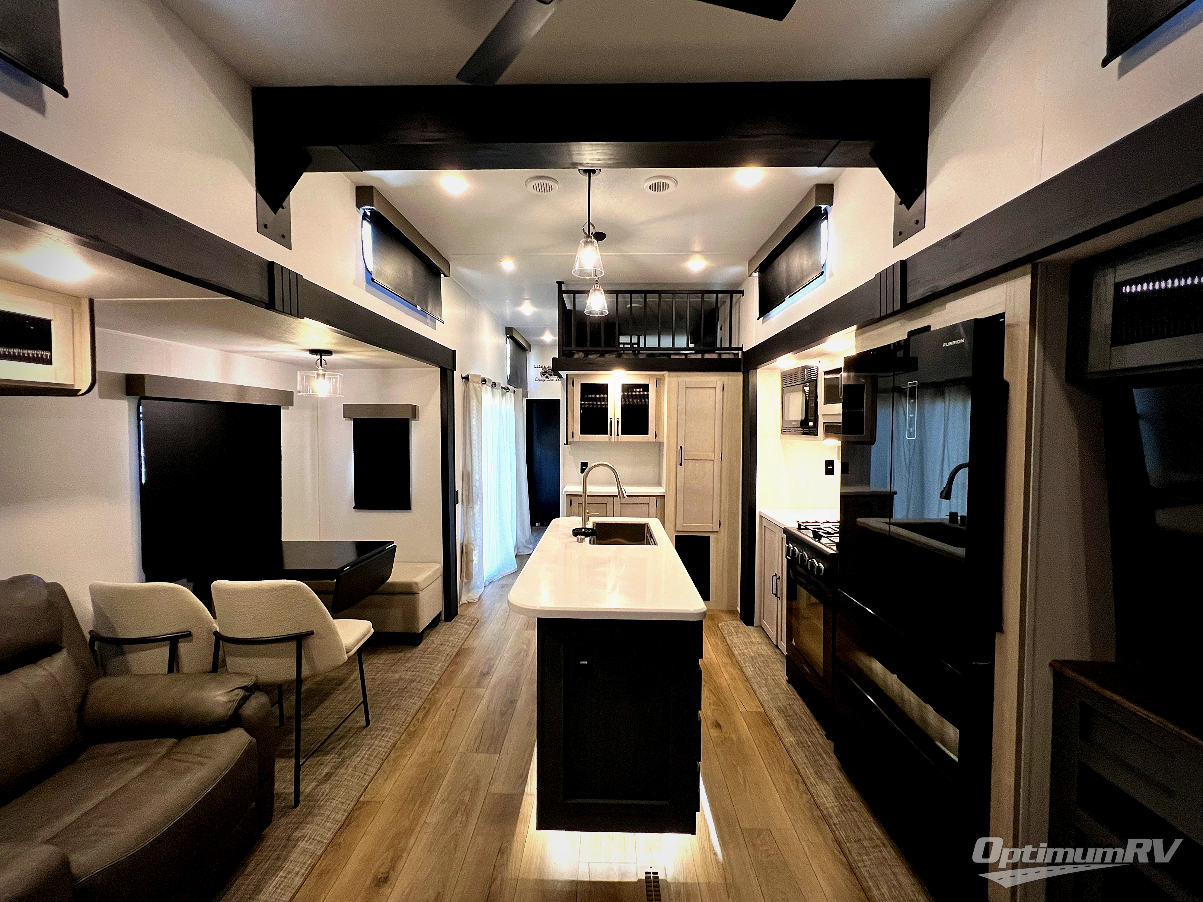 Wherever your destination may be, you can be sure to enjoy it to the fullest with this trailer in tow! With two entry doors, you can enter in through the rear private bedroom or the main living area. The bedroom includes a king bed slide out, a wardrobe/closet to keep your clothes organized, plus a closet with the option to add washer and dryer prep. Just outside this room are steps that lead to the large loft area with a 58" x 58" bunk mat and a cabinet on one side, plus two 32" x 69" bunk mats on the other. There is also a cabinet and a wardrobe/closet for plenty of storage space. Once you've headed back downstairs, you can relax on the dual recliners, front sofa, or free-standing table with a bench and two seats. And the chef of your group will love the kitchen with its residential style refrigerator and pantry, kitchen island, and four burner cooktop!