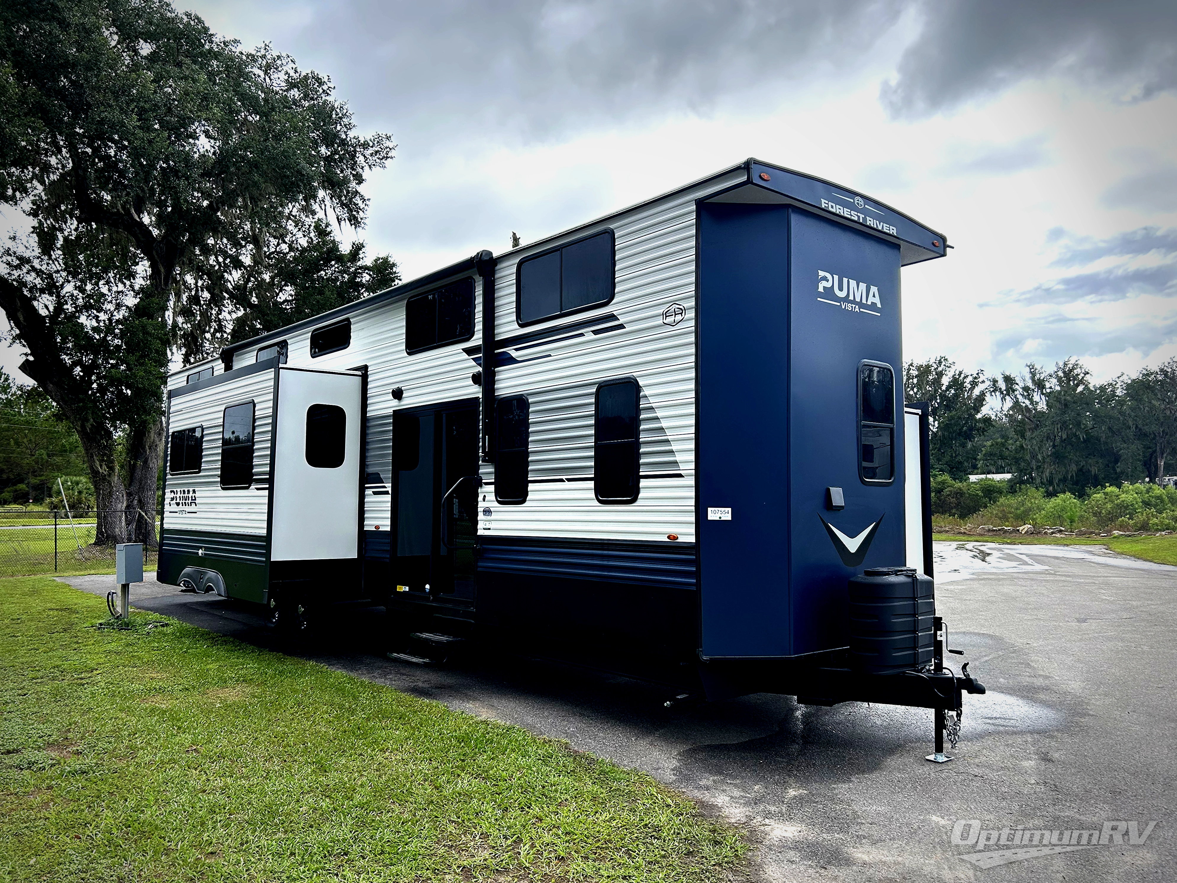 Each Puma Destination trailer by Palomino is designed to give you unforgettable getaways to the destination of your choice! The required Value Shopper Loft Package includes Congoleum designer linoleum, night roller shades, LED lighting, and a 24" stainless steel oven with a four burner stove so you can make meals just like you would at home. The tankless water heater is another feature you won't want to camp without, and there is WiFi prep, solar prep, plus optional washer and dryer prep for the option to further customize your trailer. An outside shower is included with the required Loft Package, along with two exterior speakers, solid surface countertops, four stabilizer jacks, and more!