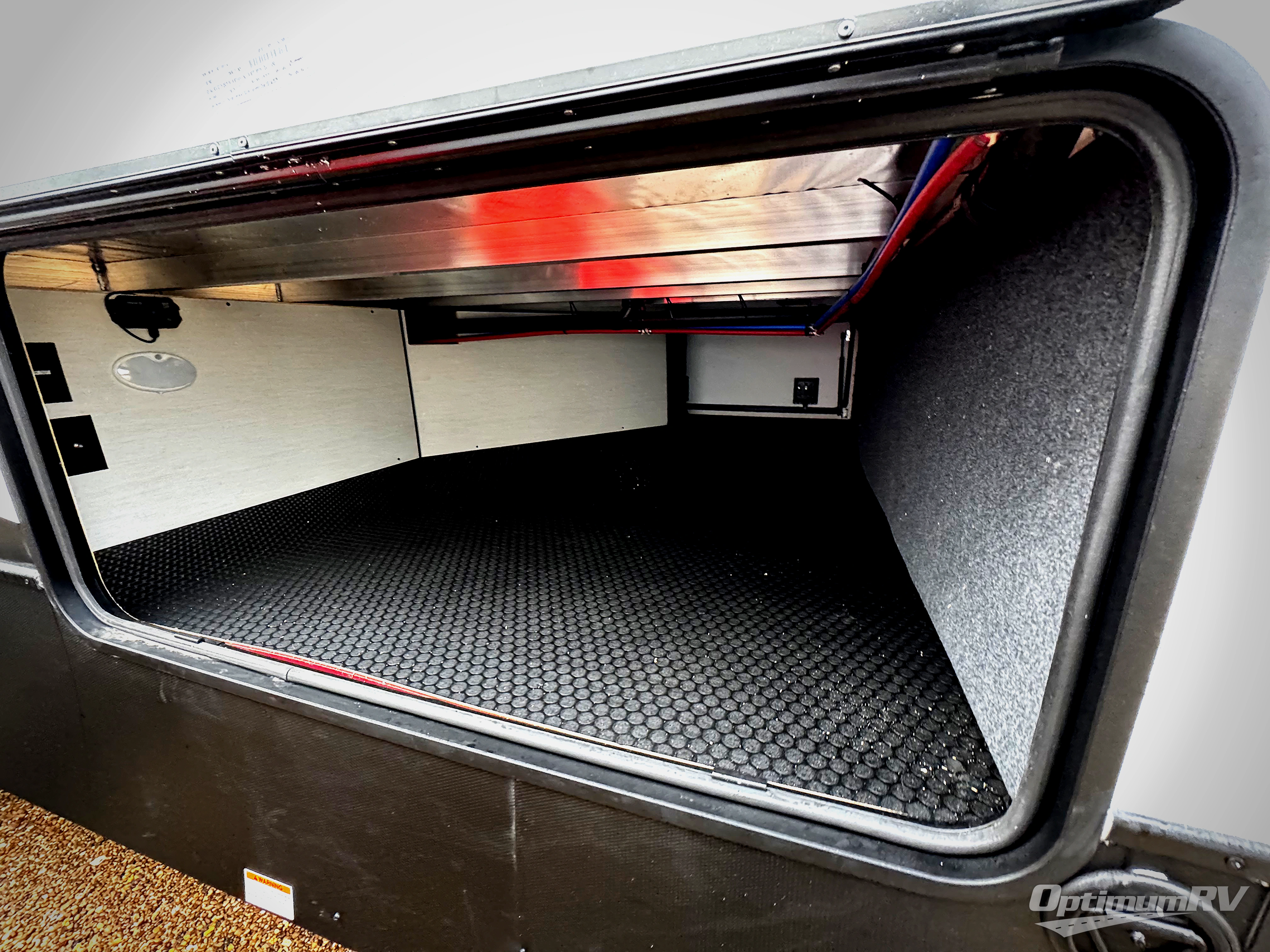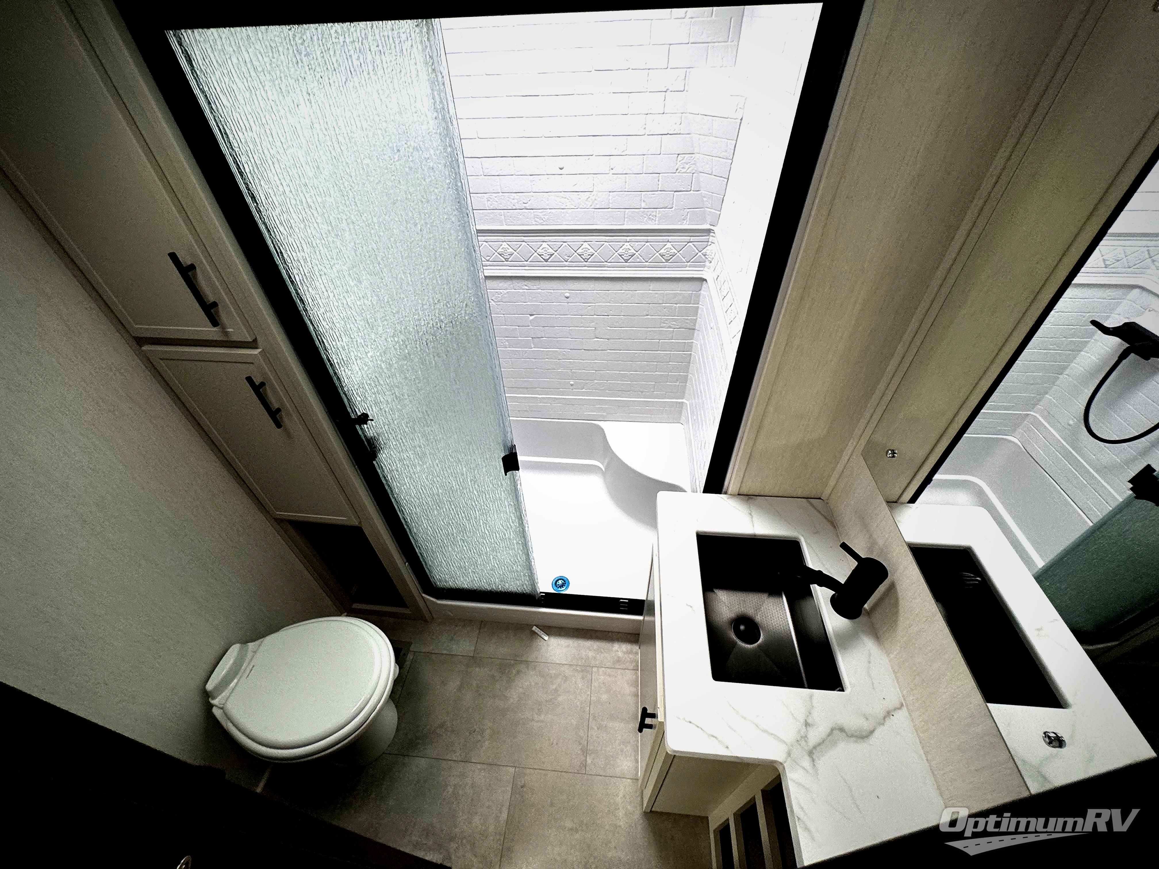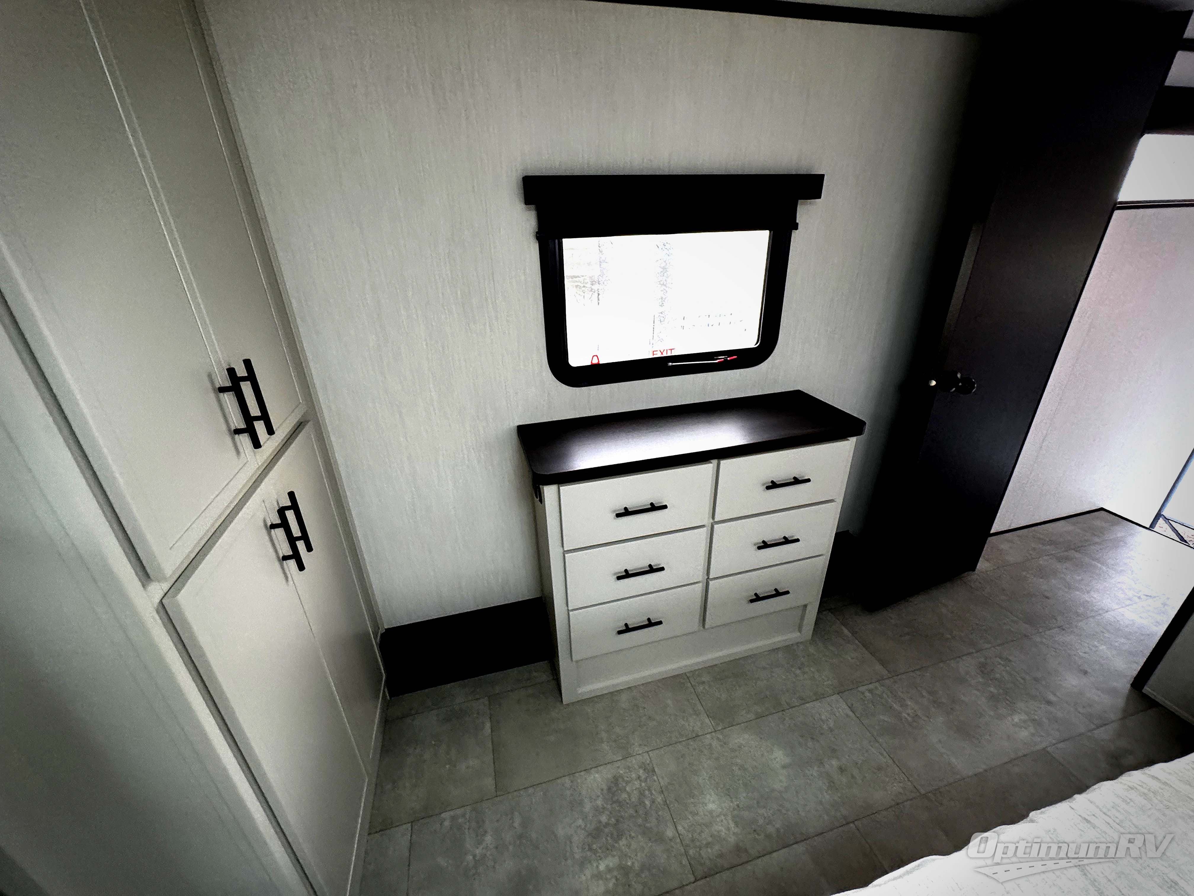 If you enjoy camping with family or friends, this fifth wheel is sure to meet all of your needs! The front bedroom includes a King bed slide out for more space and comfort, plus a front wardrobe/washer and dryer prep. And the full bath is right next door for easy nighttime use. The living room is made spacious thanks to the dual opposing slides, and you'll find a sectional sleeper sofa here, as well as a hybrid desk/dinette, perfect for a quick meal and to catch up with some emails. And don't overlook the rear kitchen with ample counter space, a four burner range, an accessory sink and a French door 12V refrigerator!