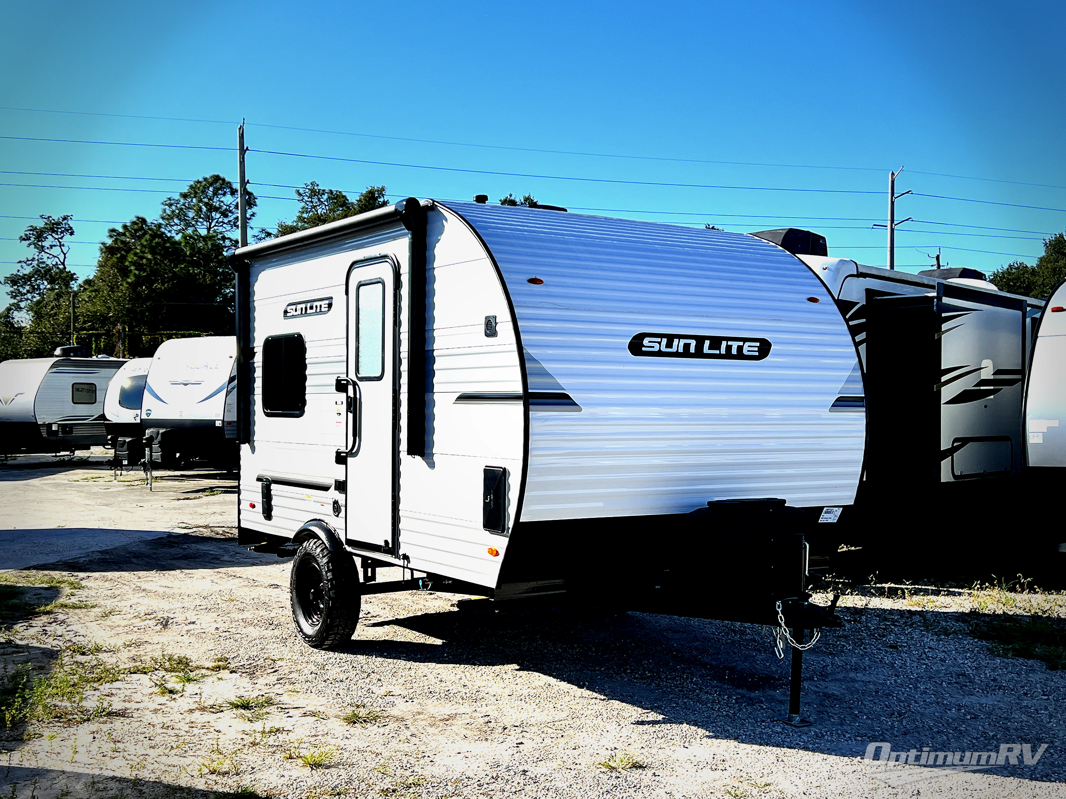 You can trust the build and enjoy your experience with any one of these Sunset Park RV Sun Lite travel trailers or toy haulers! Their aerodynamic profile is not only easy to haul, but also saves on fuel. They are built to withstand years of traveling even though they are lightweight with a diamond plate rock guard, a one piece PVC roof membrane, Dexter Spring-Leaf axles, and tinted safety glass windows. Some comfort standards you are sure to enjoy are the two-burner stove top range with hood, light and fan, plus the refrigerator and microwave, and an outside shower to help keep the dirt outdoors where it belongs.