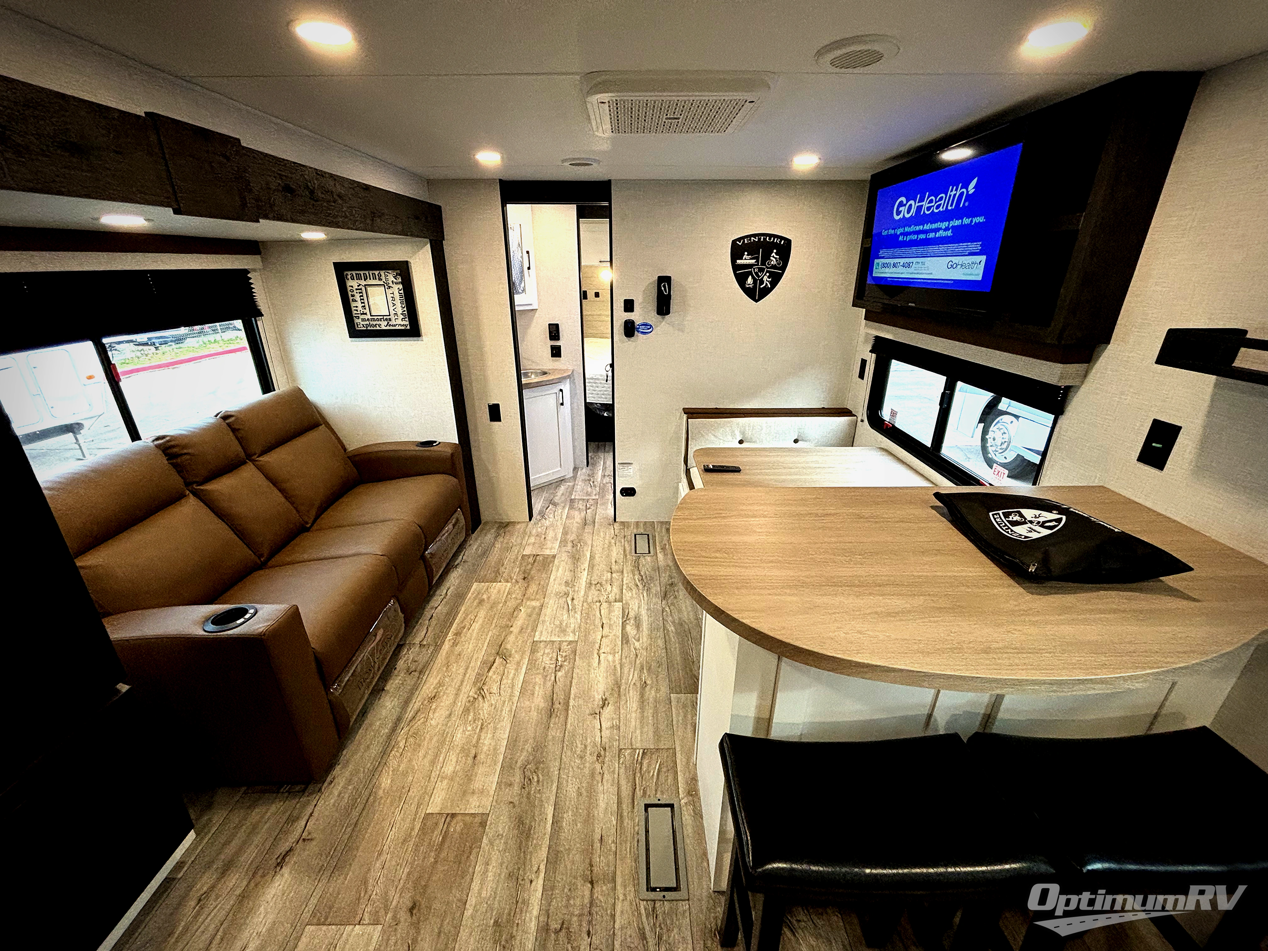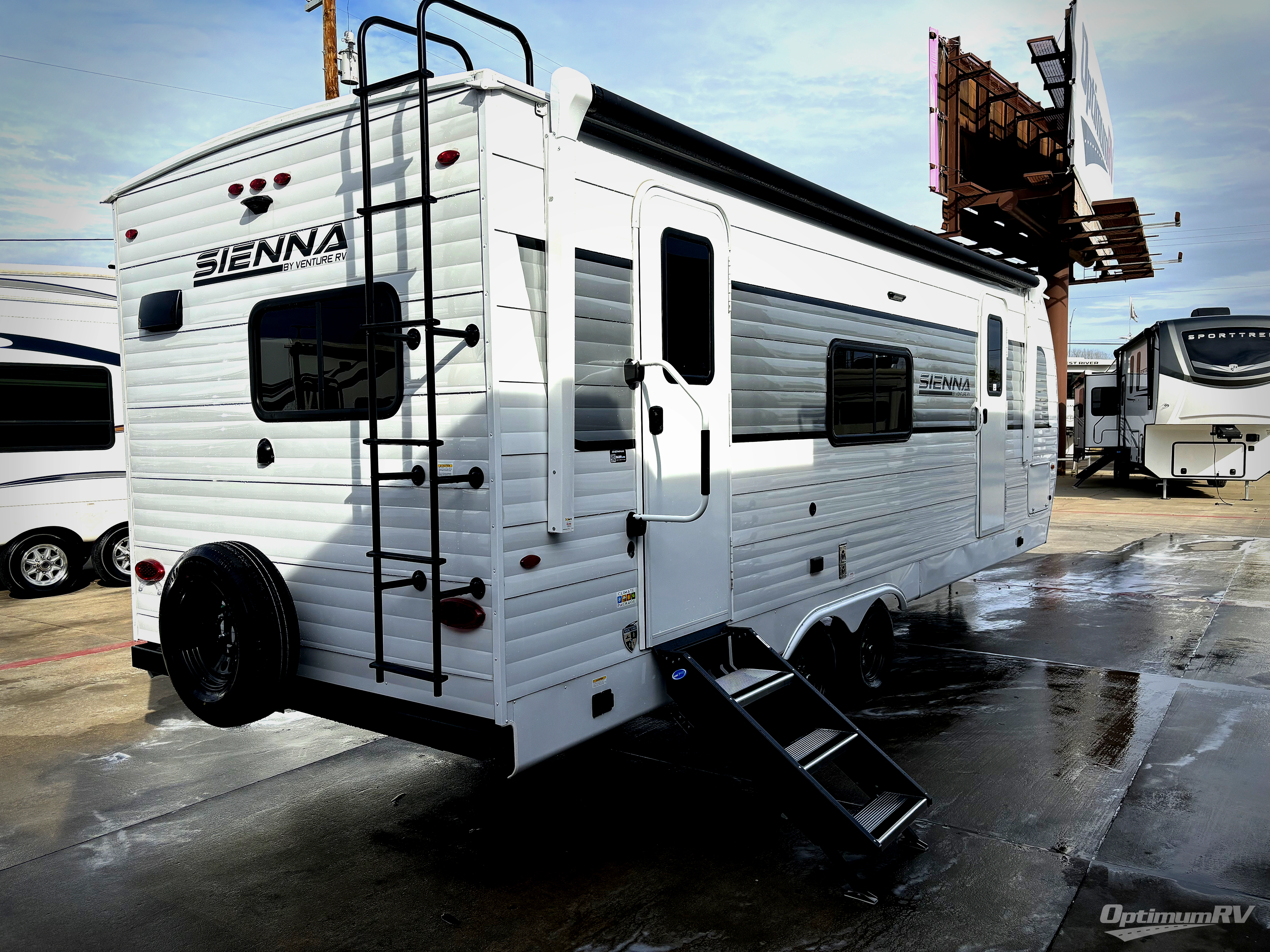 With any Sienna travel trailer by Venture RV, you will enjoy a lightweight unit, convenient amenities, and a durable construction that includes a BAL NXG-bolted frame. There is also a heated and enclosed one-piece underbelly, residential fiberglass insulation, and a reflective PVC roof membrane within the Weather-Shield Package to help extend your camping season. Outside, the BAL 5.0 power stabilizer jacks and power tongue jack will have you set up in no-time, and the Venture RV bottle opener/dog tie down will make it easy to bring your furry friends along. Head inside to enjoy the modern farmhouse design, along with Beauflor throughout with no carpet, custom backsplash, large underbed storage, and a bath skylight to name a few comforts!