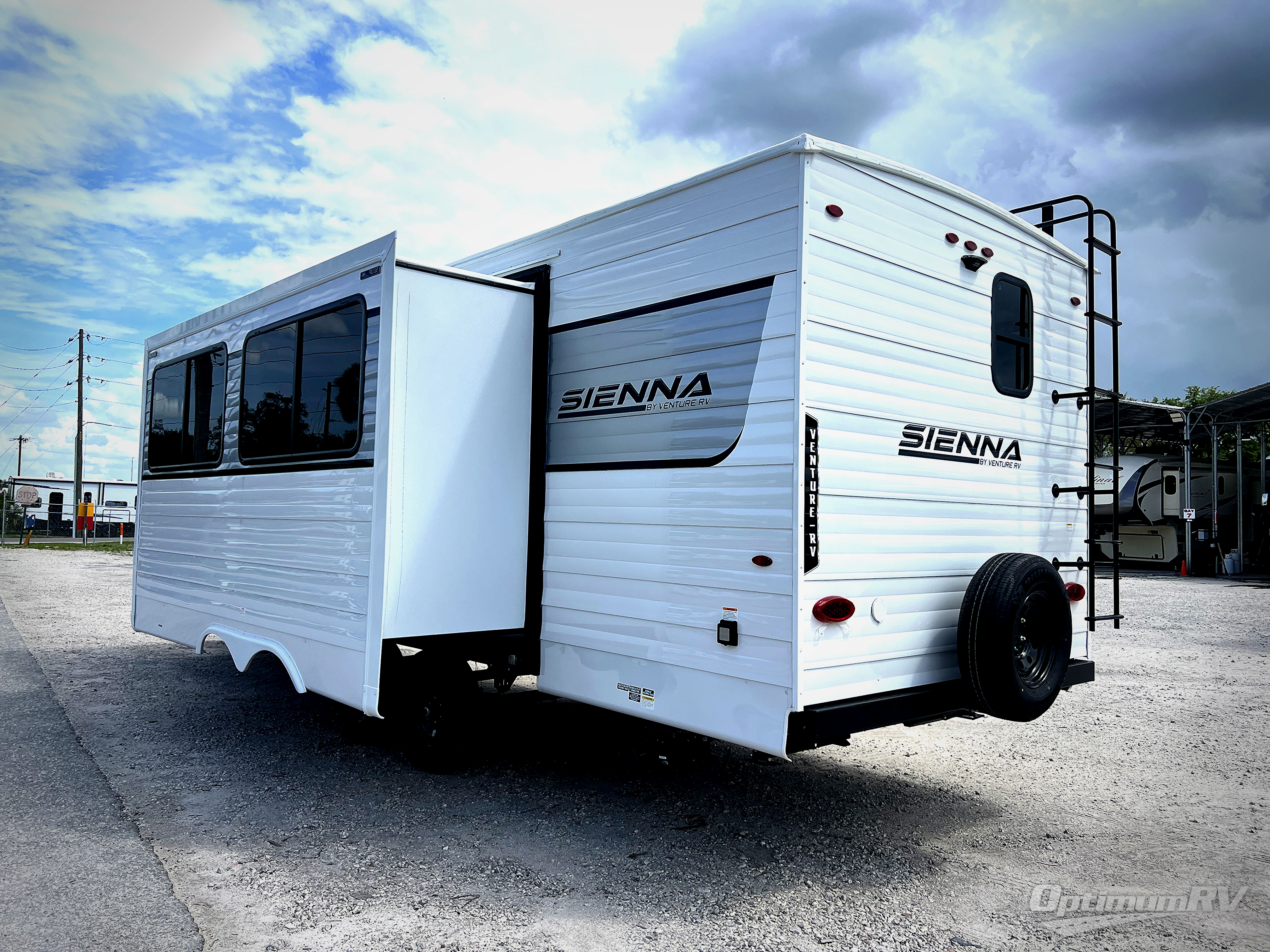 With any Sienna travel trailer by Venture RV, you will enjoy a lightweight unit, convenient amenities, and a durable construction that includes a BAL NXG-bolted frame. There is also a heated and enclosed one-piece underbelly, residential fiberglass insulation, and a reflective PVC roof membrane within the Weather-Shield Package to help extend your camping season. Outside, the BAL 5.0 power stabilizer jacks and power tongue jack will have you set up in no-time, and the Venture RV bottle opener/dog tie down will make it easy to bring your furry friends along. Head inside to enjoy the modern farmhouse design, along with Beauflor throughout with no carpet, custom backsplash, large underbed storage, and a bath skylight to name a few comforts!