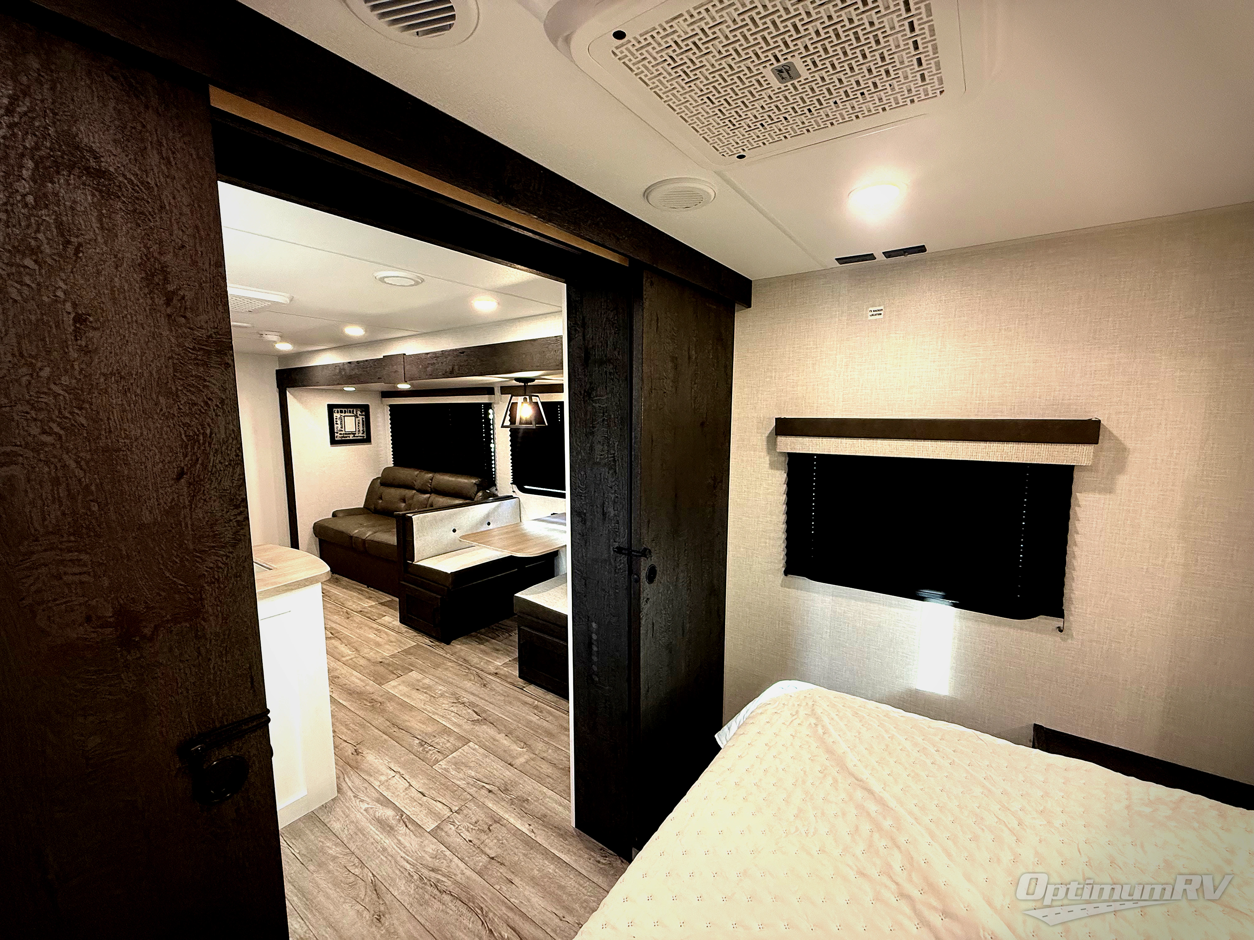 You'll love every minute spent in this spacious travel trailer with a rear private bunkhouse. There are two sets of bunk beds here, and the bottom bunks convert into a king-size bed, giving you options how you want to set up this space. The front private bedroom includes a Sleep Tight queen bed, dual wardrobes, and sliding doors that will help save on space. Your crew can relax on the 70" sofa or Sit N' Slide table within the large slide out and watch a movie with the Smart TV. Since there is an outdoor griddle and refrigerator plus a 20' power awning, you may just find yourselves outside most days!