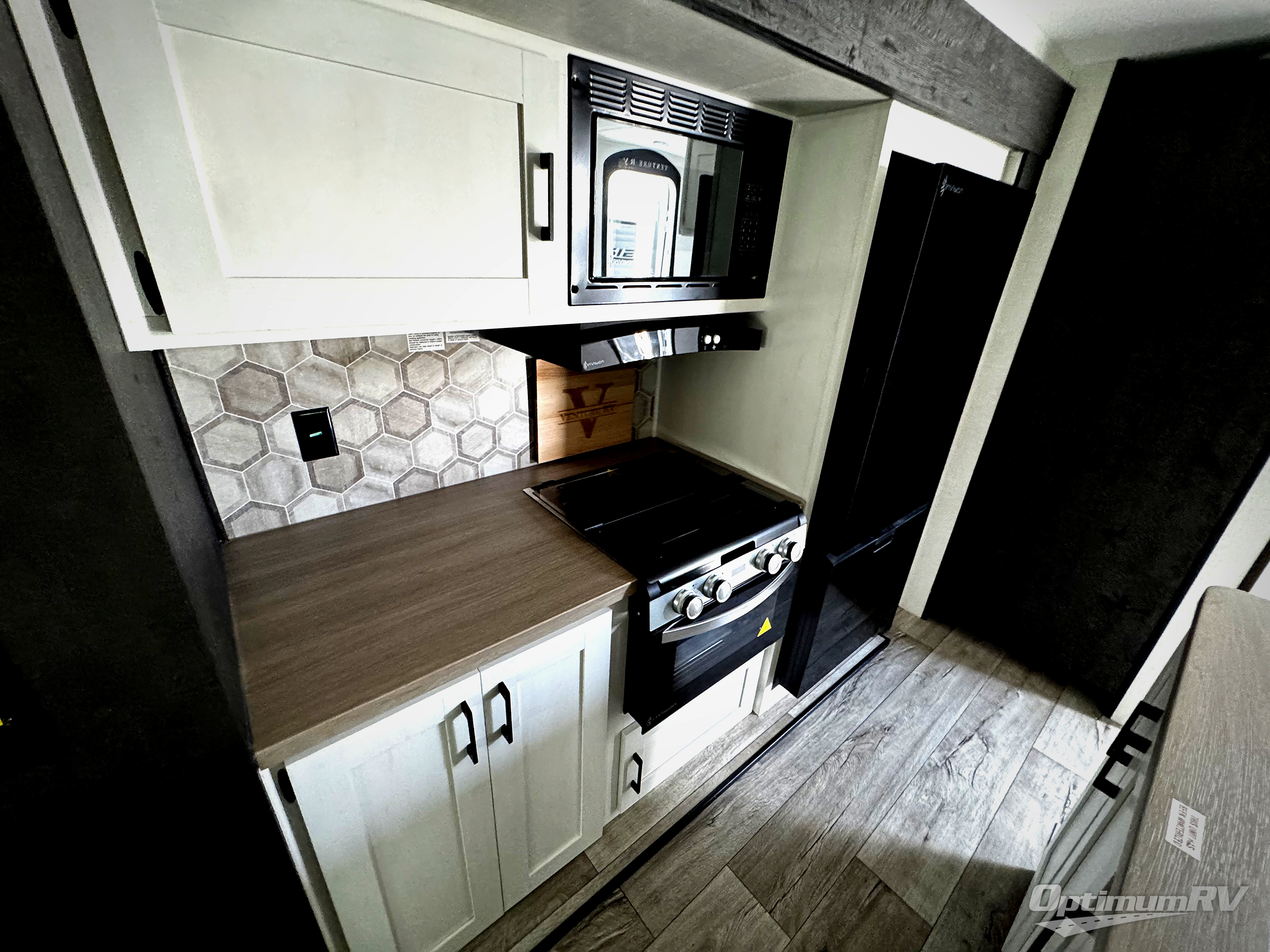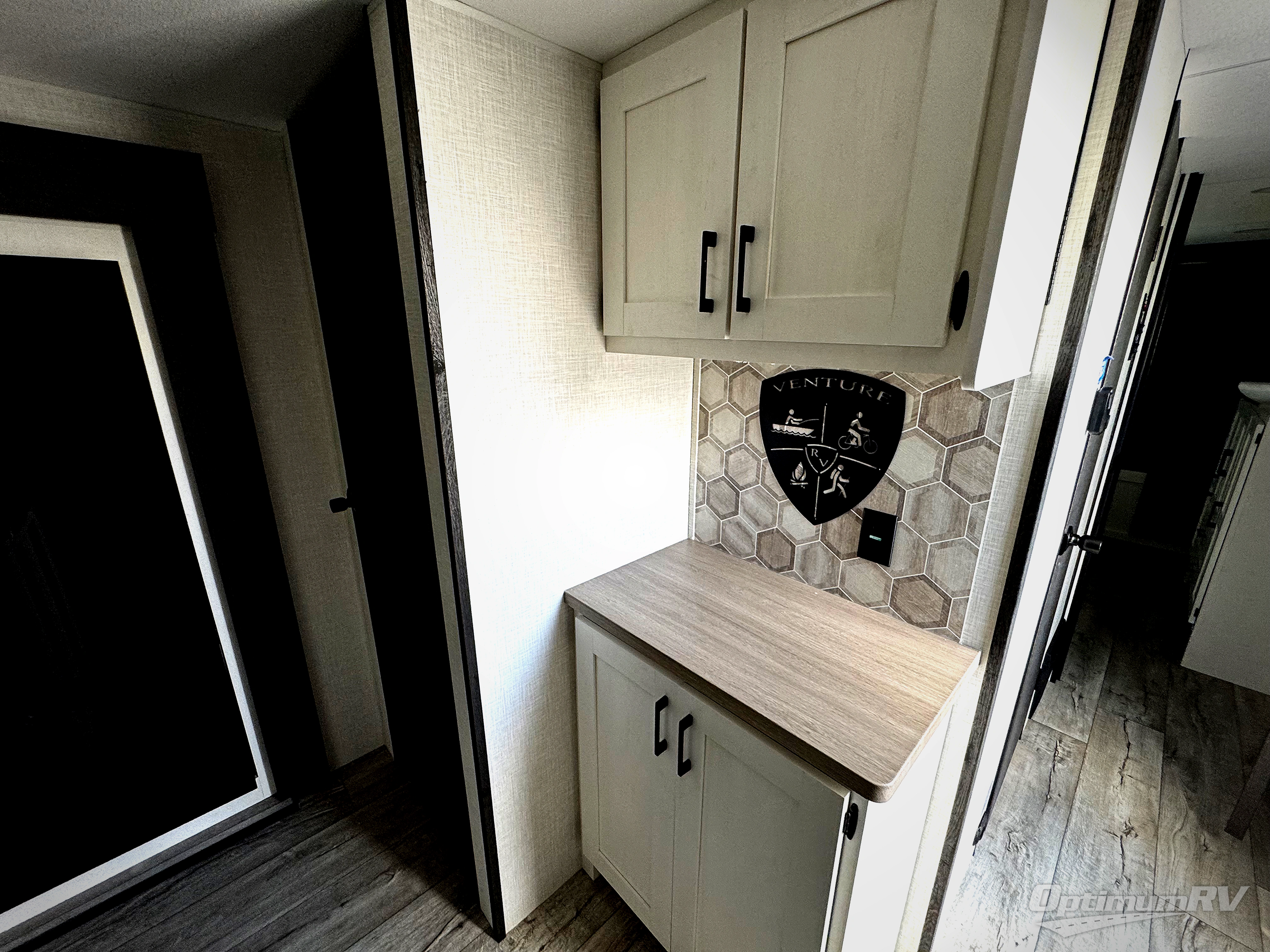 With any Sienna travel trailer by Venture RV, you will enjoy a lightweight unit, convenient amenities, and a durable construction that includes a BAL NXG-bolted frame. There is also a heated and enclosed one-piece underbelly, residential fiberglass insulation, and a reflective PVC roof membrane within the Weather-Shield Package to help extend your camping season. Outside, the BAL 5.0 power stabilizer jacks and power tongue jack will have you set up in no-time, and the Venture RV bottle opener/dog tie down will make it easy to bring your furry friends along. Head inside to enjoy the modern farmhouse design, along with Beauflor throughout with no carpet, custom backsplash, large underbed storage, and a bath skylight to name a few comforts!