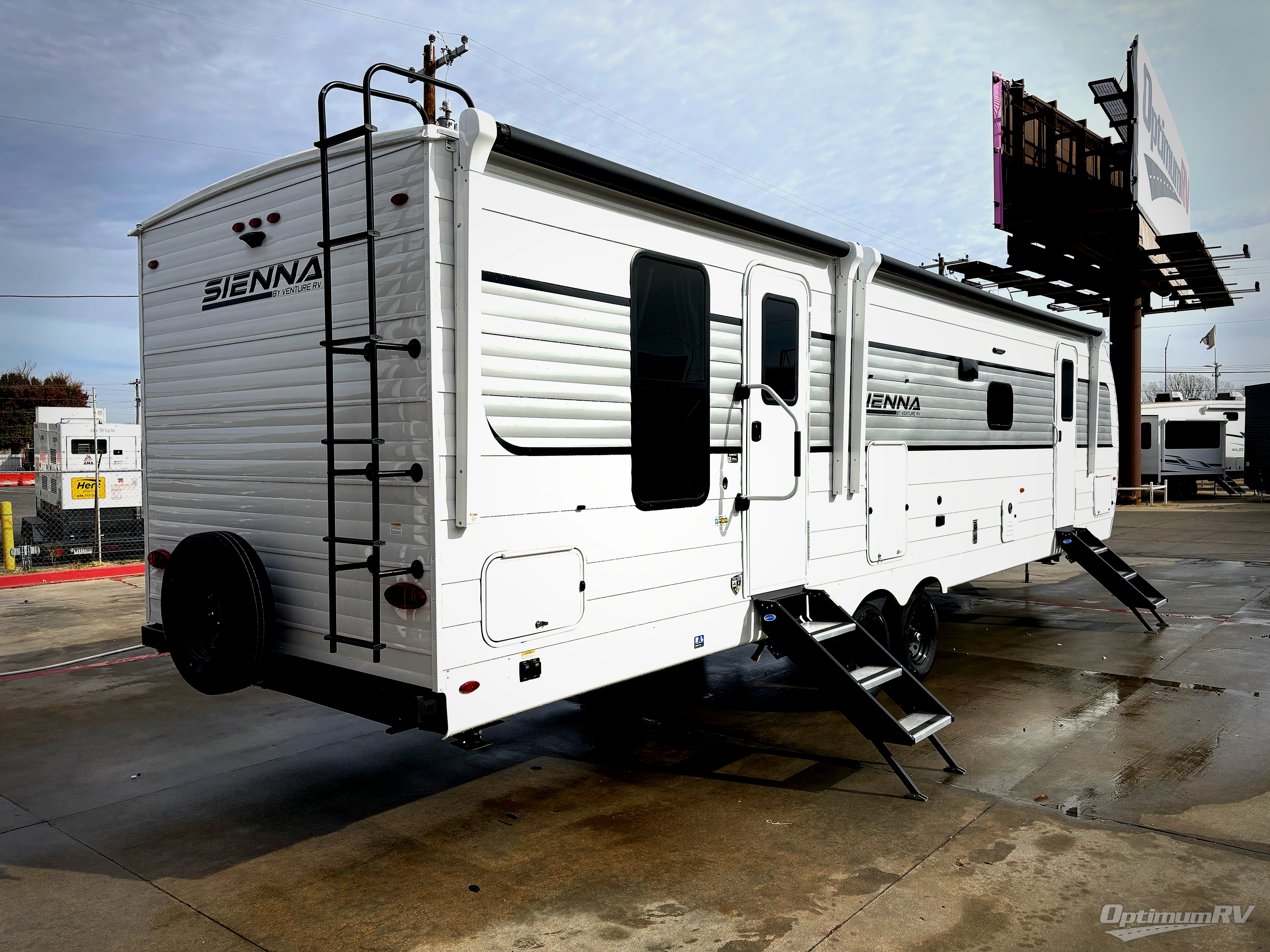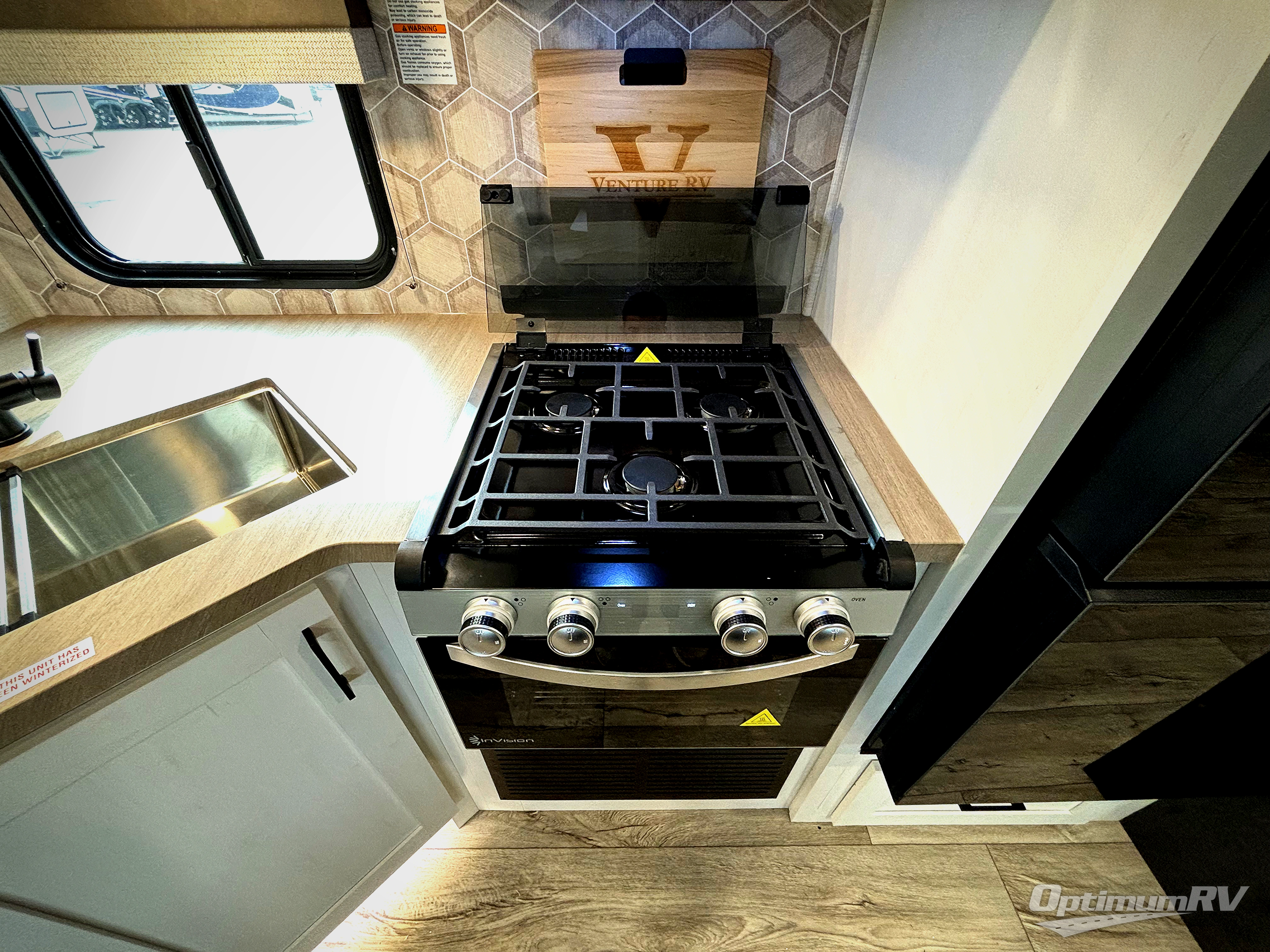 With any Sienna travel trailer by Venture RV, you will enjoy a lightweight unit, convenient amenities, and a durable construction that includes a BAL NXG-bolted frame. There is also a heated and enclosed one-piece underbelly, residential fiberglass insulation, and a reflective PVC roof membrane within the Weather-Shield Package to help extend your camping season. Outside, the BAL 5.0 power stabilizer jacks and power tongue jack will have you set up in no-time, and the Venture RV bottle opener/dog tie down will make it easy to bring your furry friends along. Head inside to enjoy the modern farmhouse design, along with Beauflor throughout with no carpet, custom backsplash, large underbed storage, and a bath skylight to name a few comforts!
