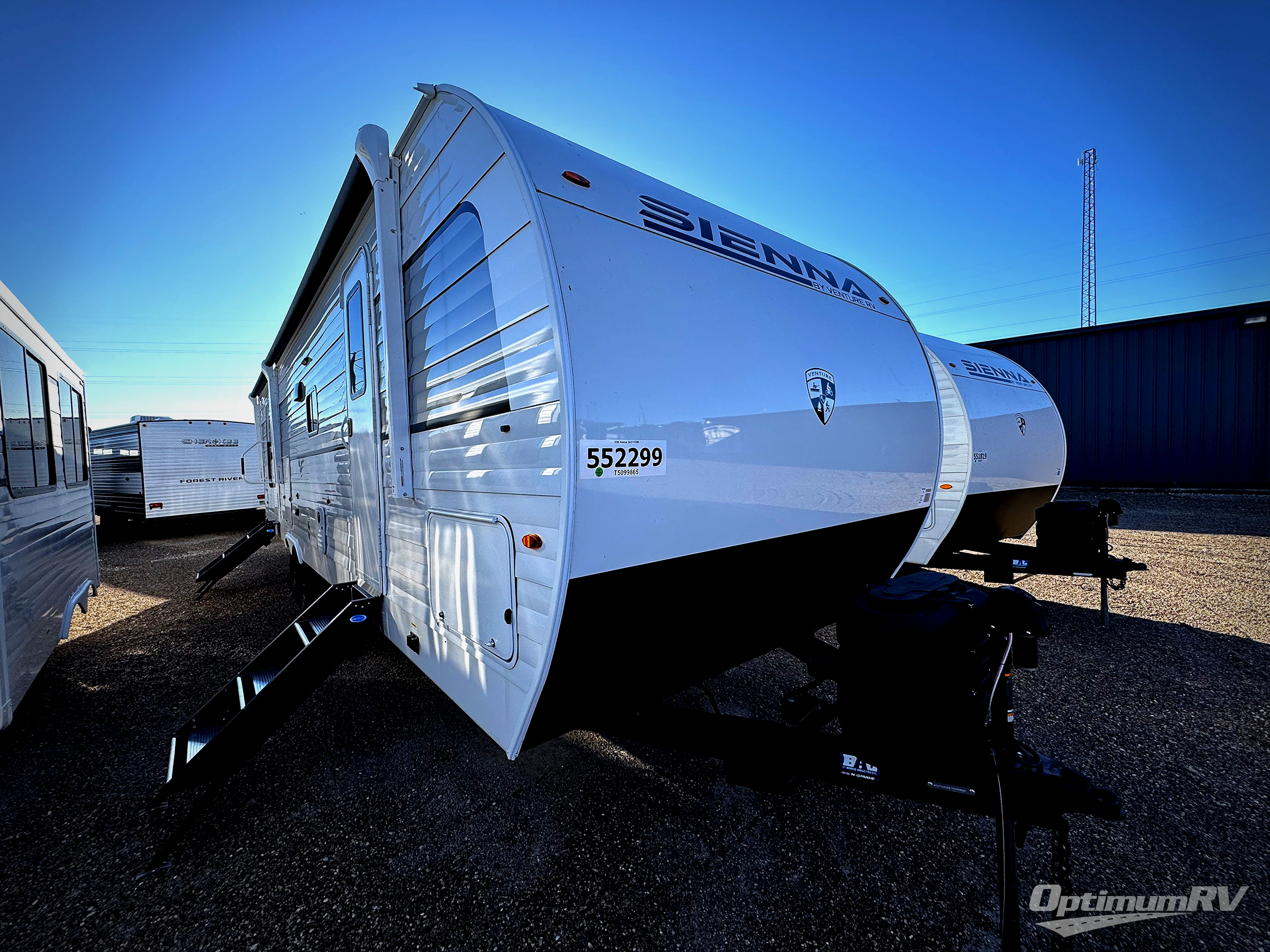 With any Sienna travel trailer by Venture RV, you will enjoy a lightweight unit, convenient amenities, and a durable construction that includes a BAL NXG-bolted frame. There is also a heated and enclosed one-piece underbelly, residential fiberglass insulation, and a reflective PVC roof membrane within the Weather-Shield Package to help extend your camping season. Outside, the BAL 5.0 power stabilizer jacks and power tongue jack will have you set up in no-time, and the Venture RV bottle opener/dog tie down will make it easy to bring your furry friends along. Head inside to enjoy the modern farmhouse design, along with Beauflor throughout with no carpet, custom backsplash, large underbed storage, and a bath skylight to name a few comforts!