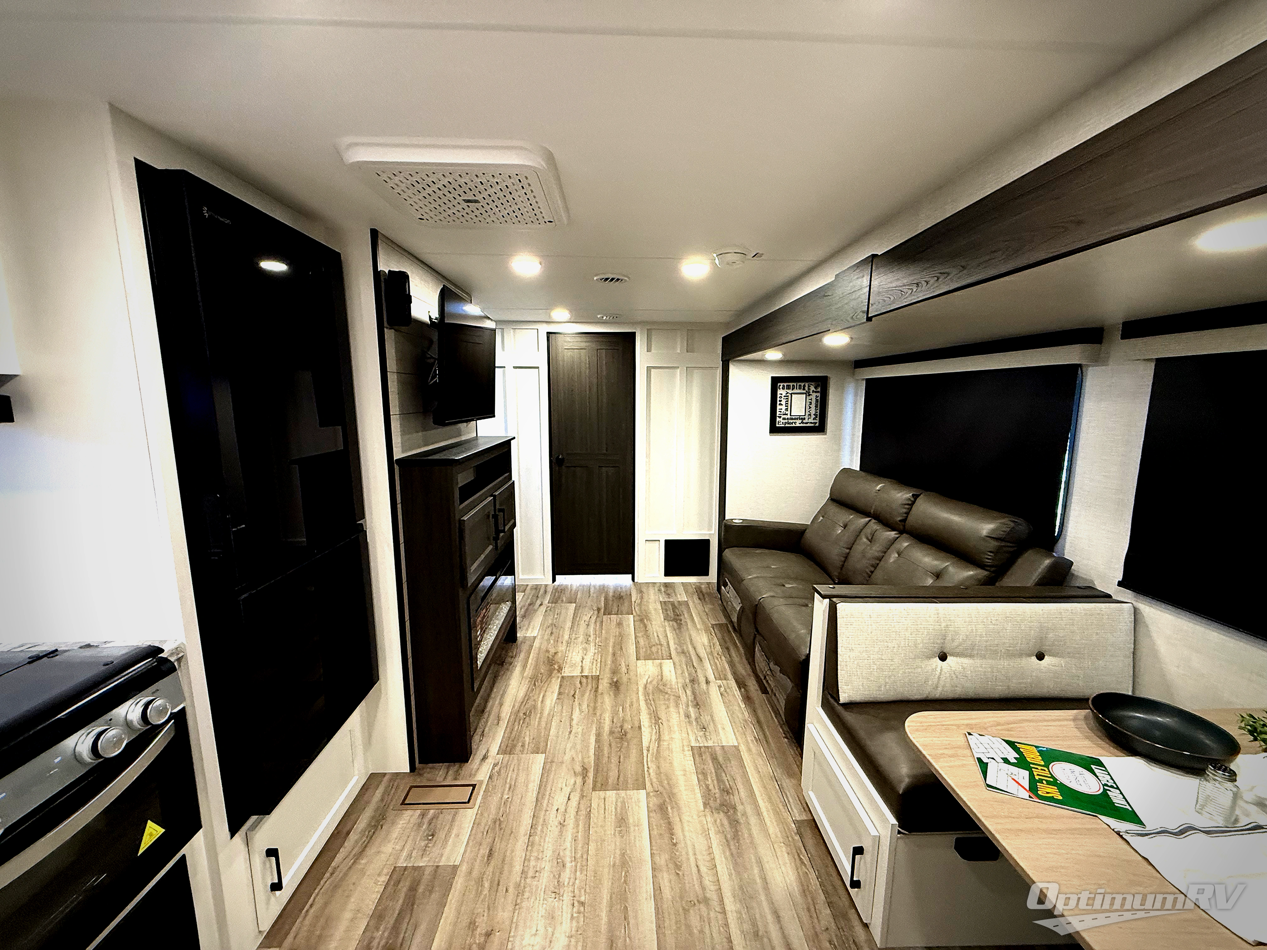 You're going to feel right at home in this Stratus single slide unit! There is not only a fully equipped kitchen with a three burner cooktop, but also an outside campfire café with a griddle, refrigerator, sink, and even an exterior 40" TV for your entertainment. As you enter the unit, you will notice to the right a walk-in pantry with coat hooks, and to the left is the full rear bathroom with a 30" x 36" shower, a three door linen closet, and a cabinet prepped to add an optional washer and dryer. If mother nature rains on your parade then relax inside on either the 70" sofa or the sit n' slide table dinette across from the entertainment center.