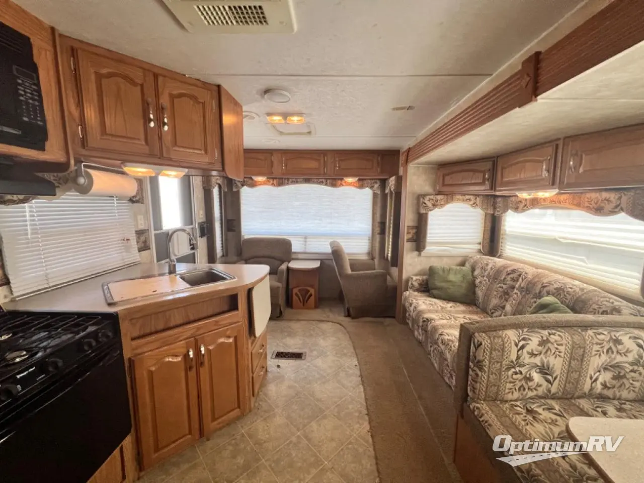 Single Slide, Rear Living Area w/Easy Chair, Opt. 2nd Easy Chair, Table, Sofa, Booth Dinette, Refrigerator, 3 Burner Range, Double Kitchen Sink, Flip-top Counter, Slide-out Pantry, Ent. Center, Wardrobe, Front Queen Bed w/Closets & Laundry Chute, Pass-Through Storage, Overhead Cabinets, and More!
