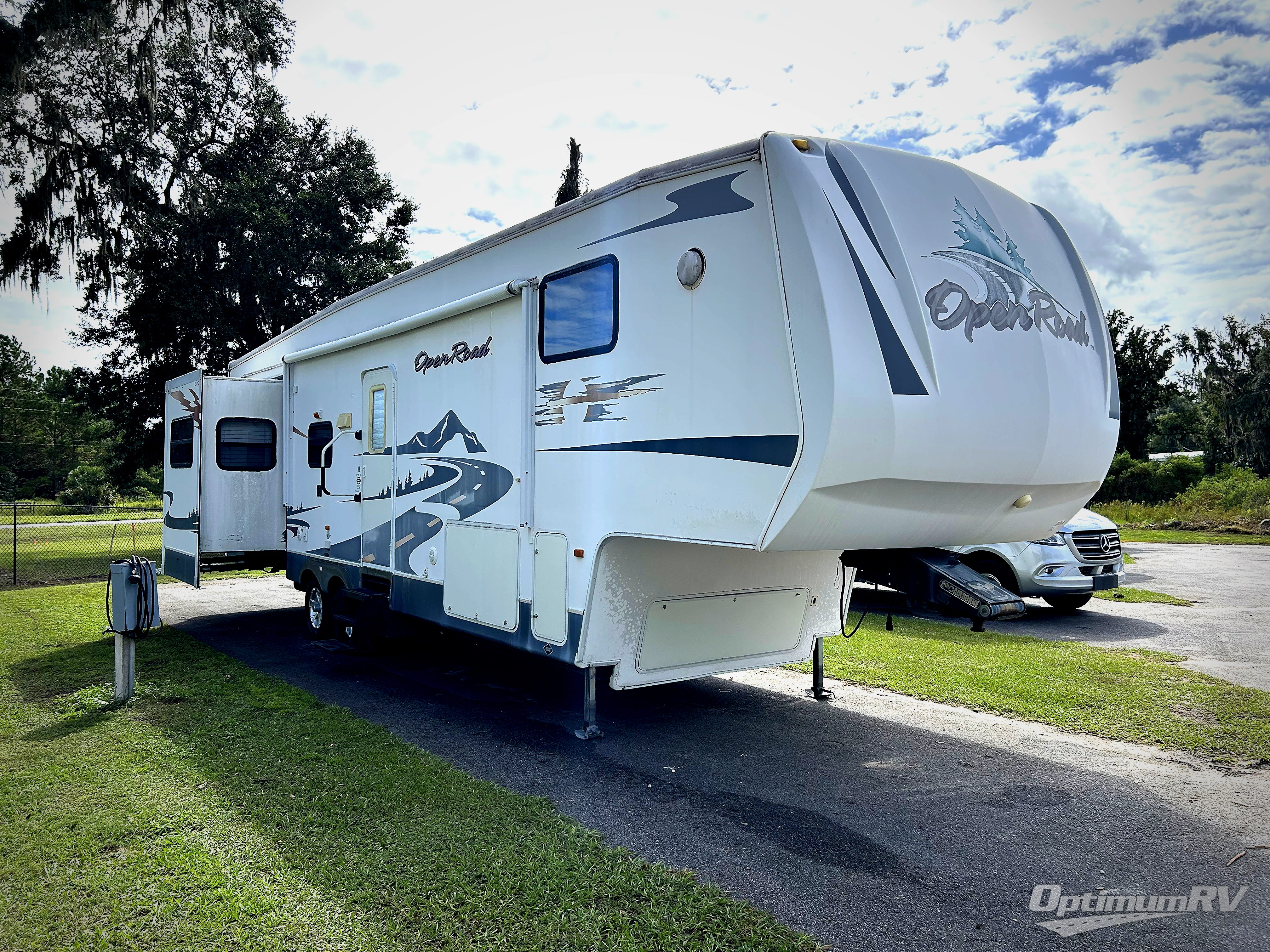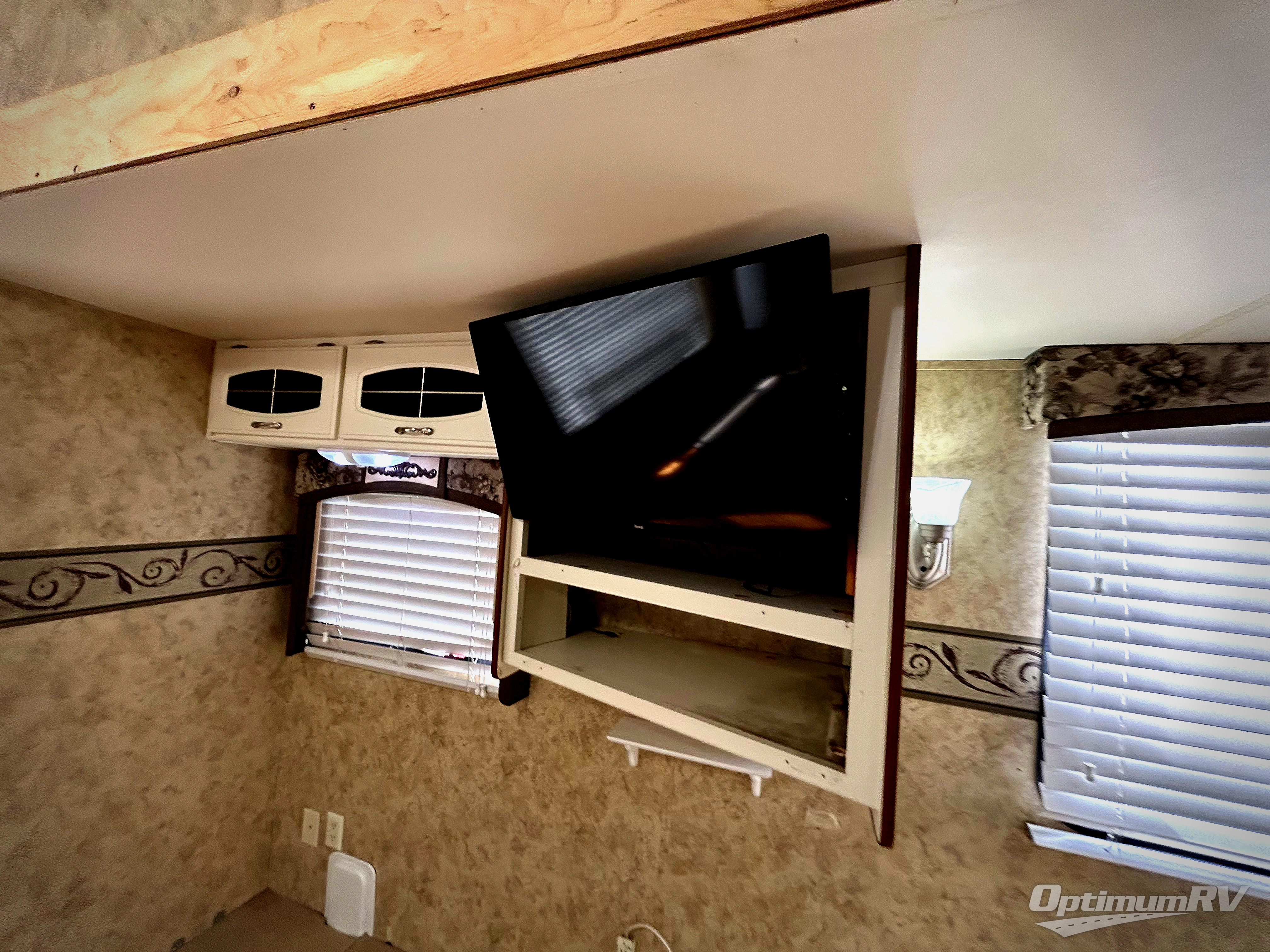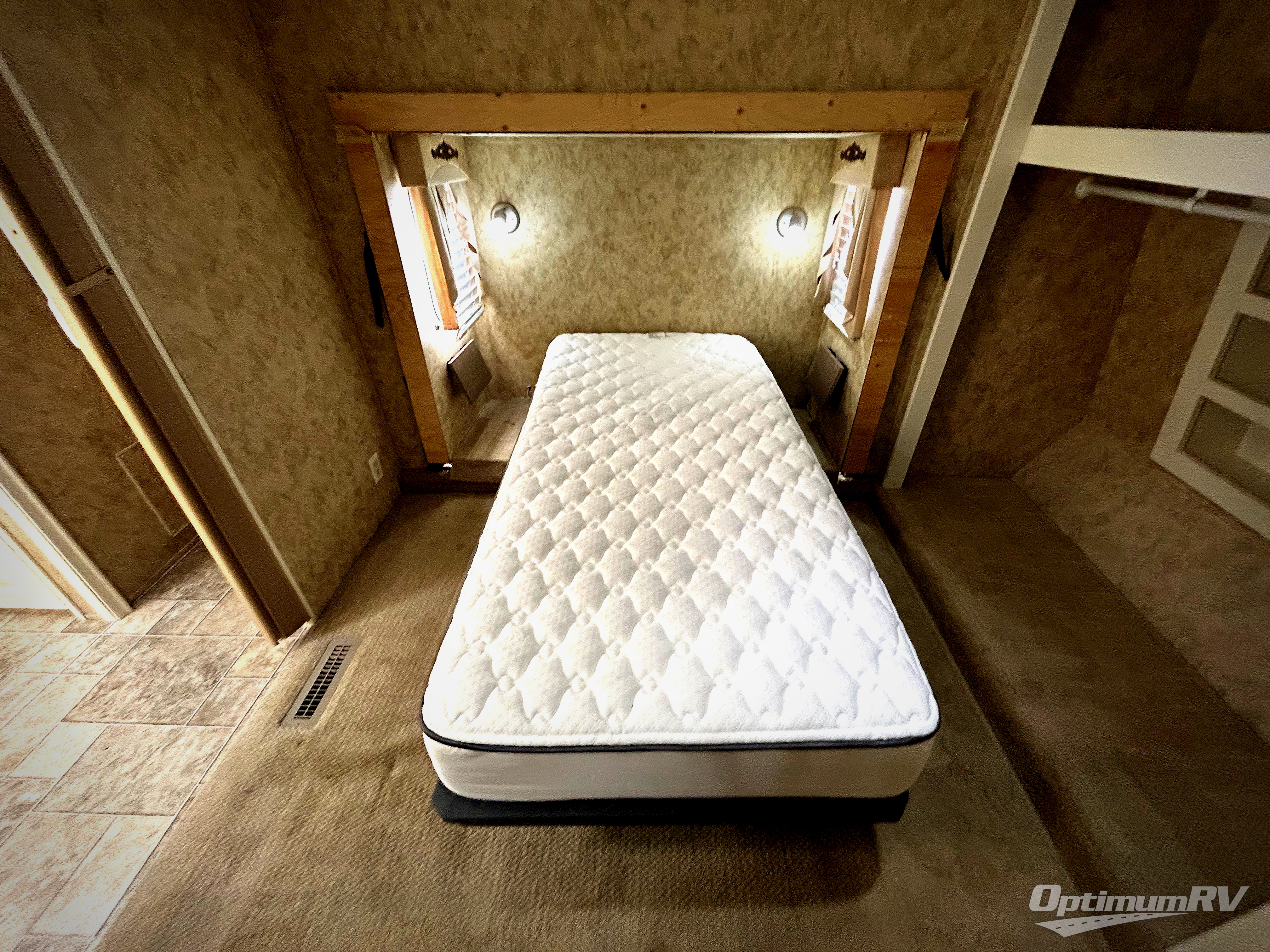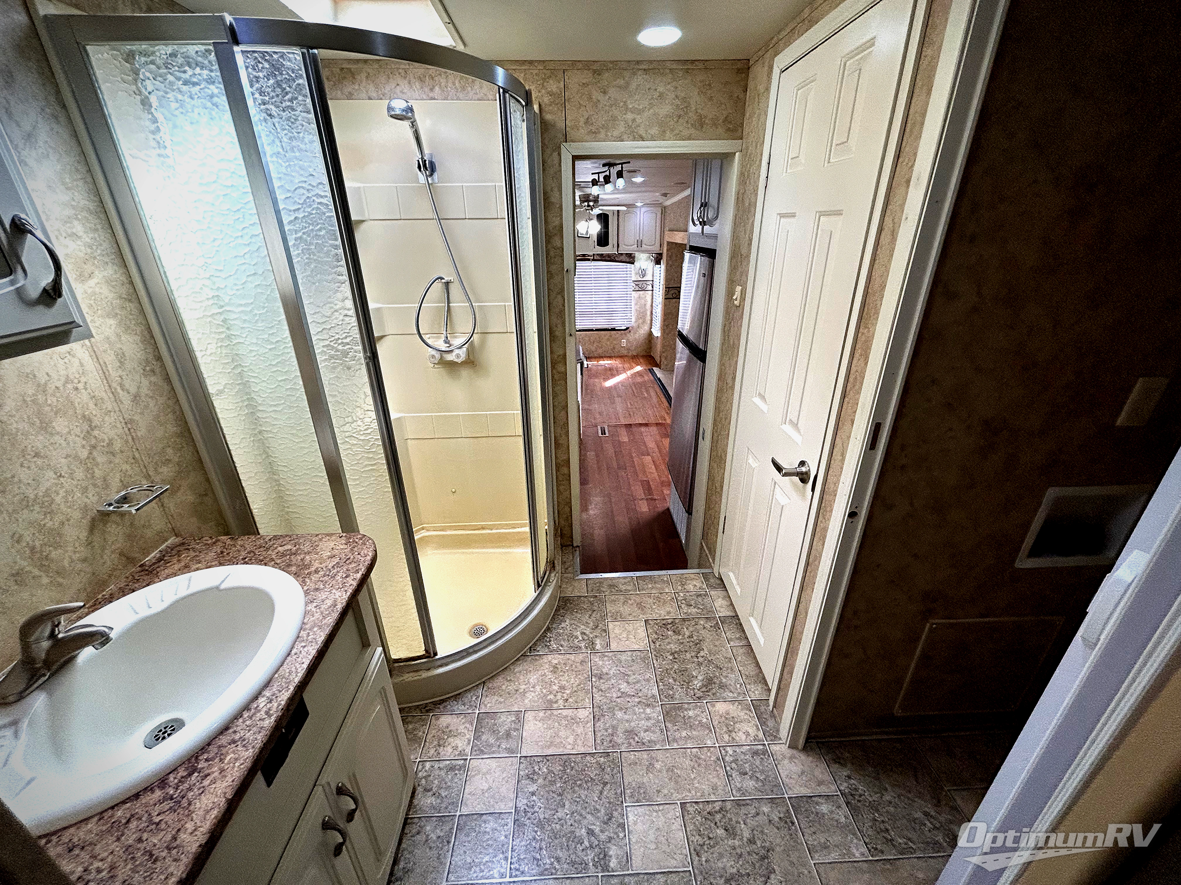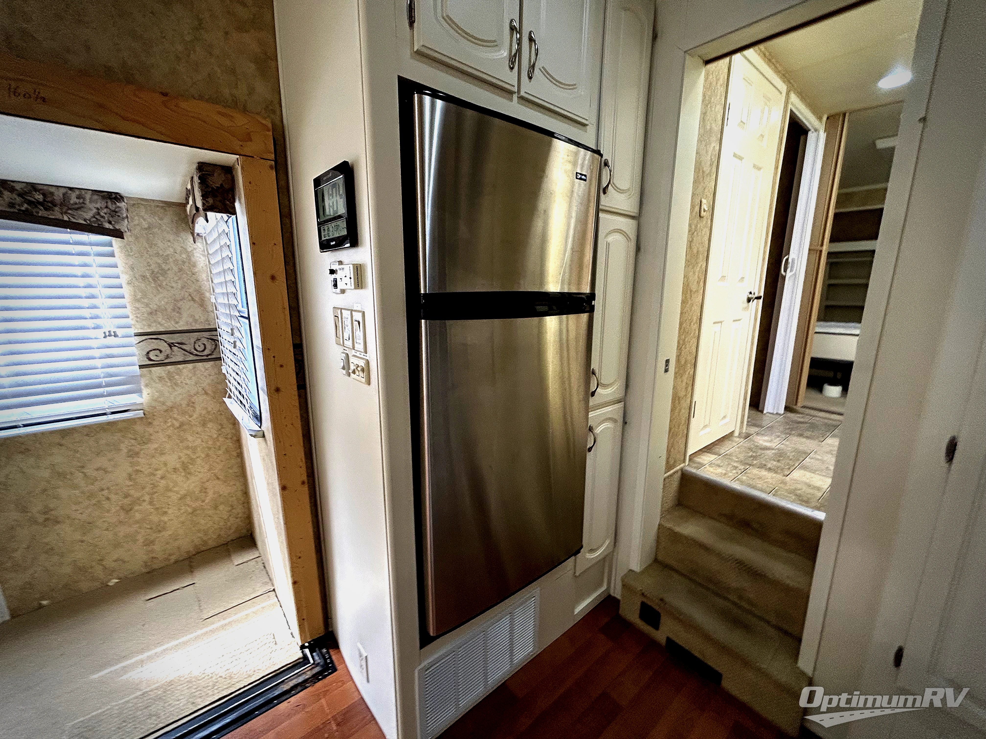 Triple Slide Fifth Wheel, Rear Living, Two Chairs, Slide Out Hide-A-Bed, Slide Out Ent Center/Desk/Booth Dinette, Double Kitchen Sink, 3 Burner Range, Refrigerator, Pantry, Closet, Shower, Private Toilet Area, Sink, Slide Out Queen Bed w/Storage Below, Chest, Closet, Cabinet, and More.