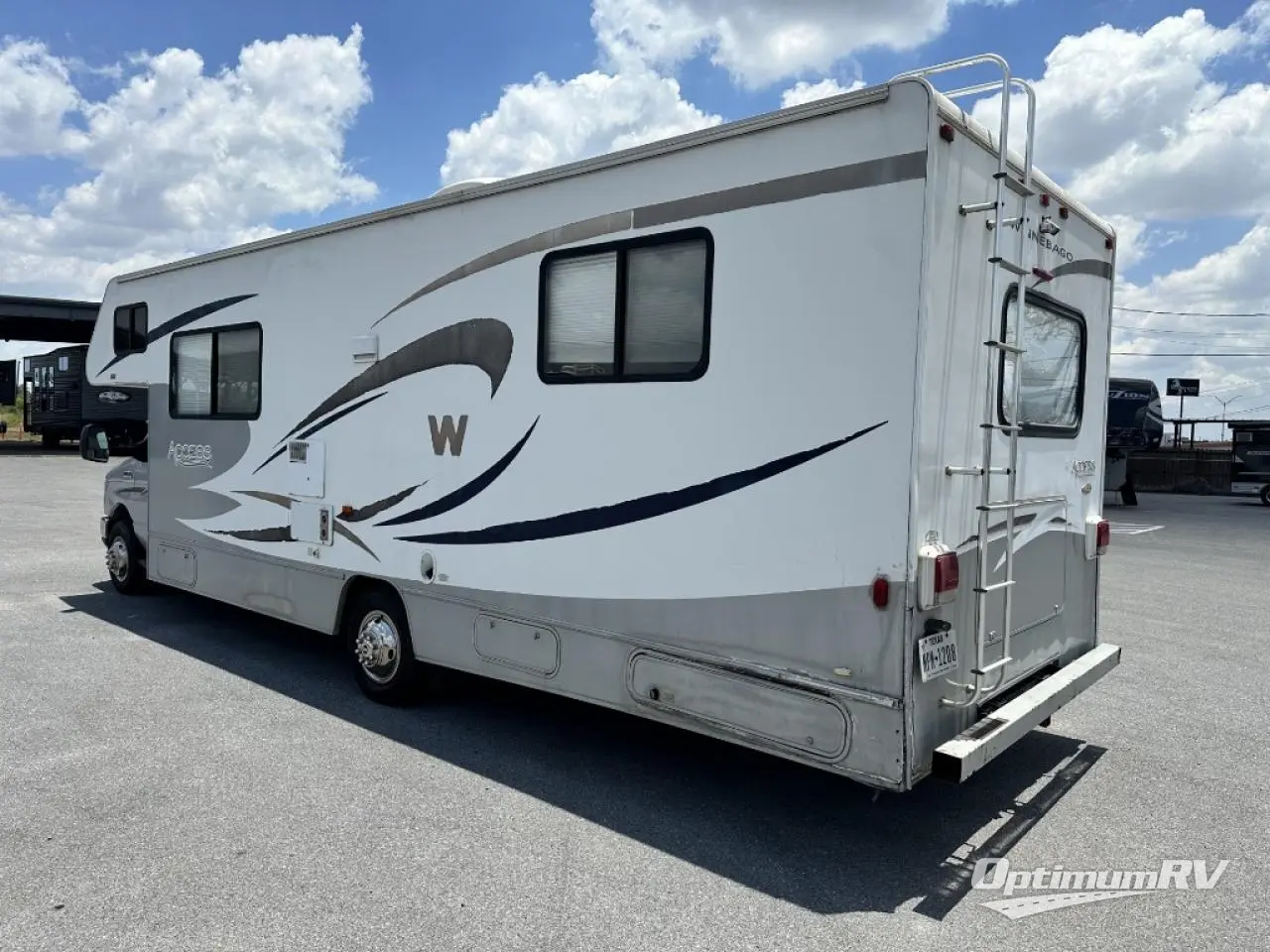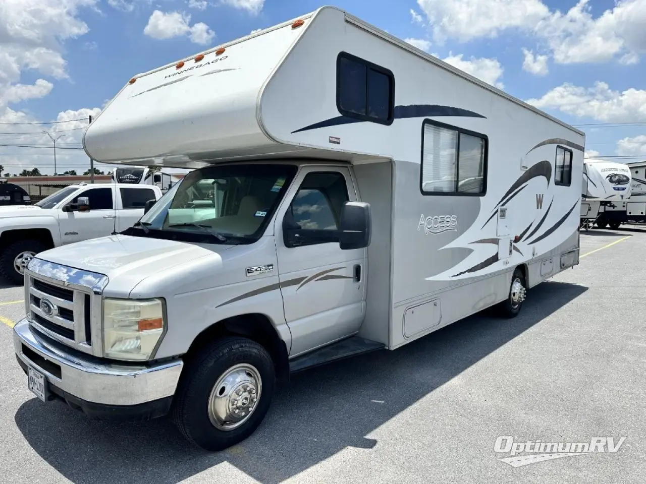 Non-Slide Winnebago Access Class C w/Single Slide Option. Rear Queen Bed w/Wardrobe, Nightstand, Folding Door, Opt. TV in Bedroom, Shower, Private Toilet Area w/Sink, 3 Burner Range, Double Kitchen Sink, Refrigerator, Booth Dinette w/Opt. for Dinette Slide, Queen Cabover Bed w/Opt. TV, or Opt. Front Entertainment Center w/32" LCD TV & Storage Both Sides, Sofa/Bed, Engine & Chassis Choices and Much More! Ford Specifications Shown. Chevrolet Chassis Available.