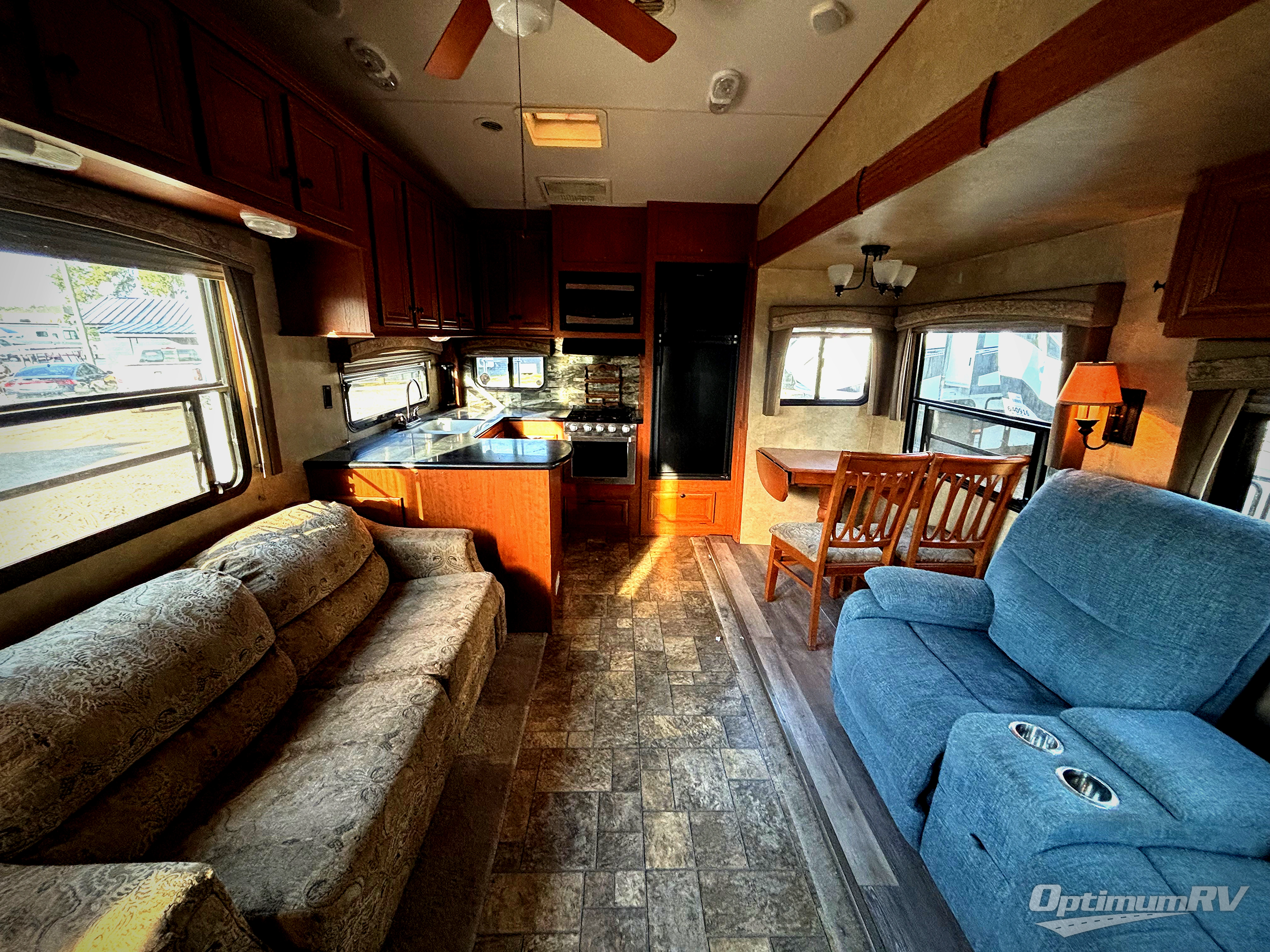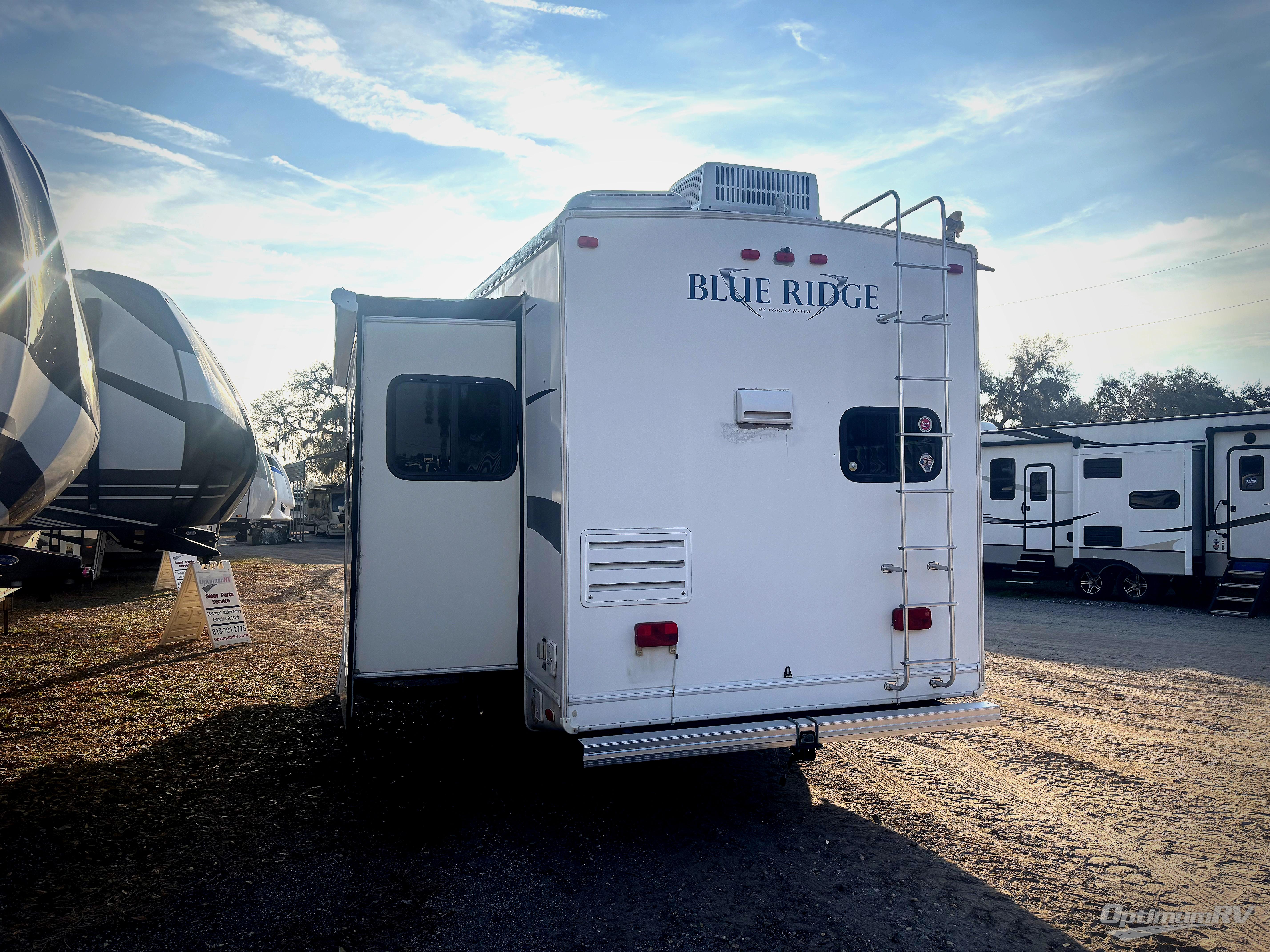 Double Slide Blue Ridge Fifth Wheel, Rear Kitchen w/Refrig., 3 Burner Range, Overhead Cab., Dbl. Kitchen Sink, Large Counter Area, J-Sofa w/Overhead Cab. or Opt. Lounge Chairs, Booth Dinette & Sofa Slide Out or Opt. Free Standing Dinette w/Sofa Slide Out, Ent. Ctr., Step Bath/Bedroom, Corner Shower, Lav. w/Med. Cab., Toilet, Linen, Front Queen Bed w/Ward. & Shelves, Vanity w/TV Above, Corner Closet w/Washer & Dryer Opt. & More.