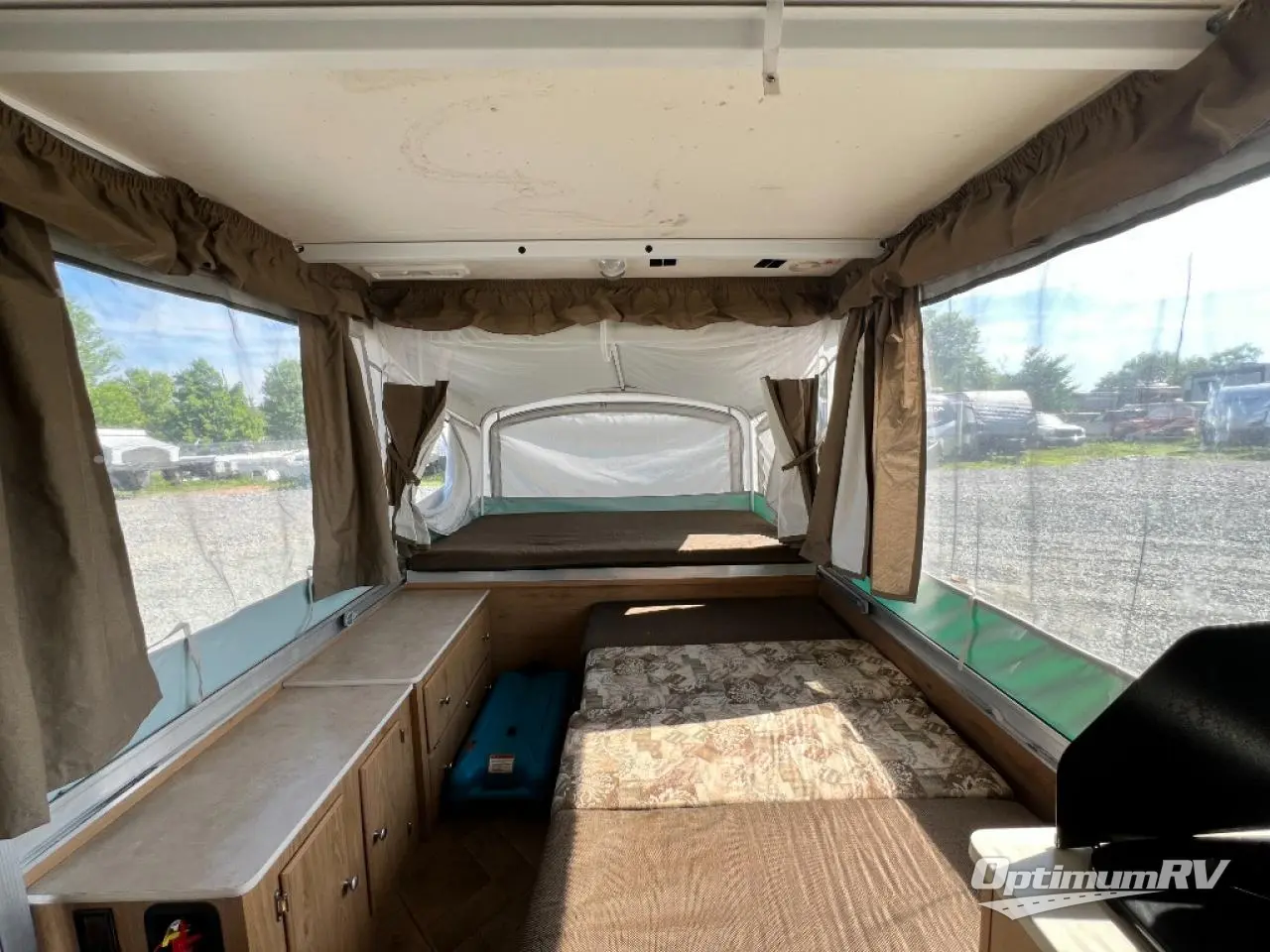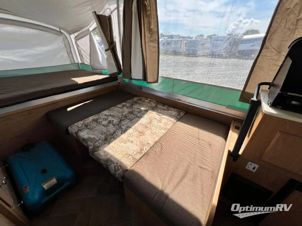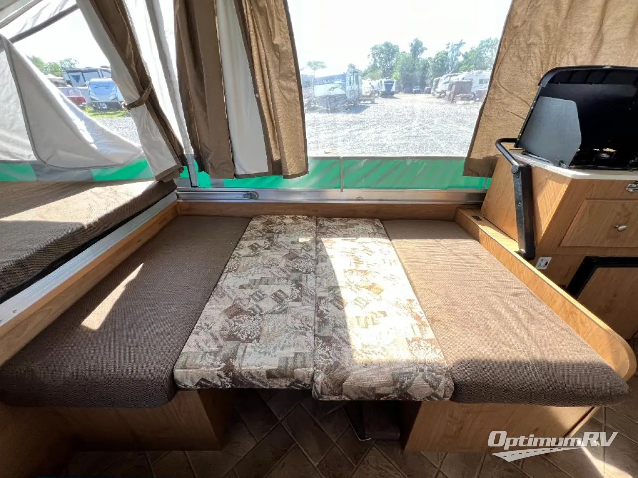Americana LE Series Folding Camper, Rear & Front Tent End Beds, Booth Dinette w/Portable Table, 2 Burner Range, Single Galley Sink, Storage, Cabinet or Cassette Potti and More.