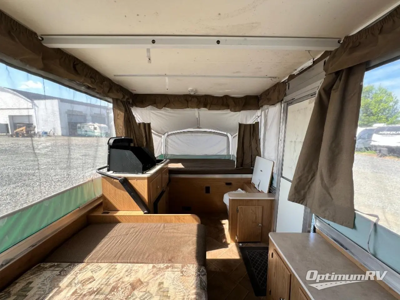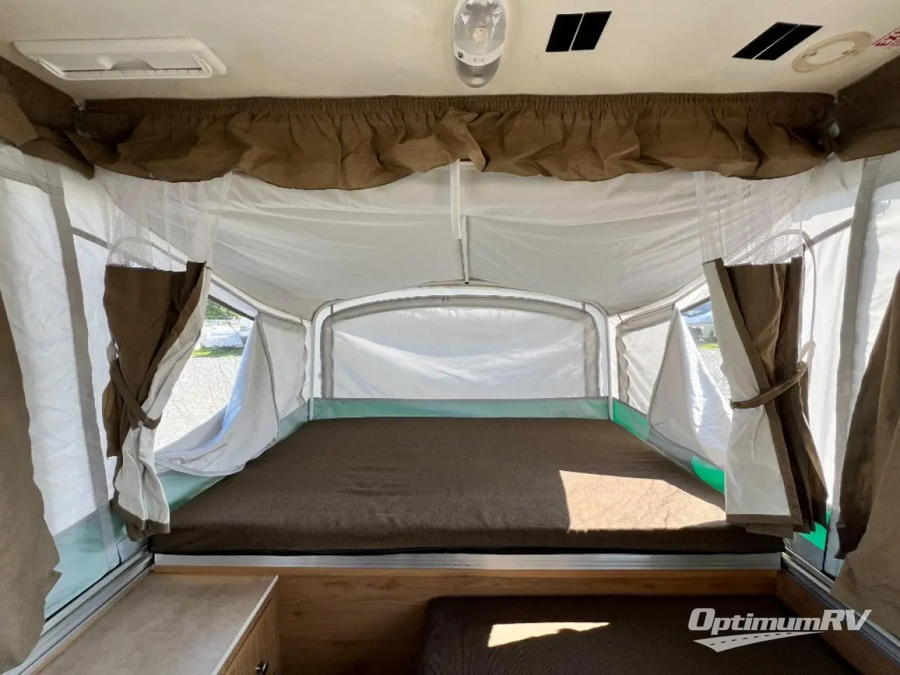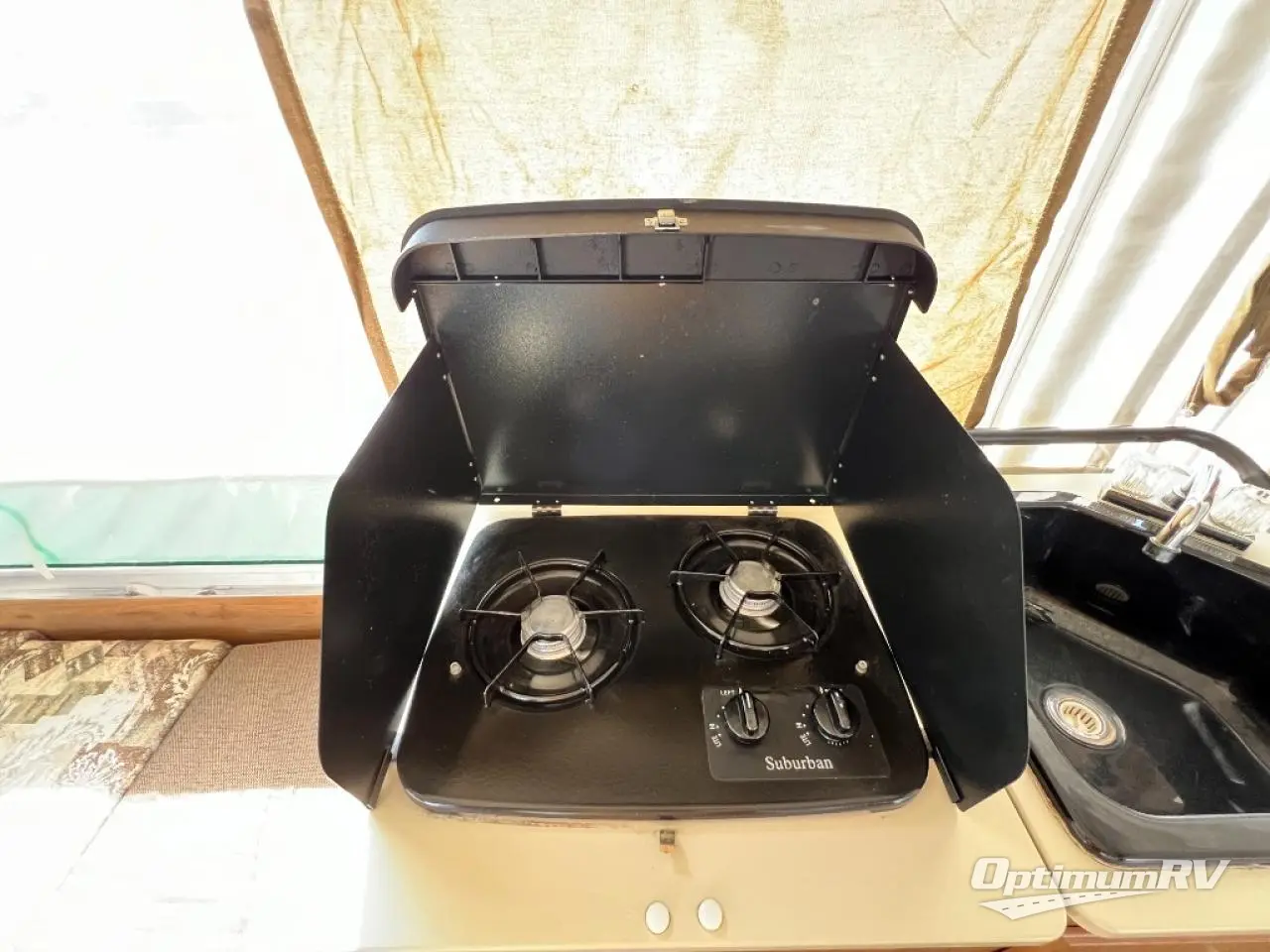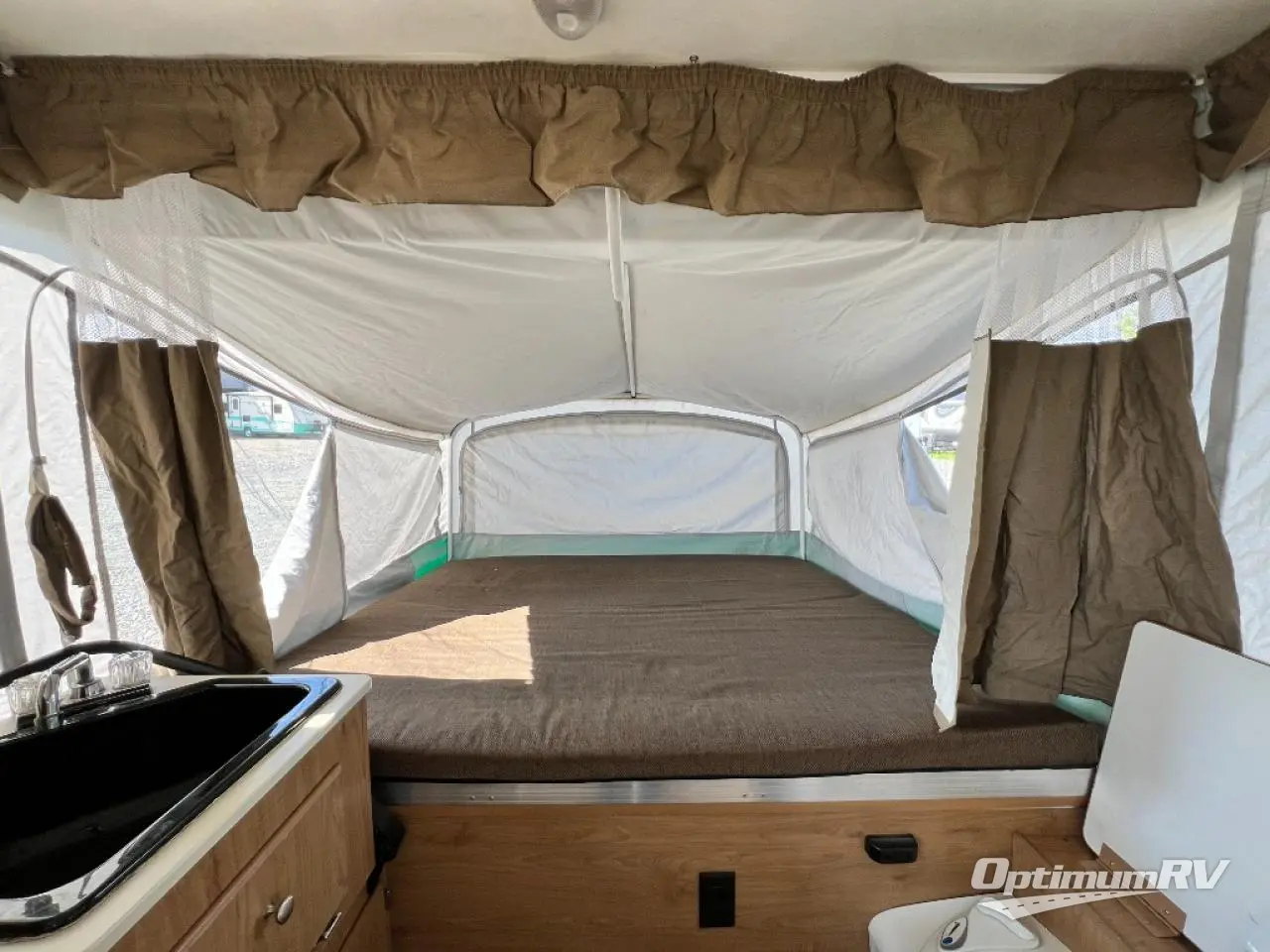 Americana LE Series Folding Camper, Rear & Front Tent End Beds, Booth Dinette w/Portable Table, 2 Burner Range, Single Galley Sink, Storage, Cabinet or Cassette Potti and More.