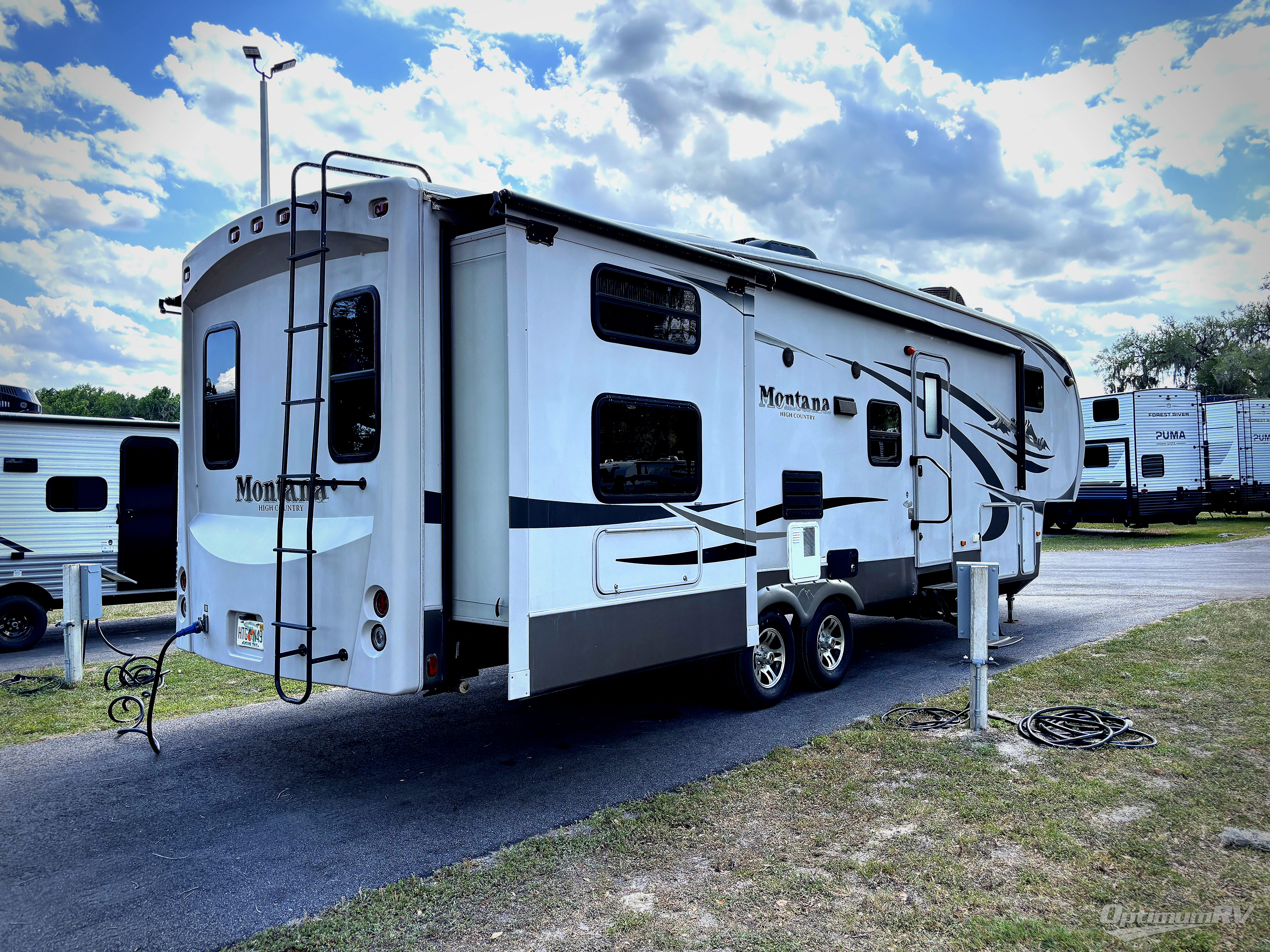 Montana High Country Fifth Wheel by Keystone RV w/Rear Bunkhouse w/Double Slideouts w/Fold Down Bunks, Closet, LCD TV, 1/2 Bath w/Sink, Booth Dinette & Air Mattress Hide-a-Bed Slide, Refrigerator, 3 Burner Range, Dbl. Kitchen Sink w/Overhead Cabinets, LCD TV, Step Up to Bed & Bath w/Neo-Angle Shower, Private Toilet Area, Separate Sink, Front Queen Bed Slide, Storage Cabinet, Full-Height Wardrobe, Washer/Dryer Prep & Much More! Available Options May Include: Jack Knife Sofas.