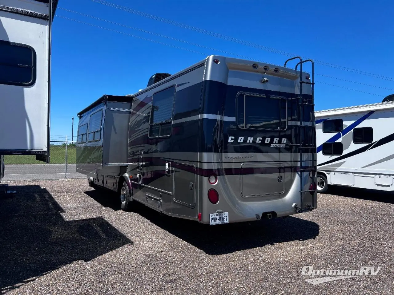 Single Slide Concord Class C Coach w/Rear Queen Bed, Dbl. Nightstands, Storage, Shower, Private Toilet Area w/Lav., Pantry, Refrig., Single Kitchen Sink, 3 Burner Range, Euro Chair, Ent. Center Above Cab Area w/32" LCD TV, Sofa & Dinette Slideout, Overhead Cabinets and More. Available Options May Include: Twin Beds IPO Queen w/Wardrobe Between, 4500 Chevy Chassis.