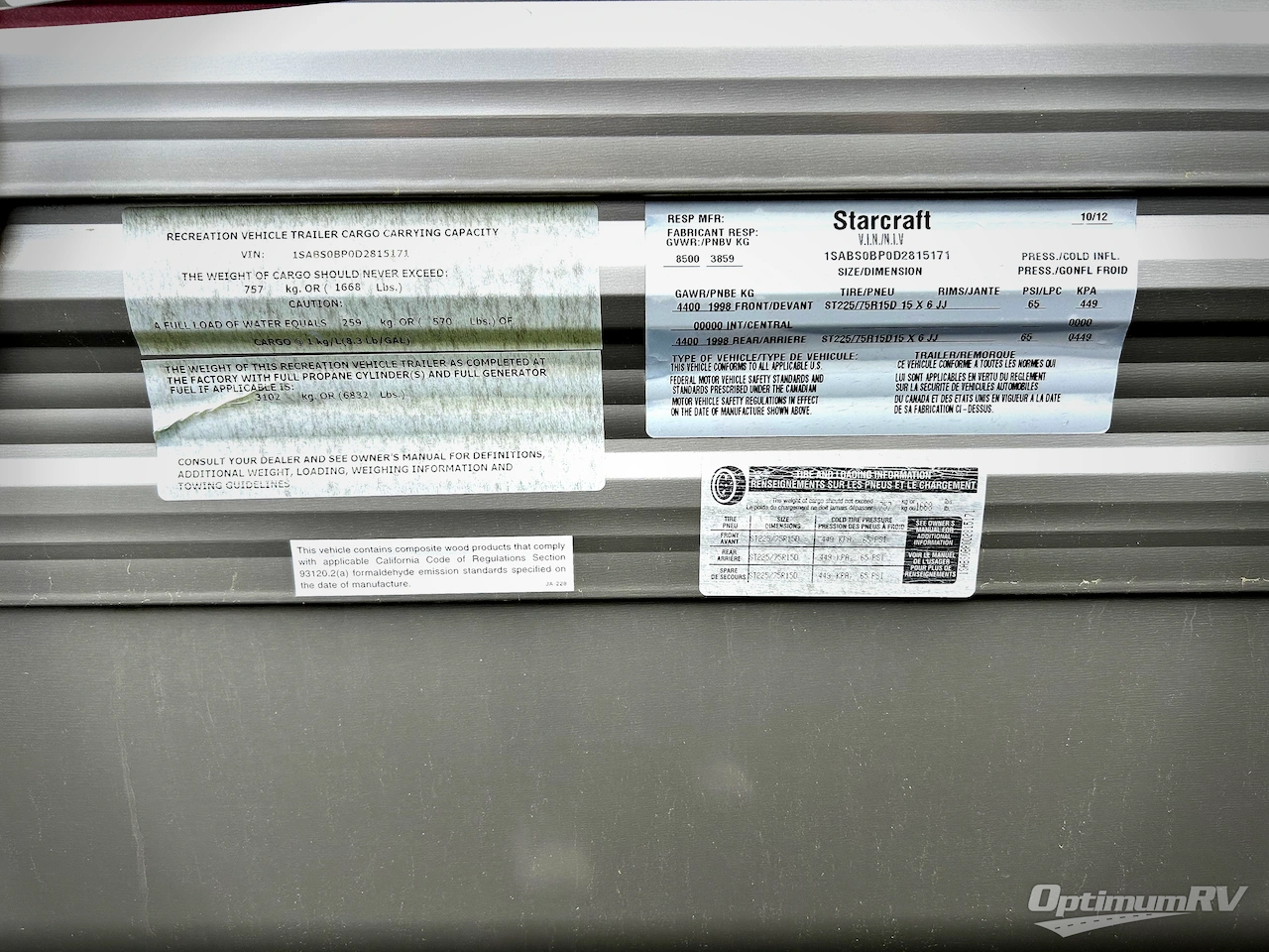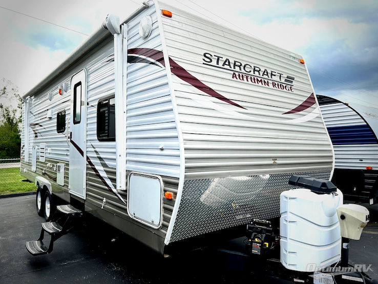 Starcraft Bunkhouse Travel Trailer w/Rear Corner Bath Including Tub/Shower & Toilet, Separate Sink w/Med. Cabinet, J-Steel Sofa Slide, Rear Corner Dbl. Bed w/Dbl. Bed Bunk Above, Booth Dinette w/Overhead Cabinet, Refrigerator, Dbl. Kitchen Sink, 3 Burner Range, Microwave Oven, Front Queen Bed, Shirt Wardrobes w/Chests Below, Pass-Thru Storage in Front, 18' Awning & More!