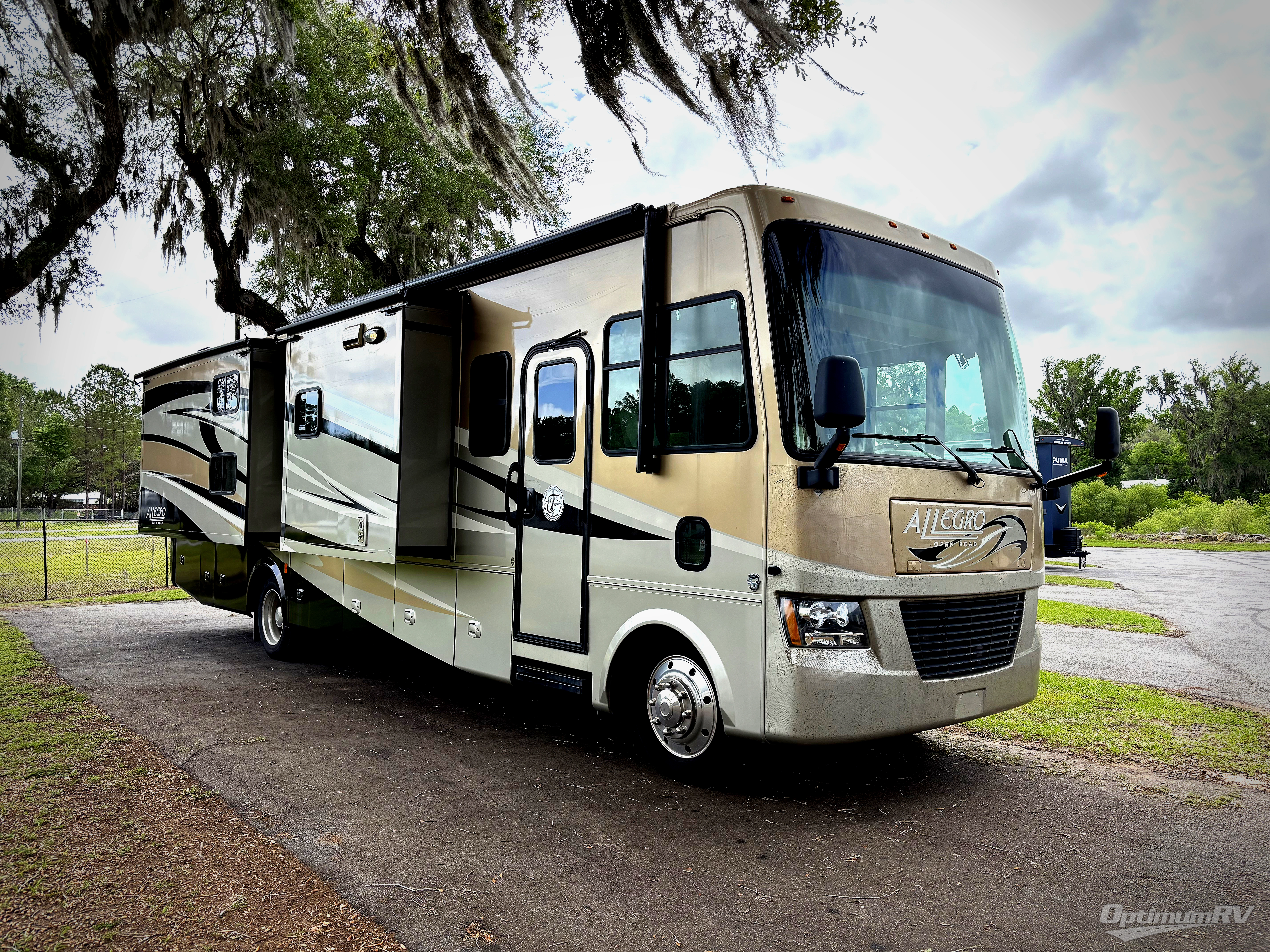 Quad Slide Allegro w/Rear Queen Bed Slide w/Nightstands, Wardrobe Above Drawers & Bunk Bed Slideout, Bath w/Corner Shower, Linen Cabinet, Lav., 37" LCD TV in Living Area, Refrigerator, Double Kitchen Sink & 3 Burner Range Slideout, Lounge Chair, Sofa Bed & Booth Dinette Slideout, Overhead Cabinets Both Driver & Passenger Sides & Throughout, and Much More! Available Options May Include: Driver's Door, Tile Floor in Bedroom, 32" TV in Bedroom, Free Standing Cabinet/Dinette.