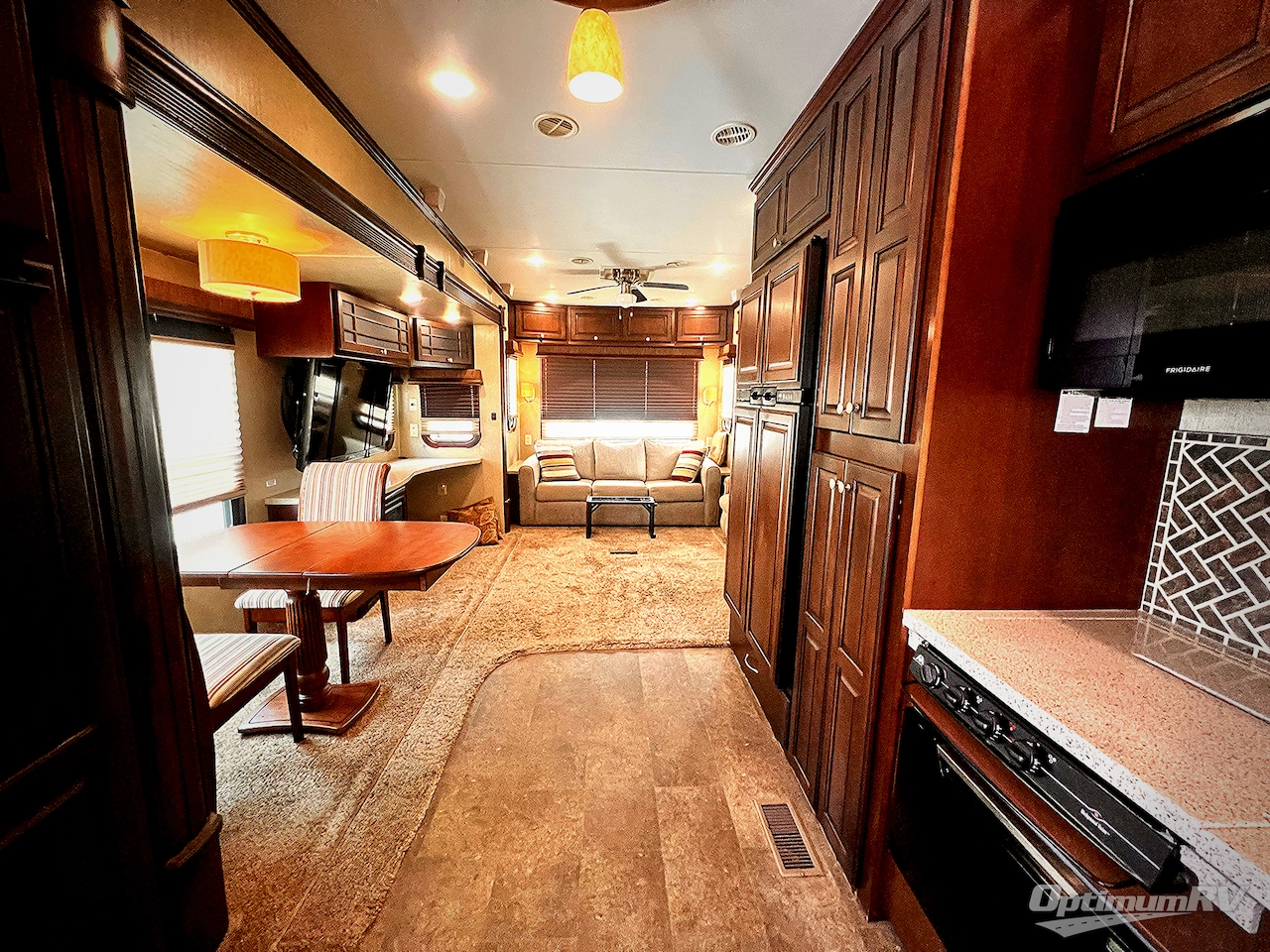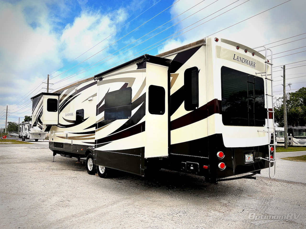 Landmark Fifth Wheel w/Rear Living Area Including: Sofa w/End Tables & Overhead Storage, Slideout Lounge Chairs w/Table Between, Opposite Slide w/LCD TV/Oval Dinette w/Chairs & Overhead Storage, Refrig., Pantry, 3 Burner Range, Counter Space w/Overhead Storage, Dbl. Kitchen Sink, Step Up to Side Aisle Bath w/Linen Cabinet, Tub/Shower, Toilet & Sink, Door to Bedroom w/King Bed Slide, Dresser, Washer/Dryer Prep and Wardrobe w/Sliding Doors and Much More!