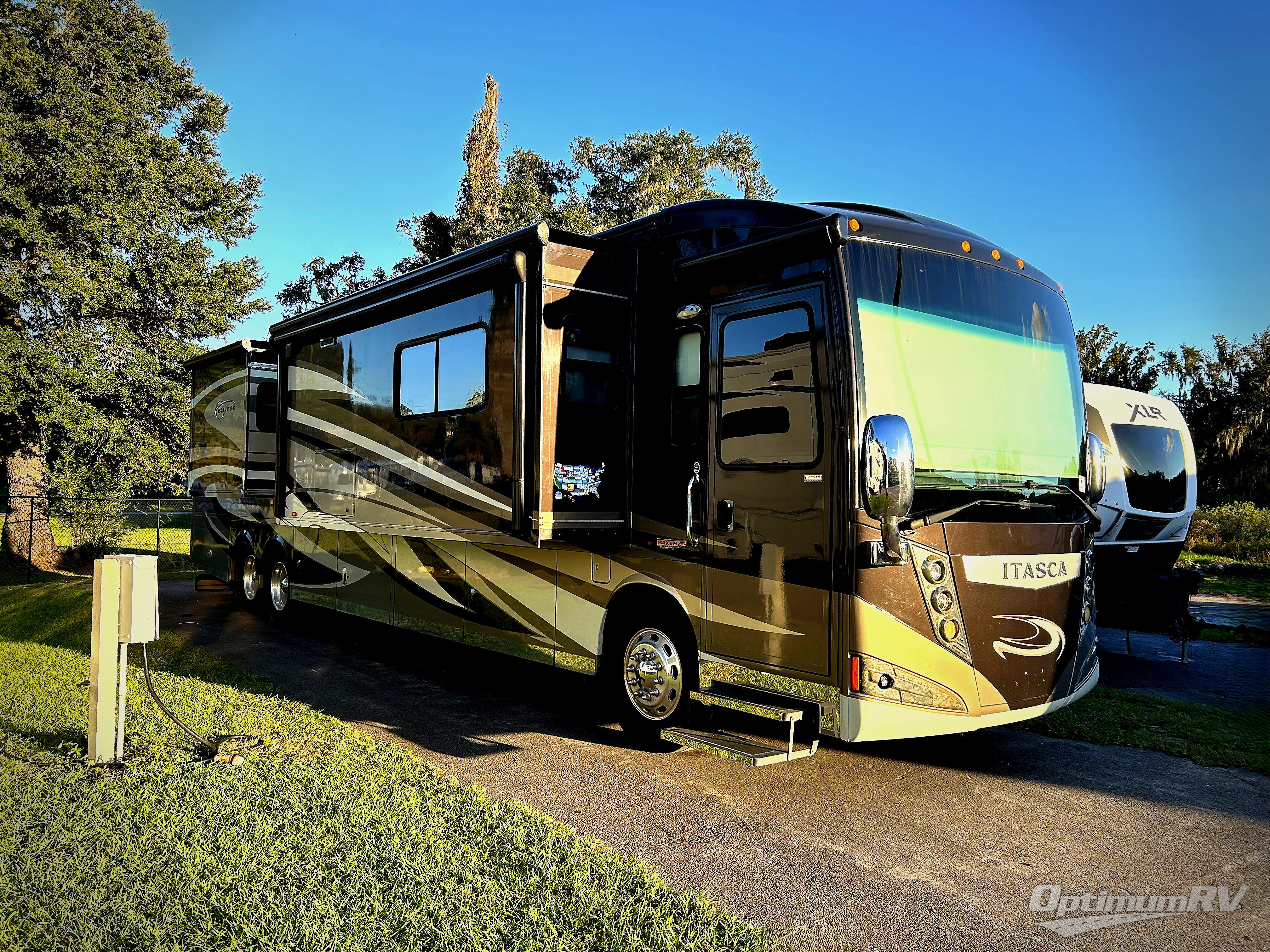 Ellipse Class A Diesel by Itasca w/1-1/2 Bath Including Rear Full Bath w/Shower, Storage Cabinet, Sink, Toilet, King Bed Slide w/Nightstands, Ward./Retractable 26" LCD TV/Ward./Pantry/4 Door Refrig./Dining Table & Chairs/Recliner/Pull-Out Table & 40" LCD TV Slideout, Rest Easy Extendable Sectional Sofa w/Coffee Table/3 Burner Range & Dbl. Kitchen Sink Slide, 1/2 Bath w/Vanity & Sink and More! Available Options May Include: Residential Refrig., Euro Recliner, Washer/Dryer, Fireplace, 2 Ottomans.