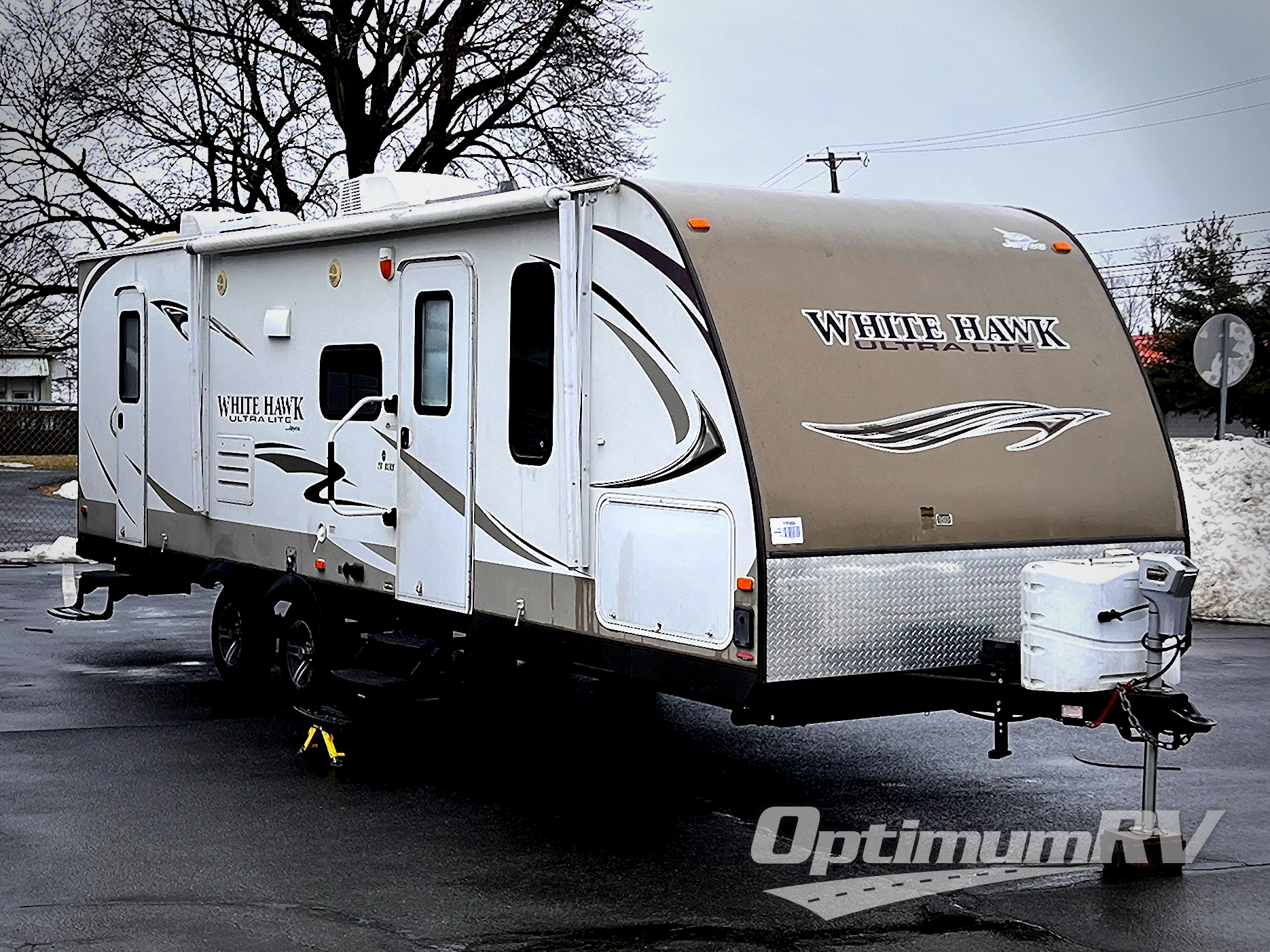 Single Slide White Hawk Travel Trailer, Rear Double Bed Bunk Beds, Tub/Shower, Toilet, Lav., Med Cab., Pantry/Ward., Refrigerator, Microwave, 3-Burner Range, Dbl. Kitchen Sink, Entertainment Center, Queen Bed, Dbl. Wardrobes, Sofa/Dinette Slide, Pantry, Overhead Cabinets Throughout & Much More. Available Options May Include: Free-Standing Table & Chairs, Hide-a-Bed.