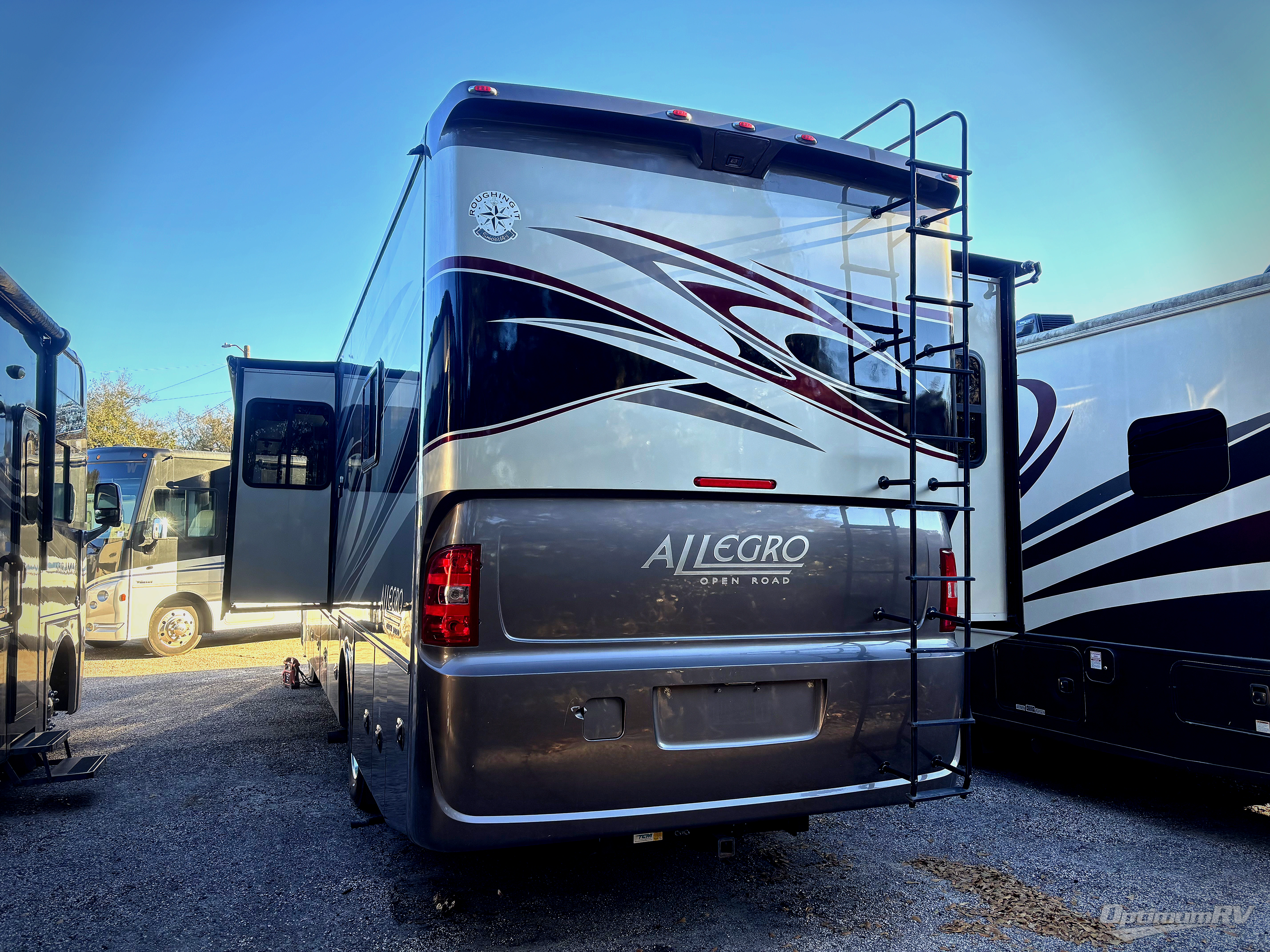 Triple Slide Allegro Class A by Tiffin w/Rear Queen Bed Slide w/Nightstands, Wardrobe w/Drawers Below, Private Toilet Area w/Lav., Corner Shower w/Lav., Refrigerator, Booth Dinette & Sofa Bed Slideout, Double Kitchen Sink & 3 Burner Range Slide w/Overhead Cabinets, Lounge Chair, 37" TV and Much More! Available Options May Include: 32" TV Above Cab Area, Driver's Door, 32" TV in Bedroom, Tile Floor in Bedroom, Free Standing Cabinet/Dinette.