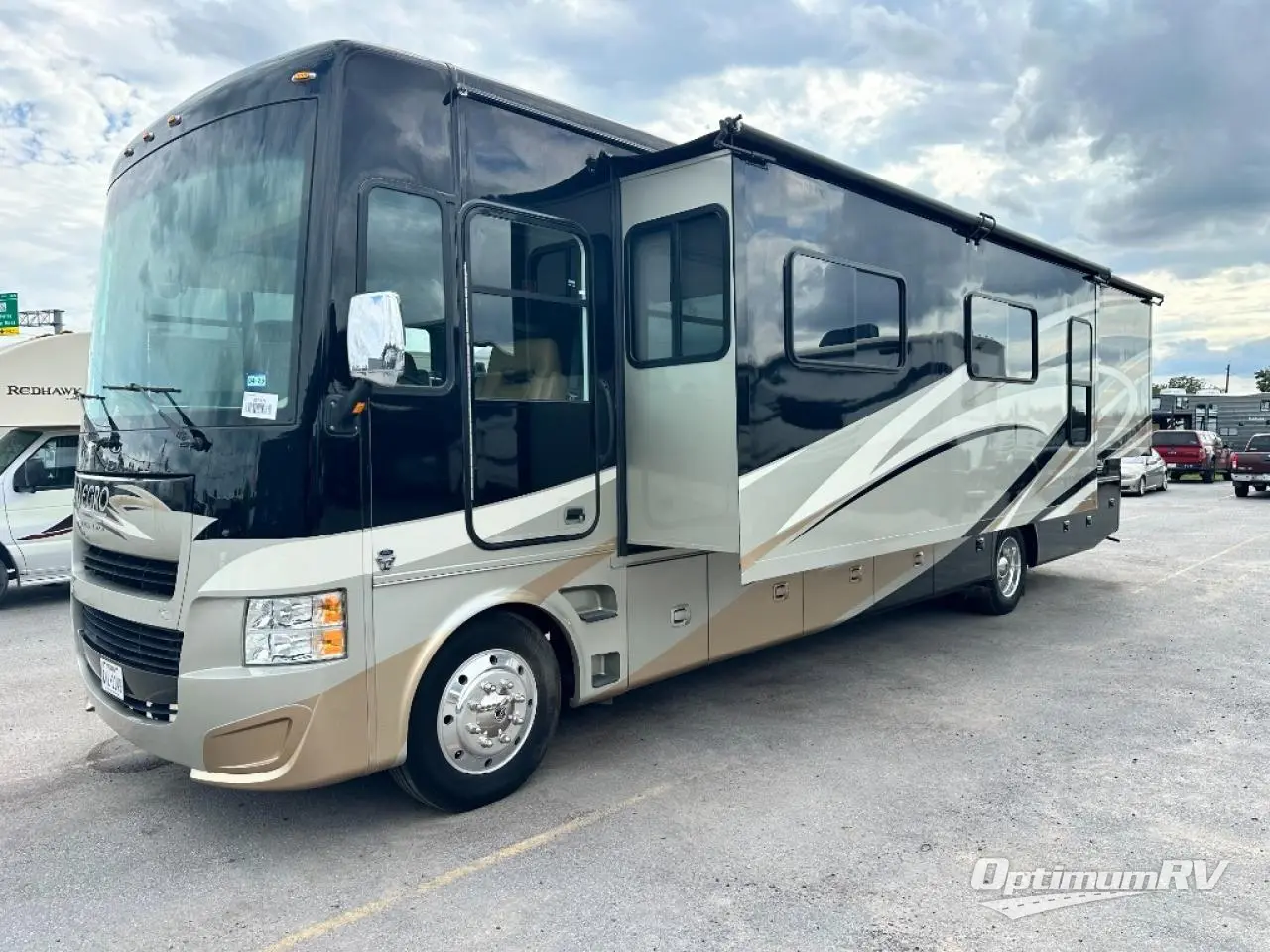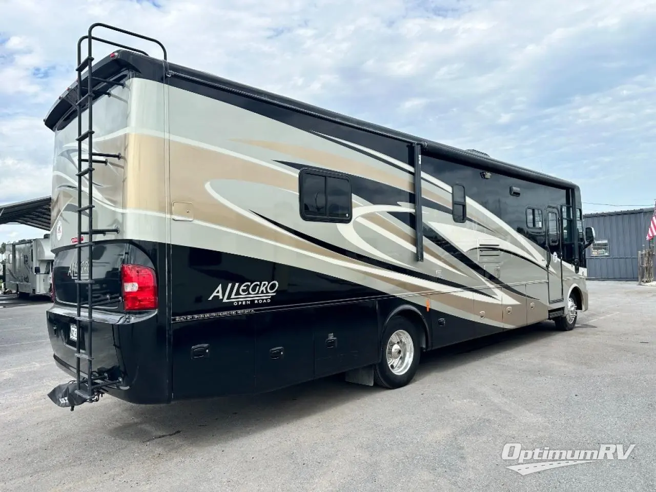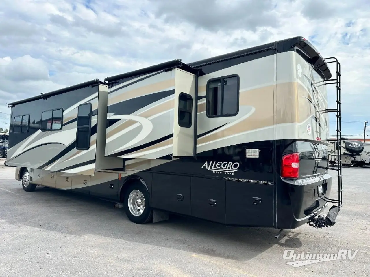 Allegro Class A Motorhome w/Rear Full Bath Including: Shower, Toilet & Vanity w/Sink, Overhead Cabinet, Queen Bed Slideout w/Nightstands, Wardrobe w/Drawers Below, Lounge Chair/Chaise Sofa Bed w/Coffee Table & Booth Dinette Slideout, Dbl. Kitchen Sink, 3 Burner Range, Refrigerator, 1/2 Bath, LCD TV in Living Area, Overhead Storage Throughout and Much More! Available Options May Include: Combo Wash/Dryer, Fireplace Below TV, Freestanding Dinette, Driver Side Door, Tub