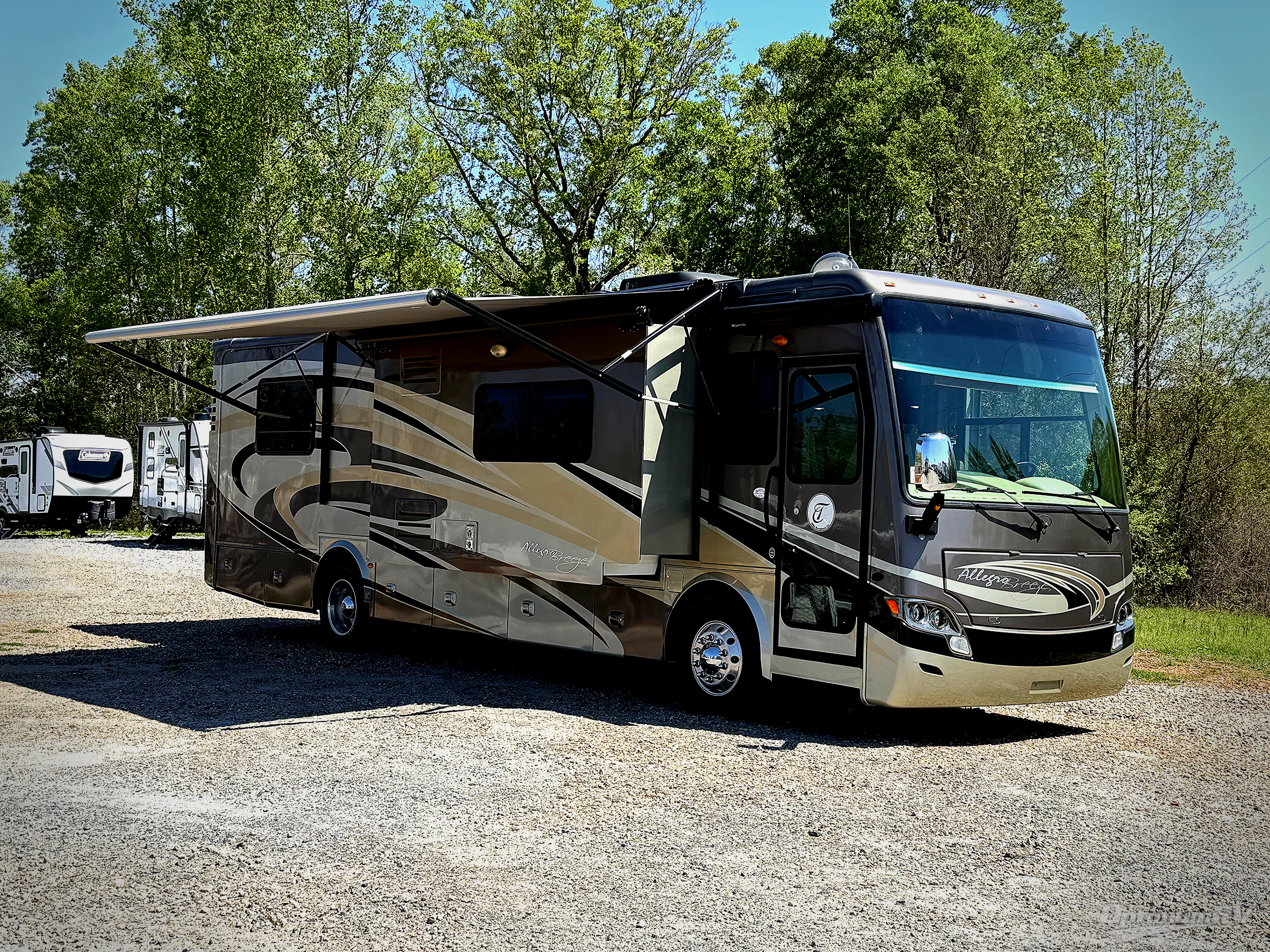 Tiffin Allegro Breeze Class A Diesel Coach w/Rear Queen Bed w/Closet/Nightstands, Linen Cabinet, Small Closet, Shower, Private Toilet Area w/Vanity & Sink, TV in Living Area, Round Kitchen Sink/Range w/Microwave & 68" Sofa Bed Slide w/Overhead Storage, Side Overhead Storage in Cab Area, U-Shaped Dinette/Refrigerator & Pantry Slide and Much More! Available Options May Include: TV Above Cab Area, Bedroom TV & Tile Floor in Bedroom.