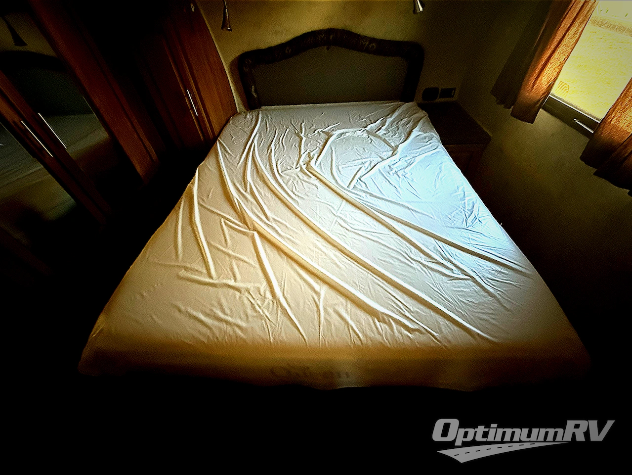The front bedroom has a queen bed with a wardrobe on one side and a nightstand on the other side of the bed. The wardrobe slide provides added storage in the bedroom. There is also an optional wall mount TV in the bedroom.
