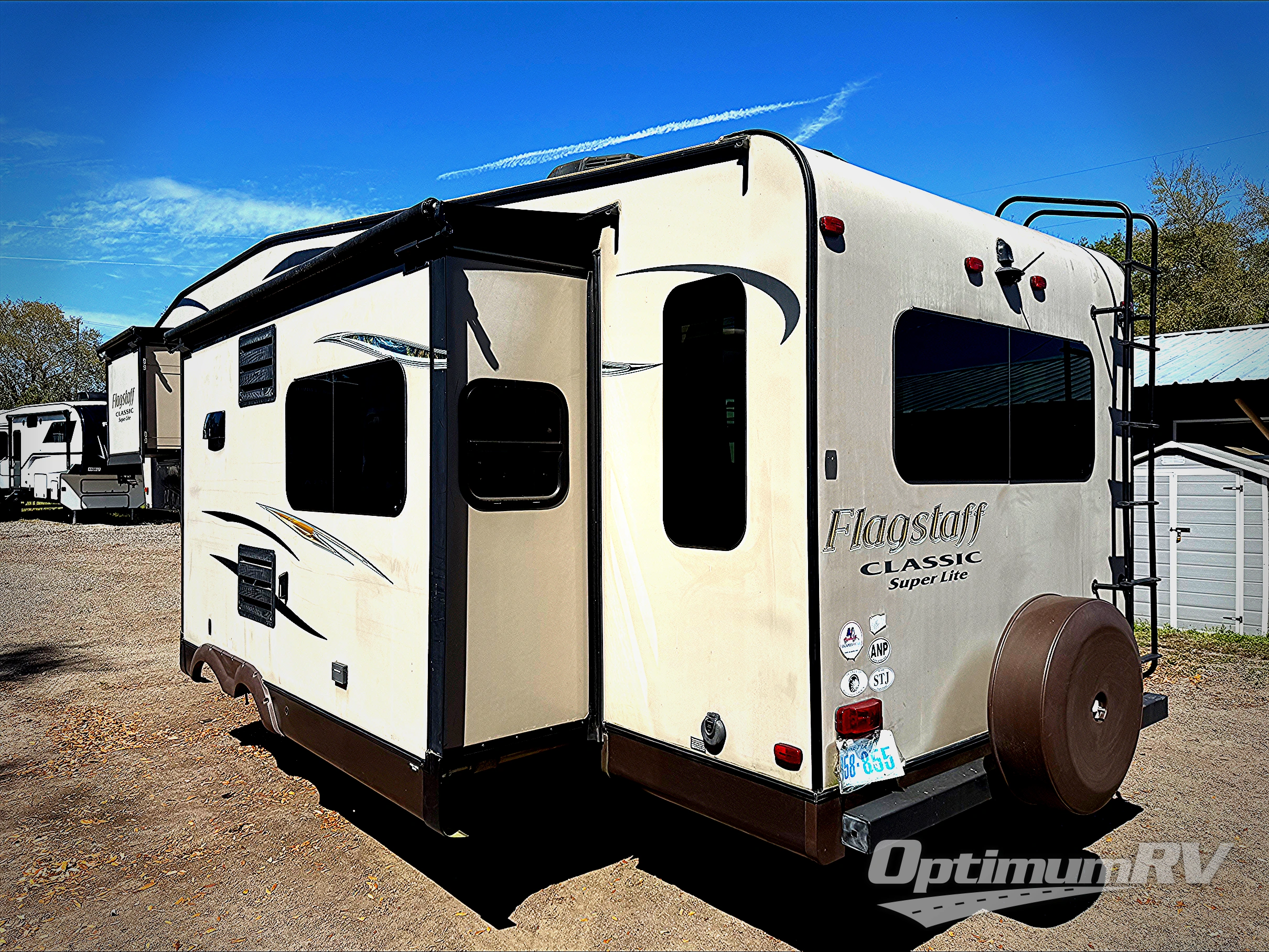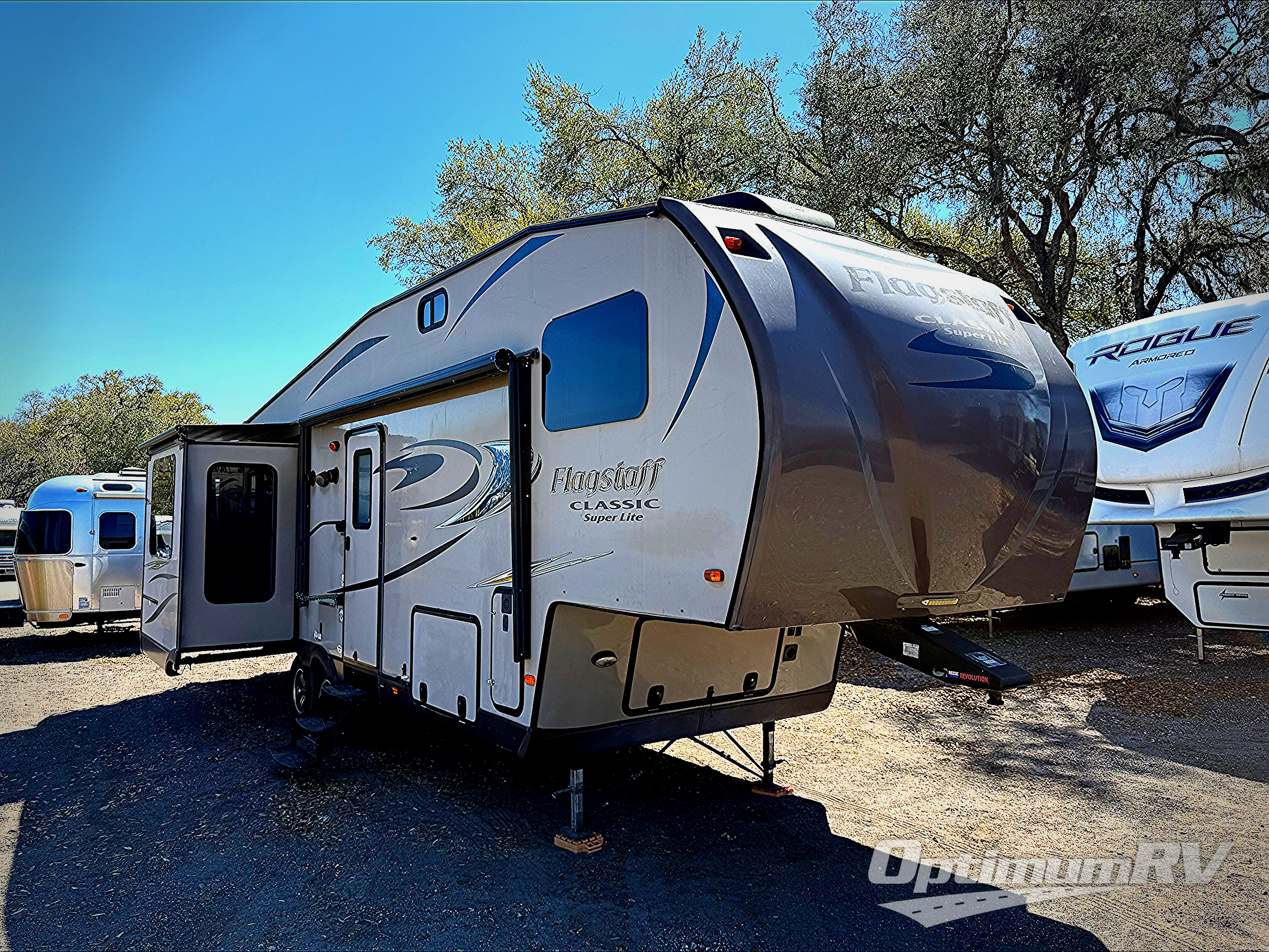 The Flagstaff Classic Super Lite 8528RSWS fifth wheel by Forest River offers triple slides and a rear living area.