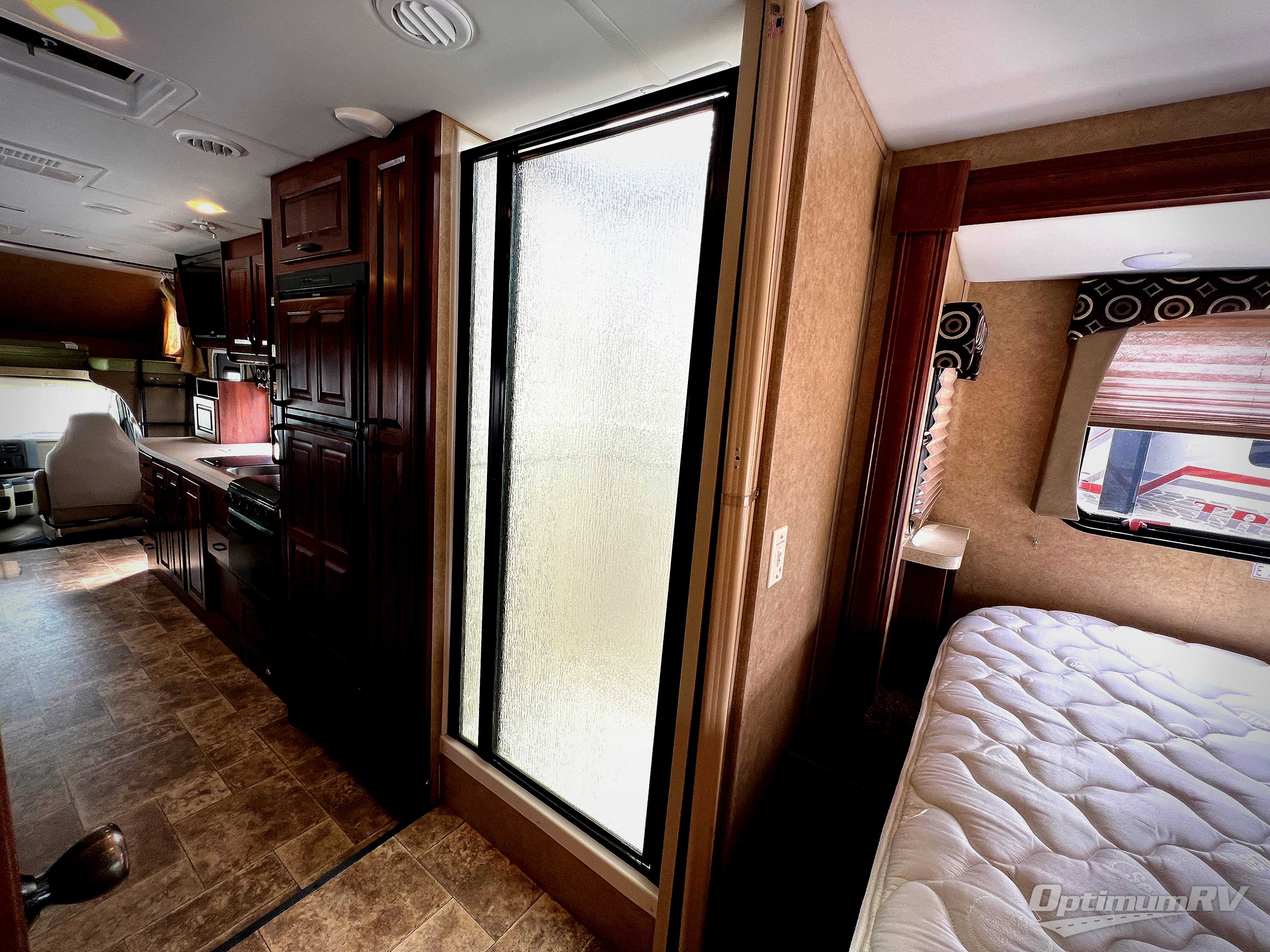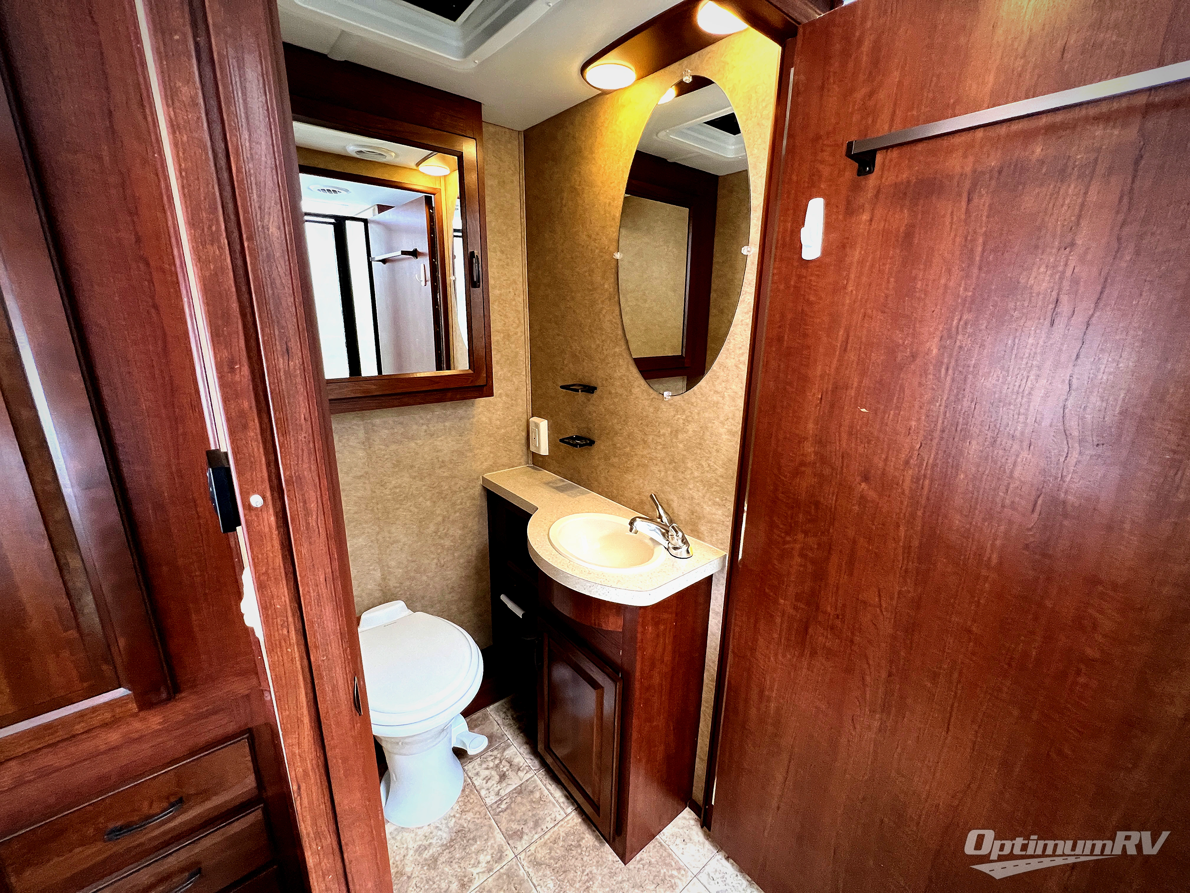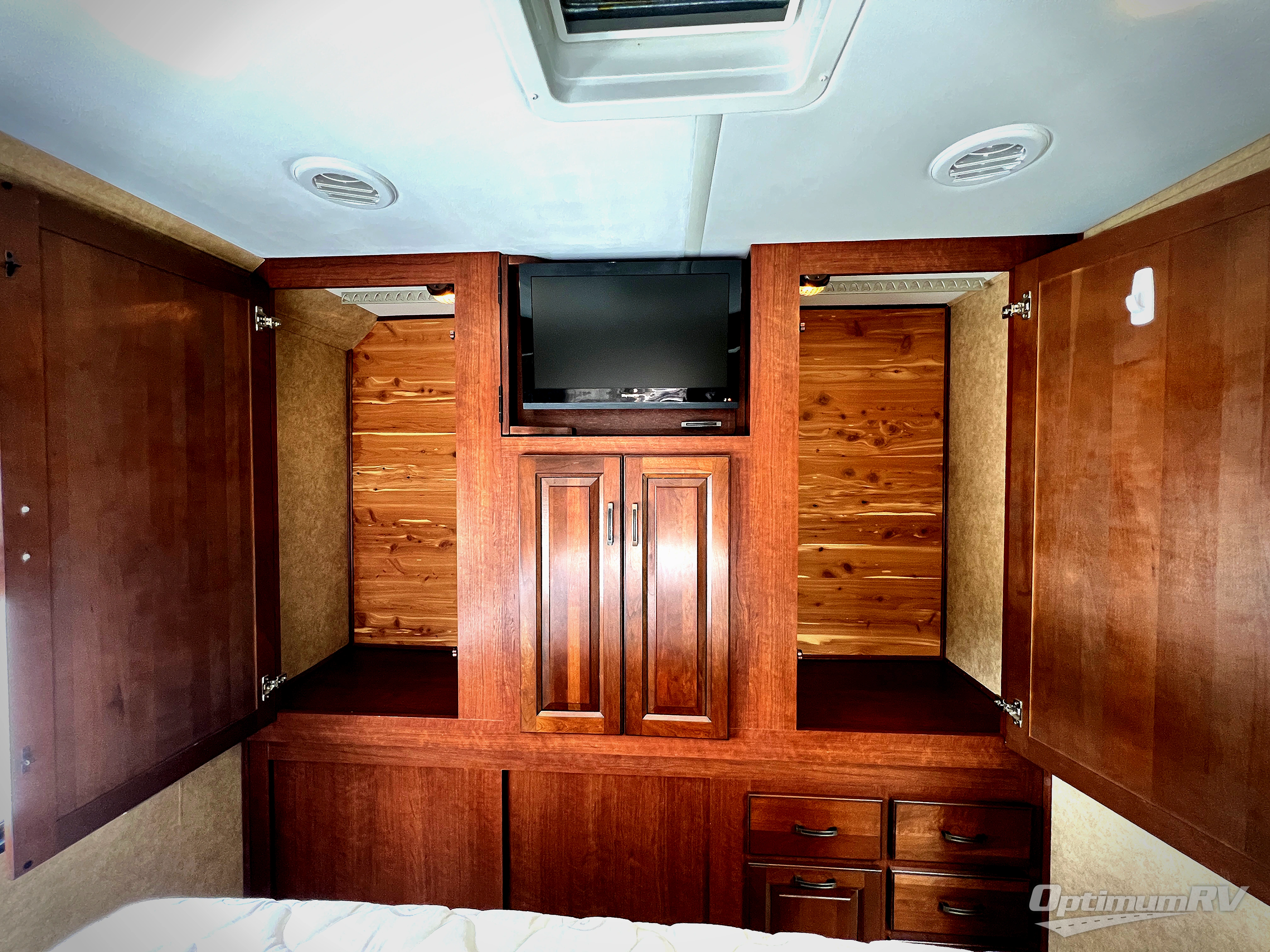 Back at the front, the area over the cab comes standard with storage and a 54" x 80" bunk, or you may choose an optional entertainment center. Other options may include a TV for the bedroom or a deluxe TV for the living area.