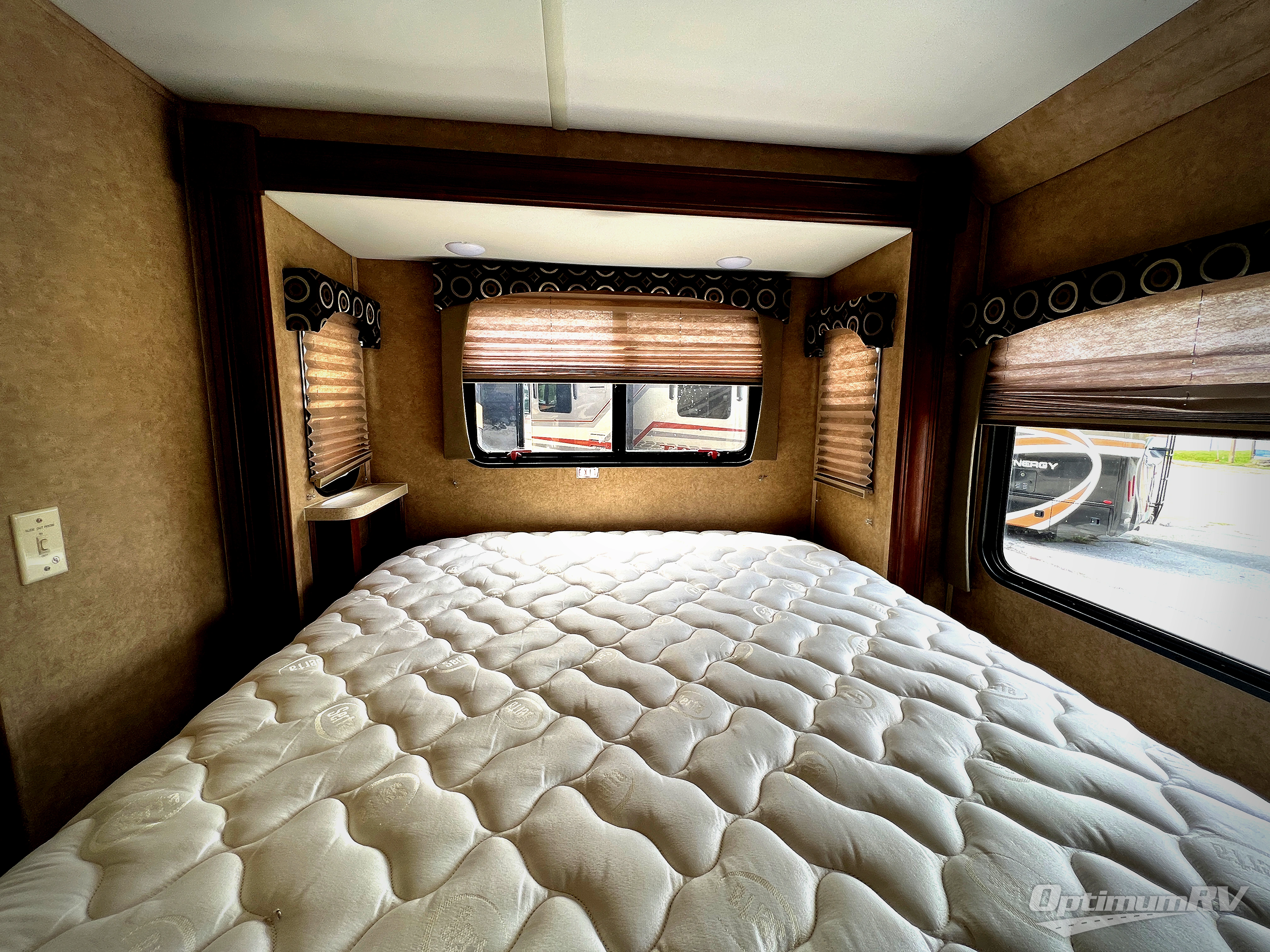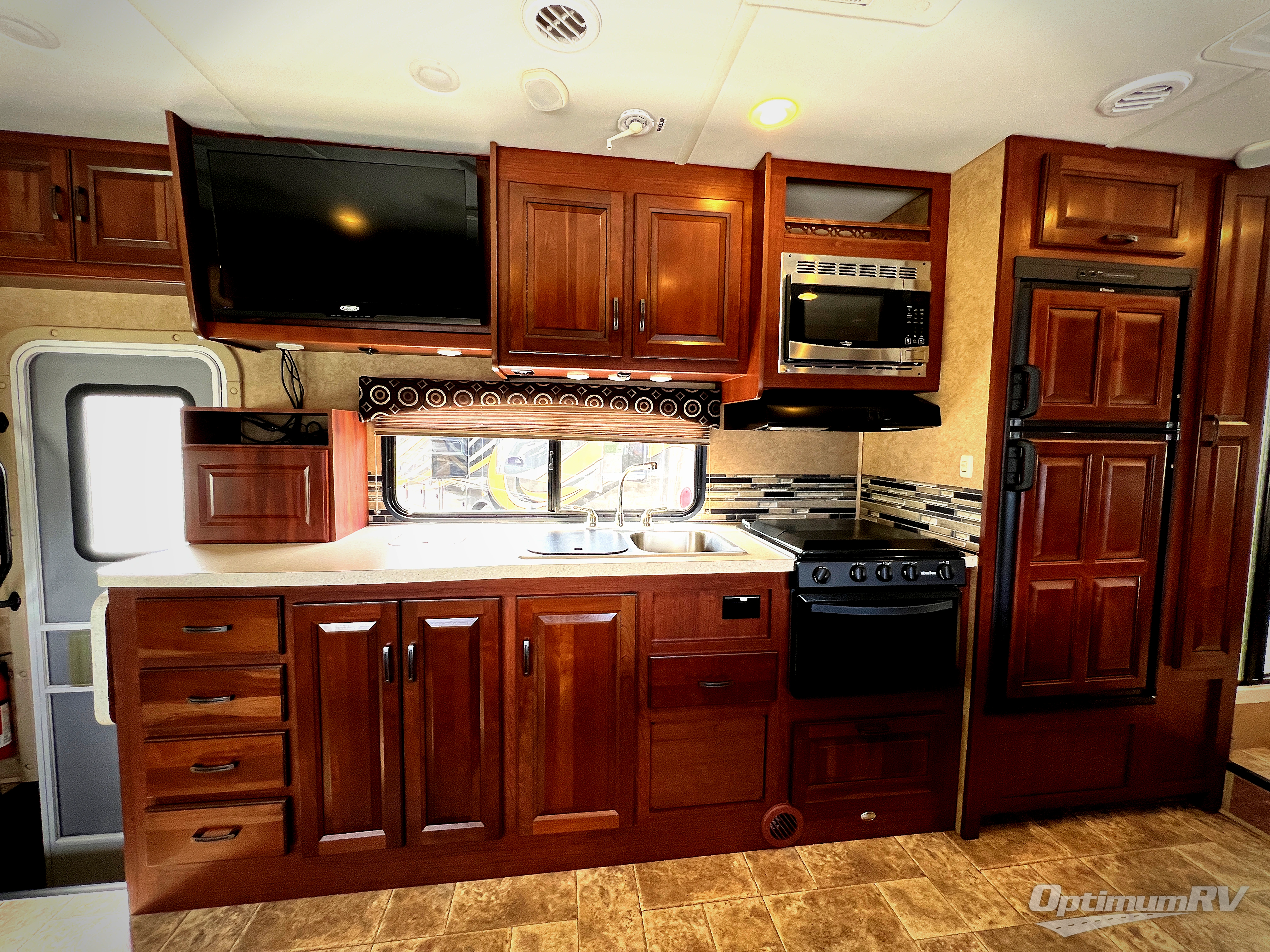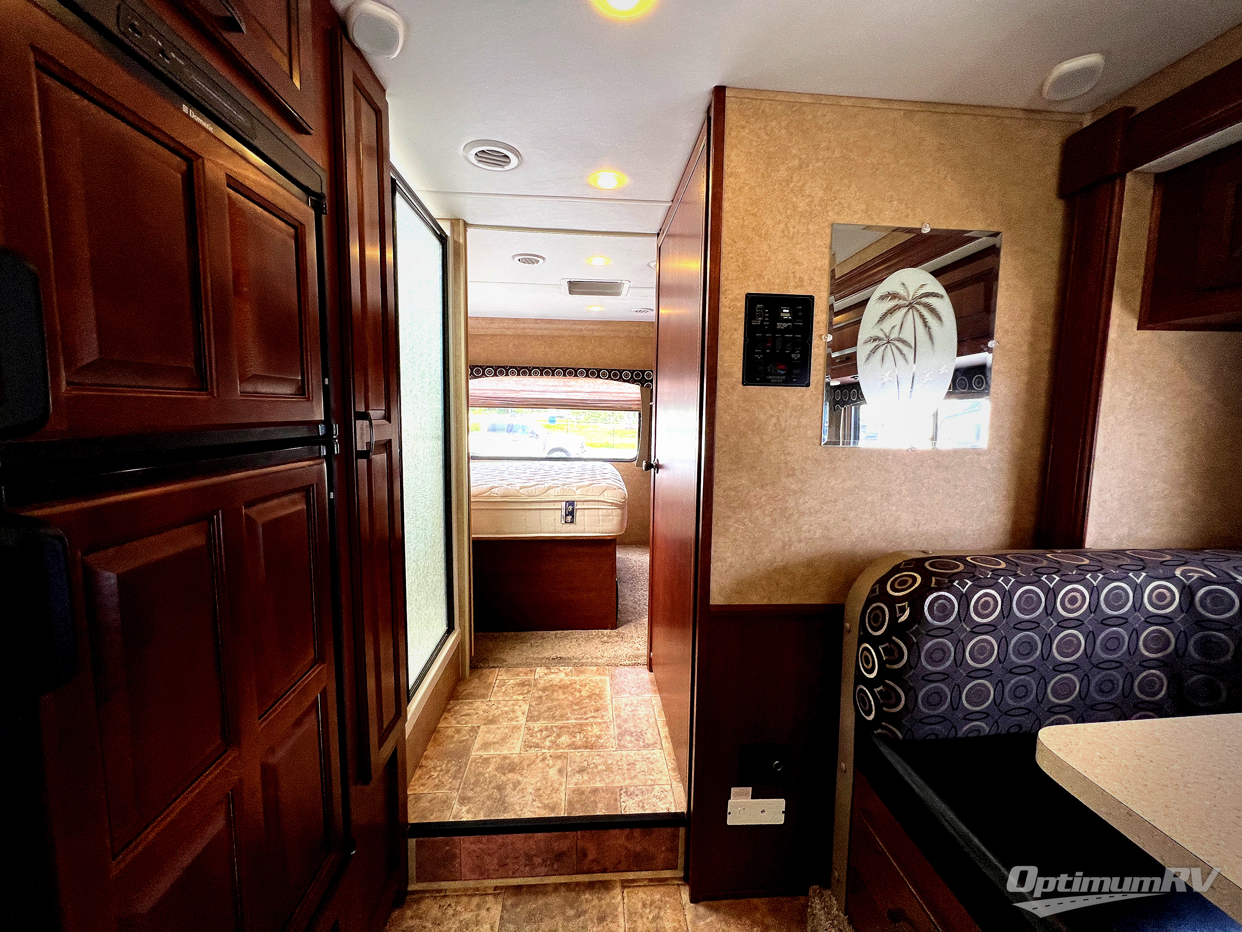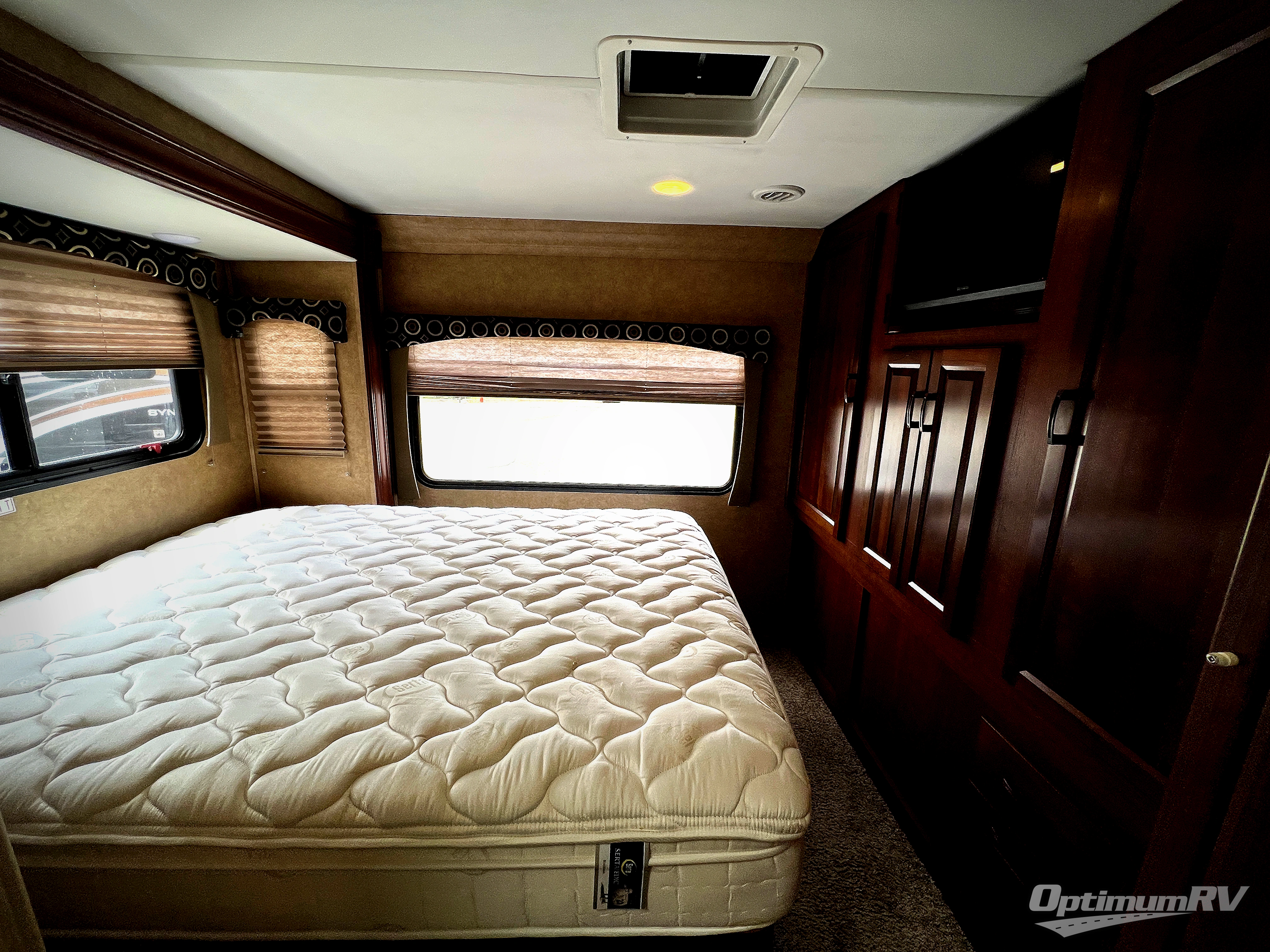 Back at the front, the area over the cab comes standard with storage and a 54" x 80" bunk, or you may choose an optional entertainment center. Other options may include a TV for the bedroom or a deluxe TV for the living area.