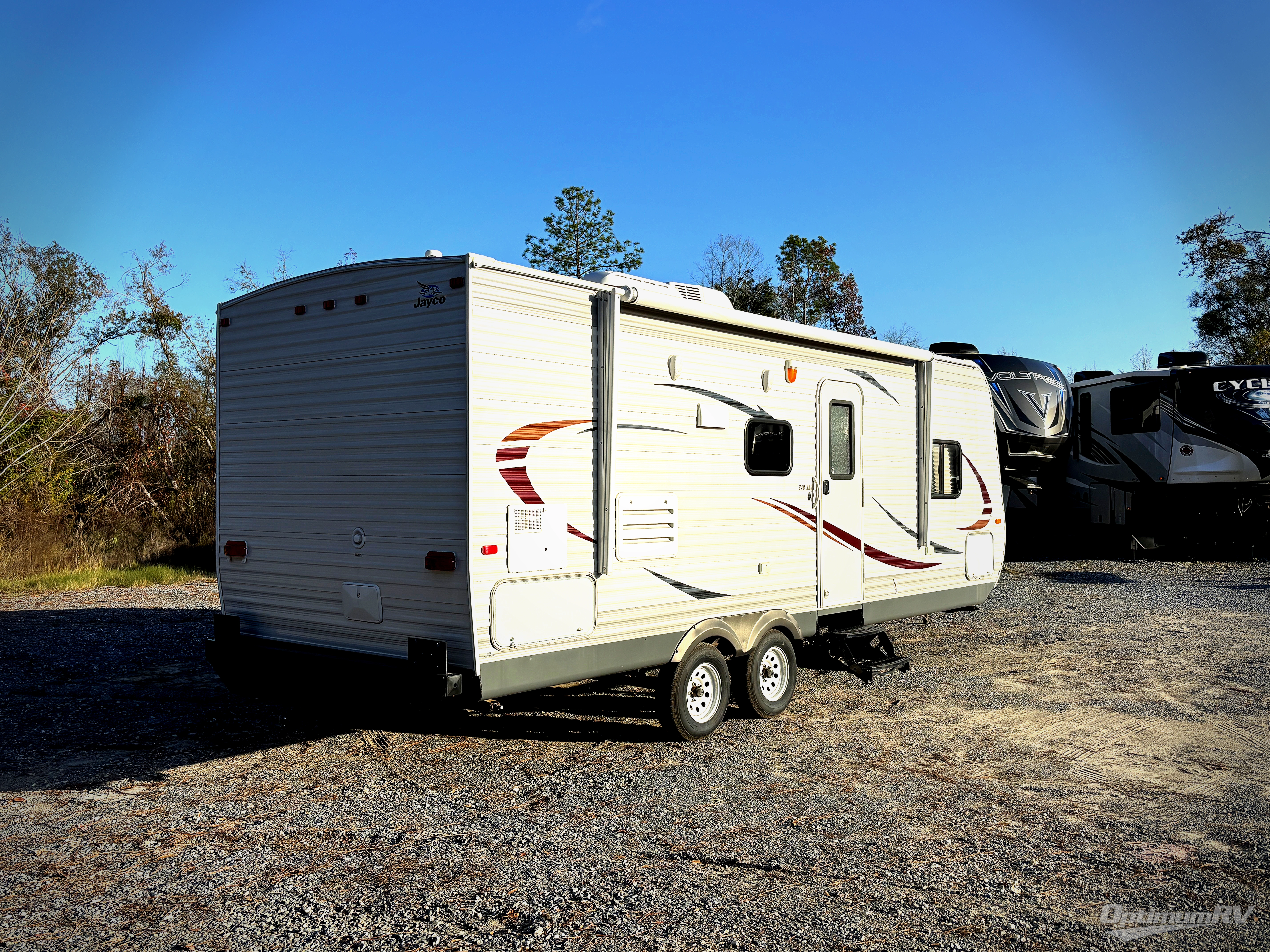 Stepping inside the Jay Flight Swift 248RBS by Jayco, you will find this travel trailer quite cozy. As you enter you will immediately notice the sofa. The kitchen area offers a l-shaped counter with a double kitchen sink, three burner range, and microwave. There is also a refrigerator and a dinette slide. Along one wall is an entertainment center and can be seen from the kitchen or living areas.